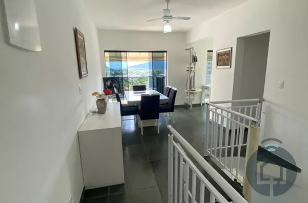 Excelente apartamento duplex, 3 dormitórios, sendo 2 suítes, 1 banheiro social, sala de estar dois ambientes com varanda, lavabo, cozinha com móveis planejados, área na cobertura exclusiva com churrasqueira, piscina e ducha. Localizado na Praia do Tombo no Guarujá.