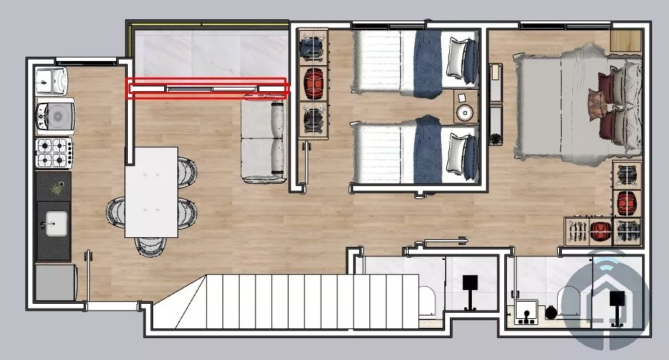 São 2 dormitórios, sendo 1 suíte, garantindo mais privacidade e conforto. Além disso, conta com banheiro social, ideal para atender visitas e o segundo dormitório. A sala integrada cria um ambiente agradável e acolhedor, perfeito para reunir a família ou receber amigos.