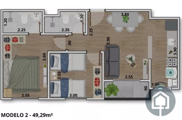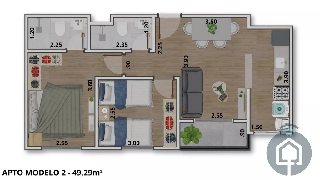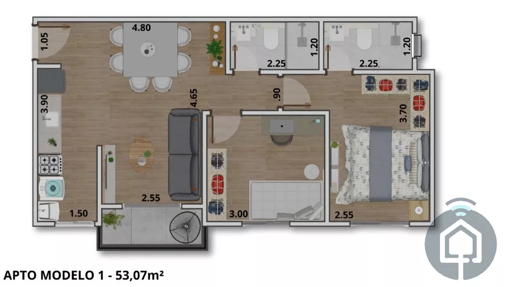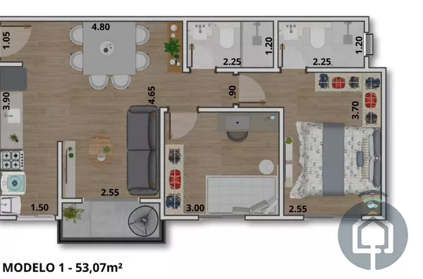 Este apartamento é perfeito para quem busca praticidade, conforto e um espaço bem planejado para o dia a dia. Com 53 m², o imóvel foi pensado para oferecer ambientes funcionais e aconchegantes.