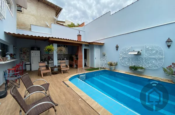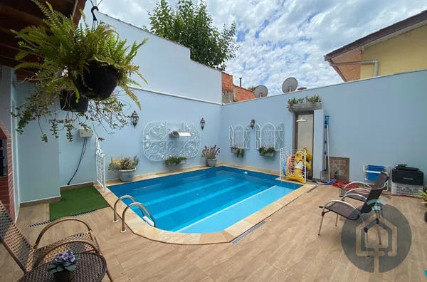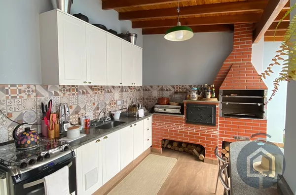 Área de lazer com piscina, área gourmet com churrasqueira, forno de pizza e fogão a lenha, banheiro e lindo jardim.
