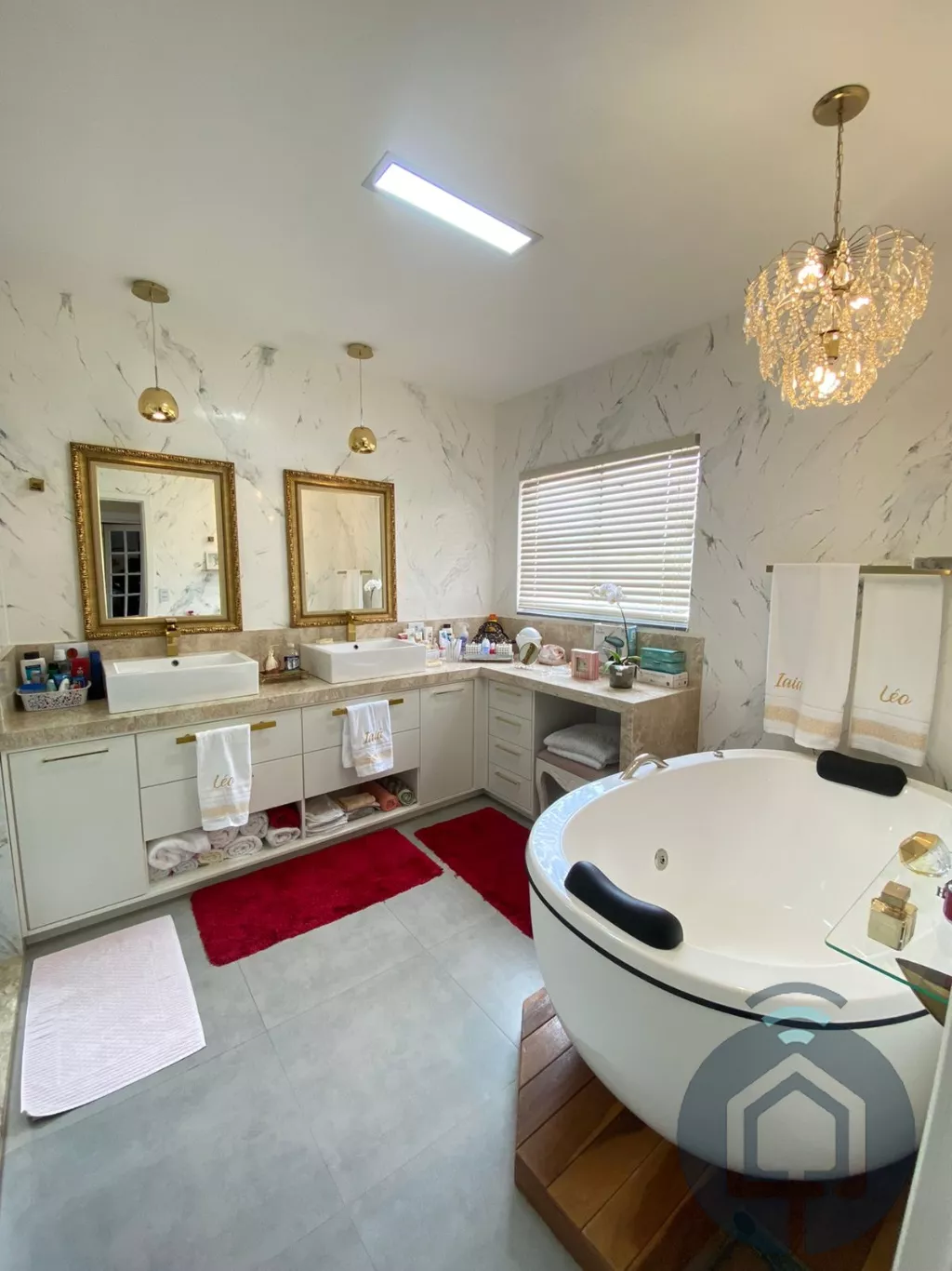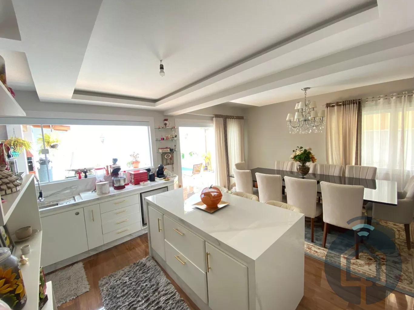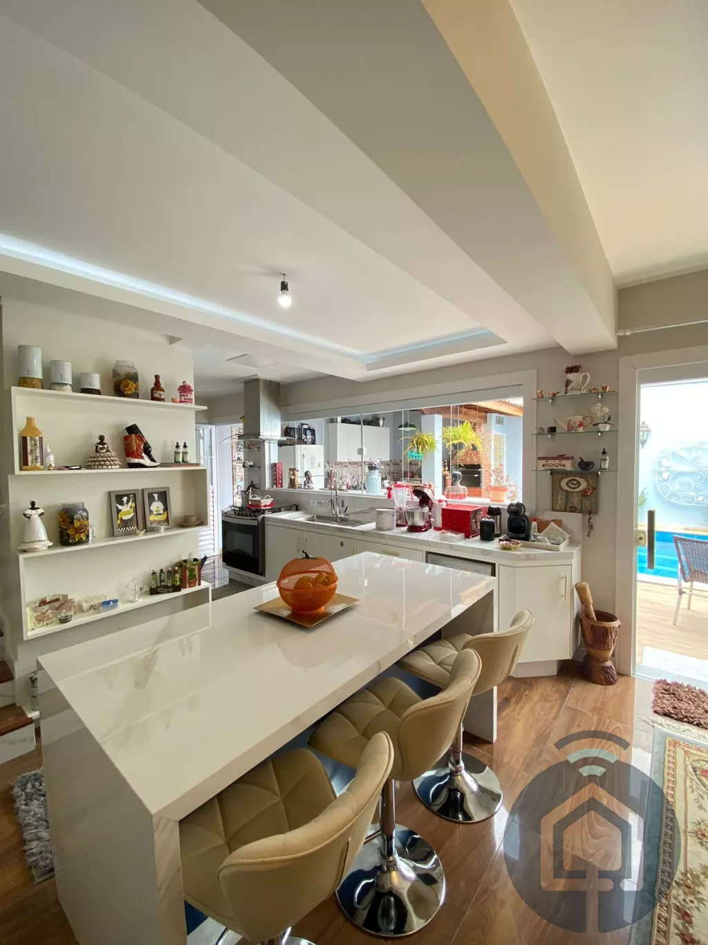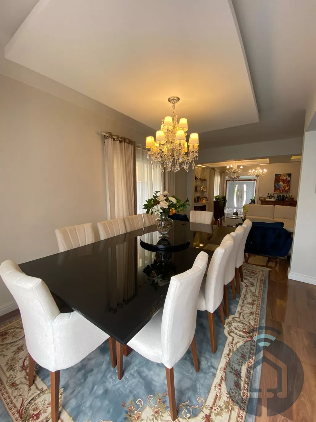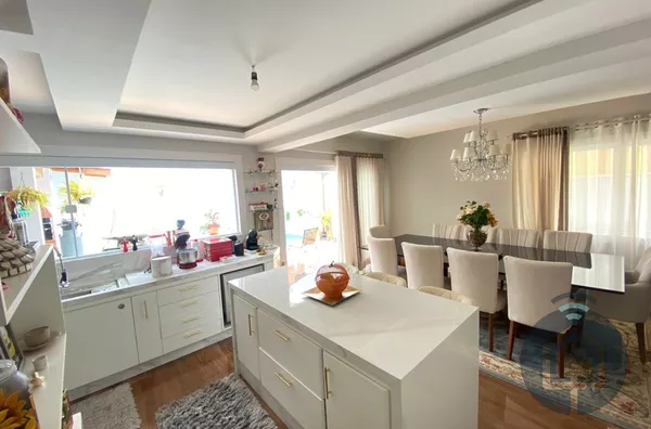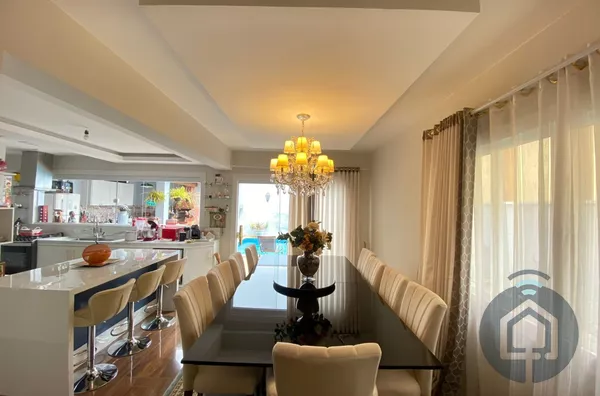 Está linda casa conta com amplo hall, living com lareira ecológica, lavabo, sala de jantar, cozinha planejada com forno elétrico, fogão, lava louças e despensa na piso inferior. O piso superior conta com uma suíte máster de 110 m² com lareira ecológica, closet, ampla varanda com fechamento em vidro, escritório, banheiro com duas cubas e banheira de hidromassagem.
