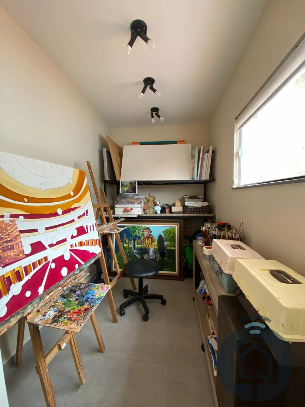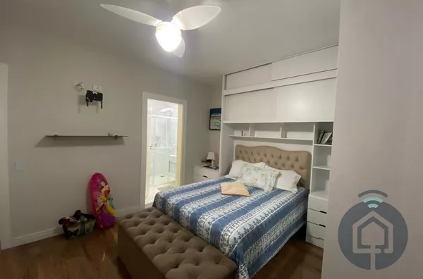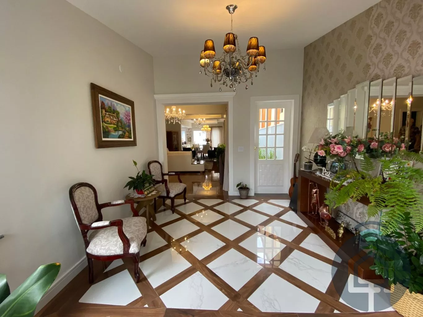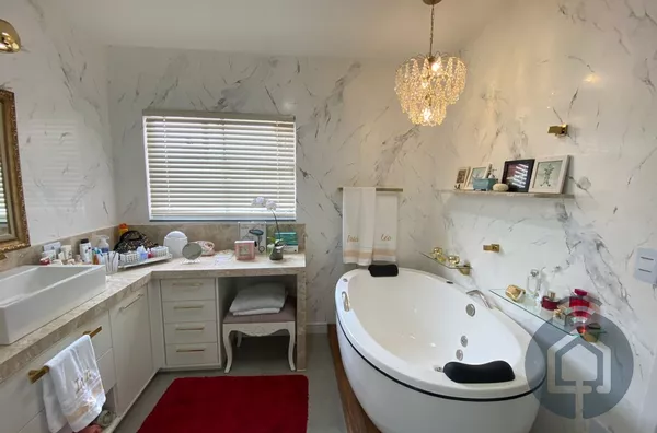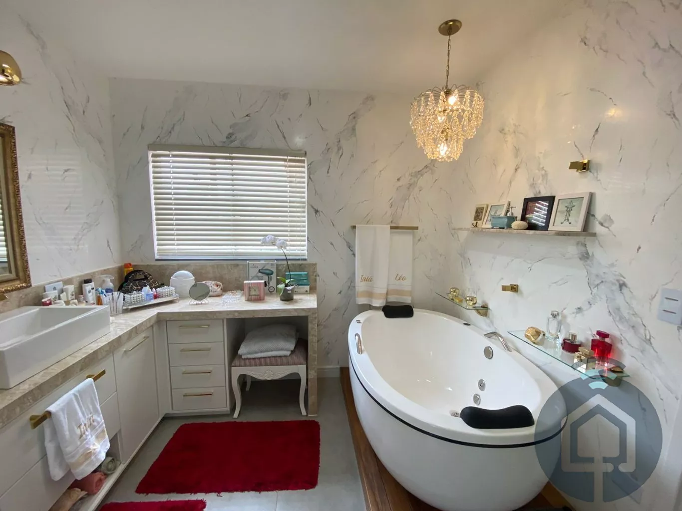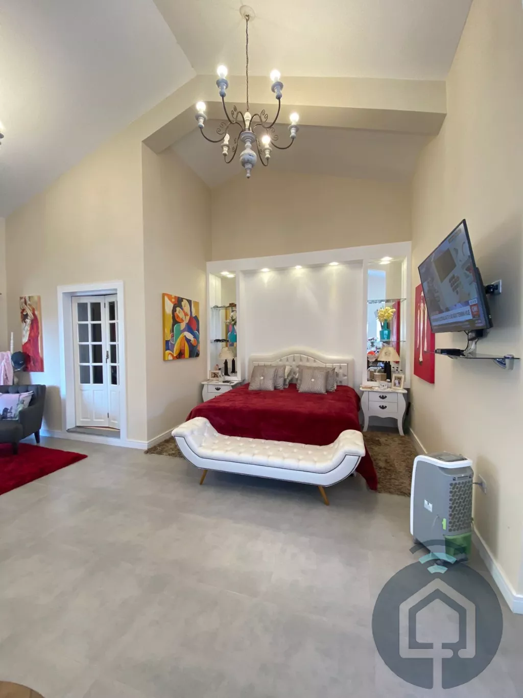 Está linda casa conta com amplo hall, living com lareira ecológica, lavabo, sala de jantar, cozinha planejada com forno elétrico, fogão, lava louças e despensa na piso inferior. O piso superior conta com uma suíte máster de 110 m² com lareira ecológica, closet, ampla varanda com fechamento em vidro, escritório, banheiro com duas cubas e banheira de hidromassagem.
