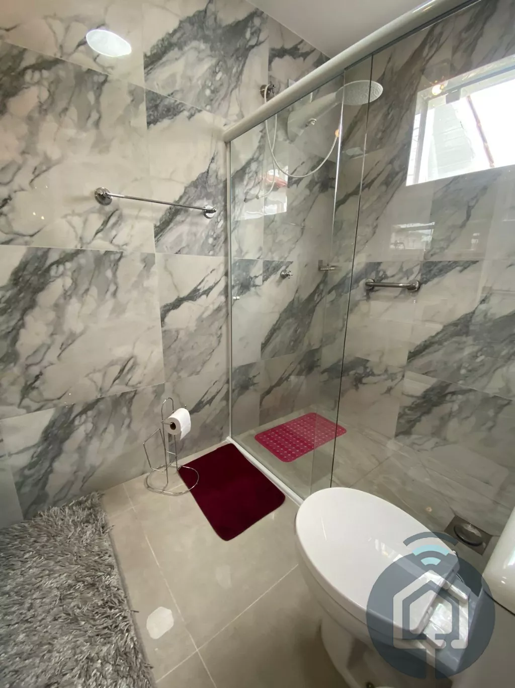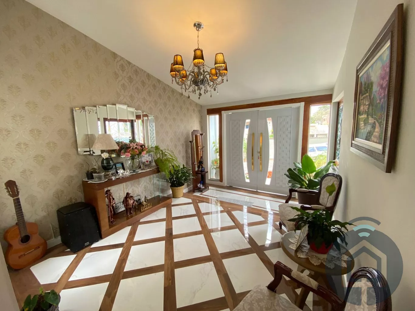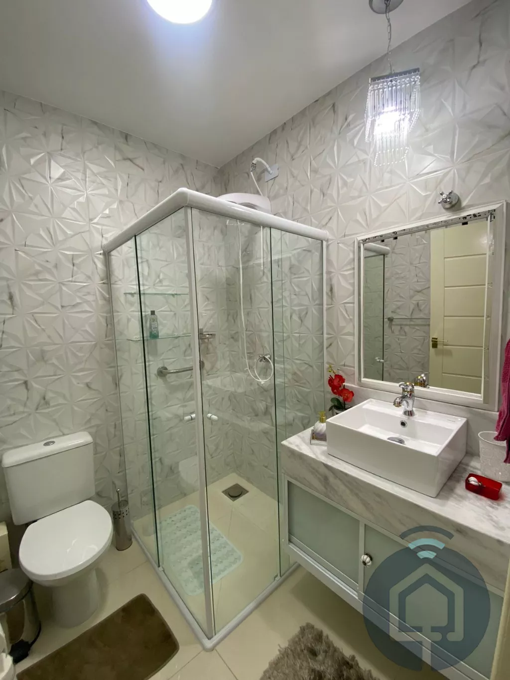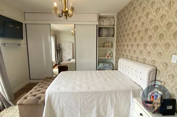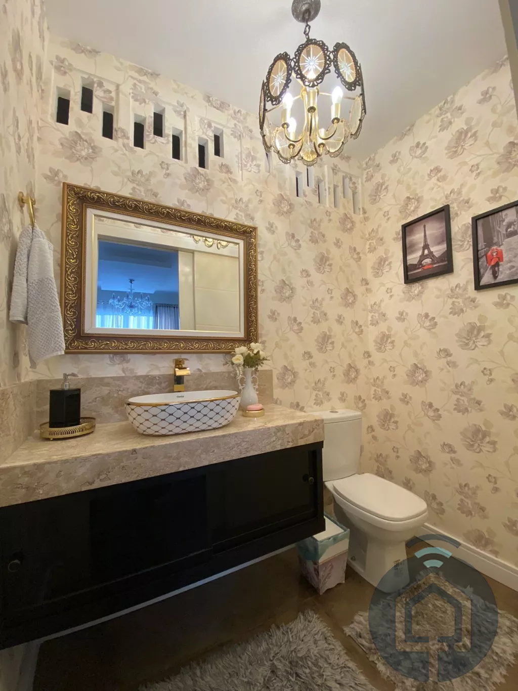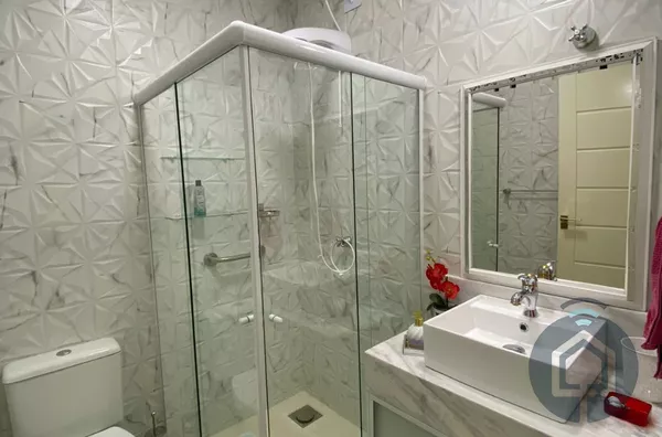 Está linda casa conta com amplo hall, living com lareira ecológica, lavabo, sala de jantar, cozinha planejada com forno elétrico, fogão, lava louças e despensa na piso inferior. O piso superior conta com uma suíte máster de 110 m² com lareira ecológica, closet, ampla varanda com fechamento em vidro, escritório, banheiro com duas cubas e banheira de hidromassagem.