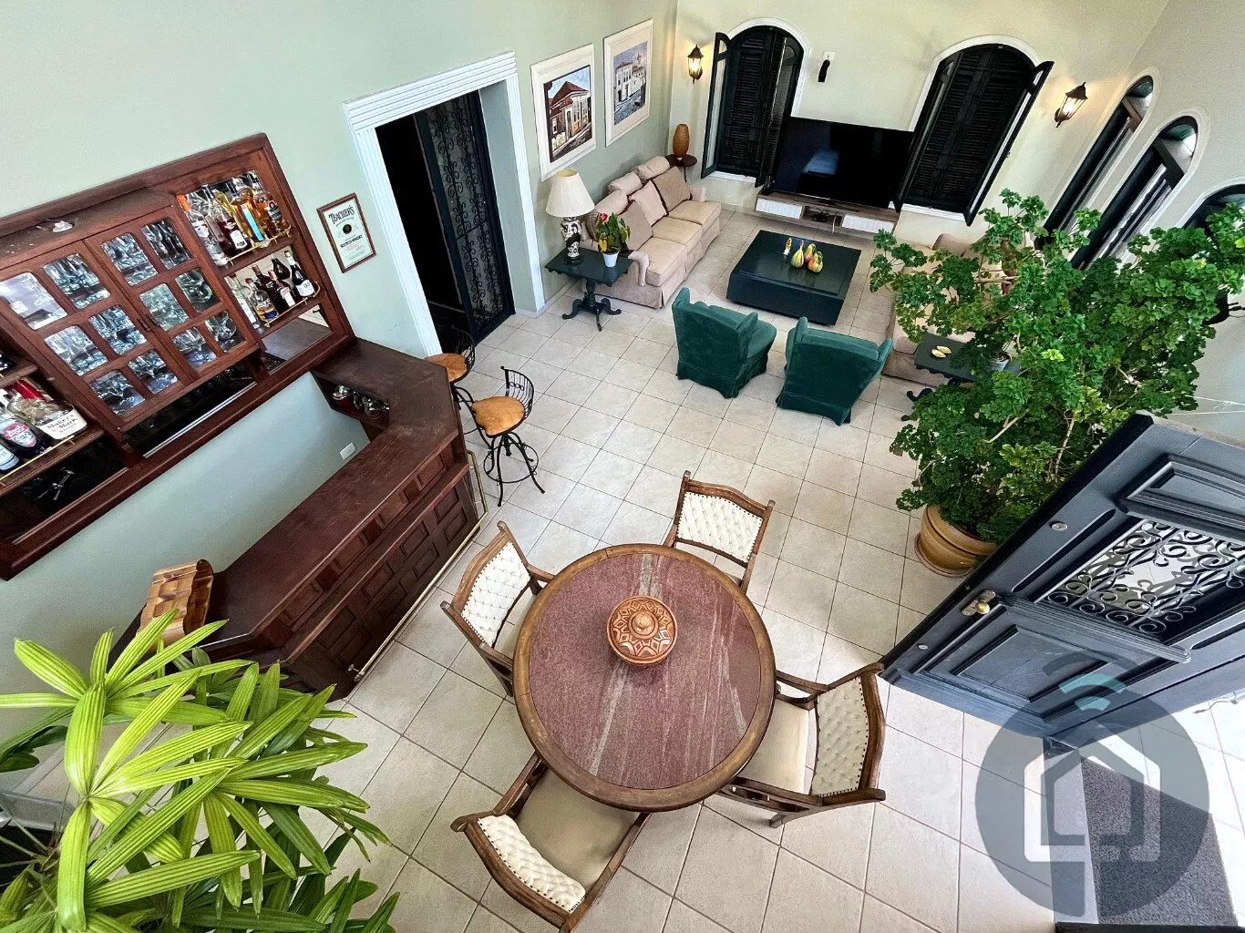 Com um terreno espaçoso de 3.552 m² e 1.000 m² de área construída, este imóvel é o cenário perfeito para quem busca espaço e funcionalidade. No piso térreo, o hall de entrada dá as boas-vindas e leva a cinco suítes reservadas, incluindo uma suíte máster com escritório privativo e ar-condicionado, além de uma cozinha planejada e equipada, sala de jantar e lavabo.