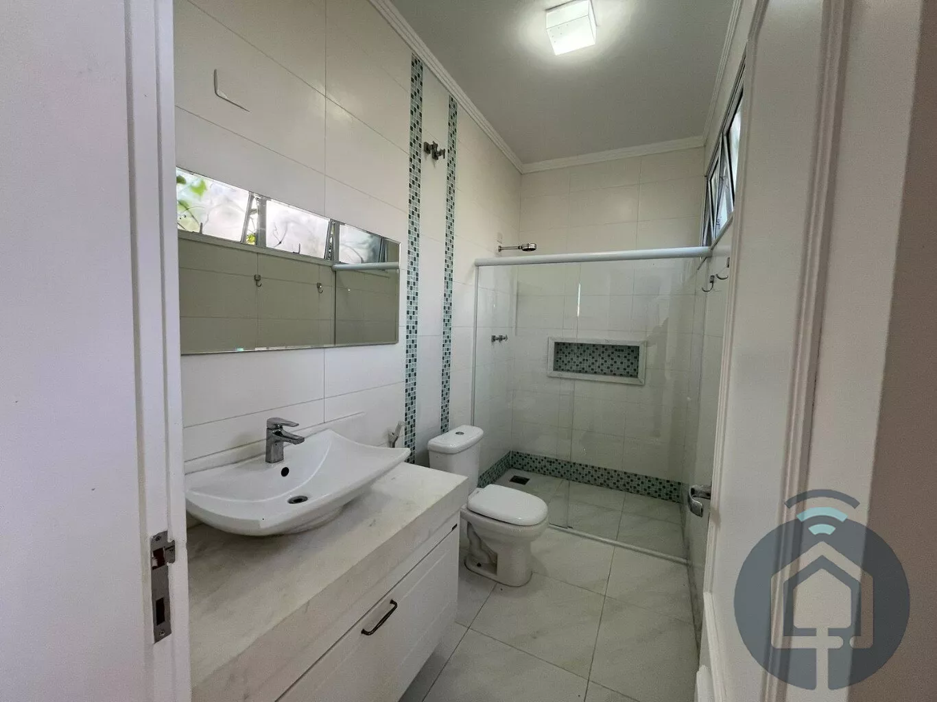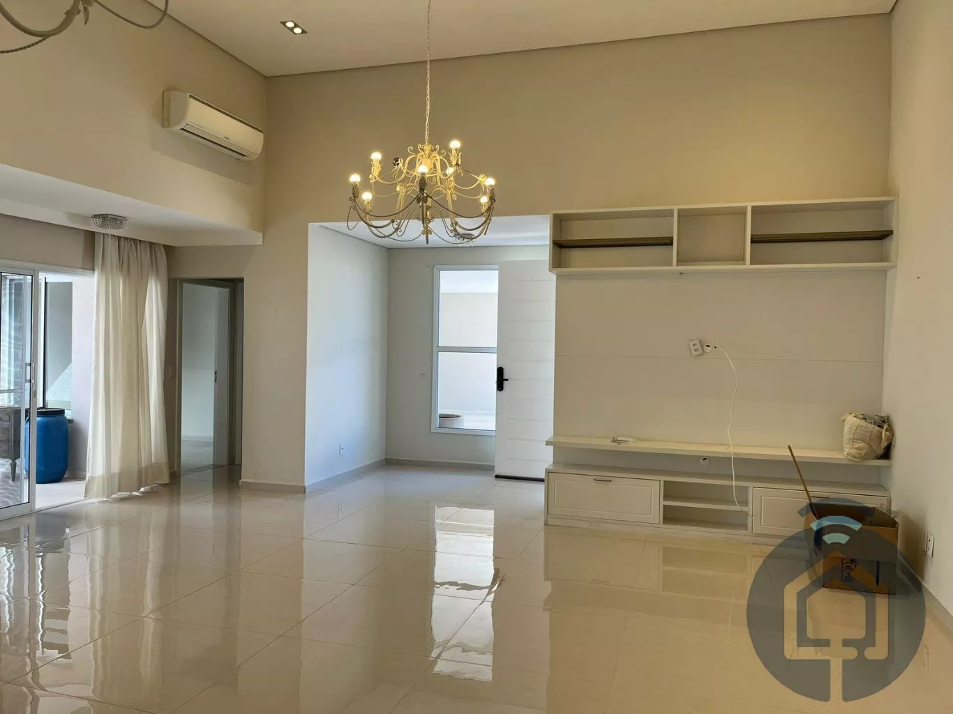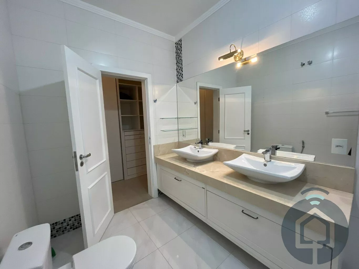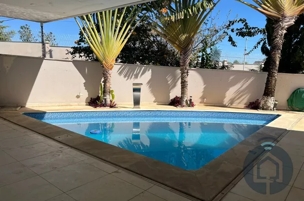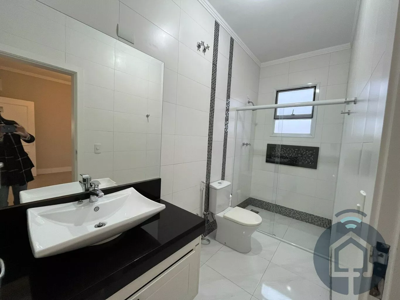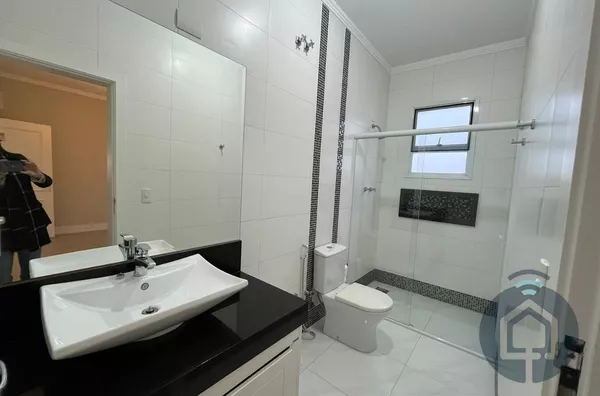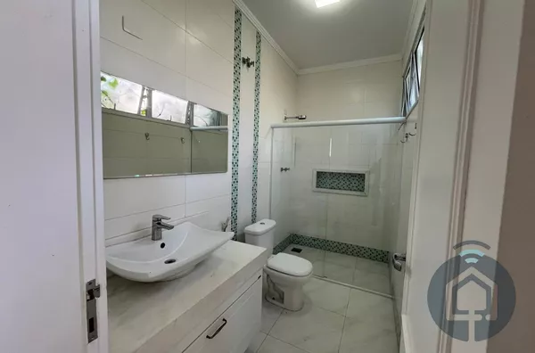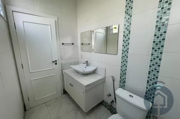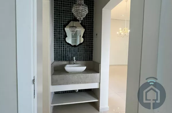Todos os banheiros possuem acabamentos de alto padrão, com box Blindex, bancadas em mármore, metais em inox, lavatórios Eternit e vasos sanitários Roca com caixa acoplada. A sala é ampla e integrada em dois ambientes, equipada com painel planejado e dois aparelhos de ar-condicionado, ideal para momentos de lazer e convivência. O lavabo, discreto e elegante, complementa a área social com charme.