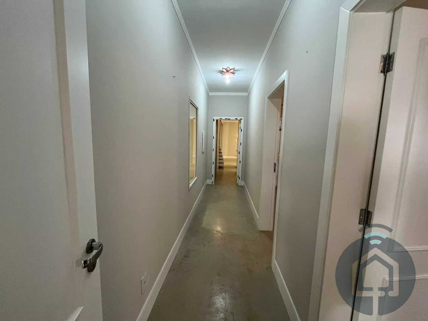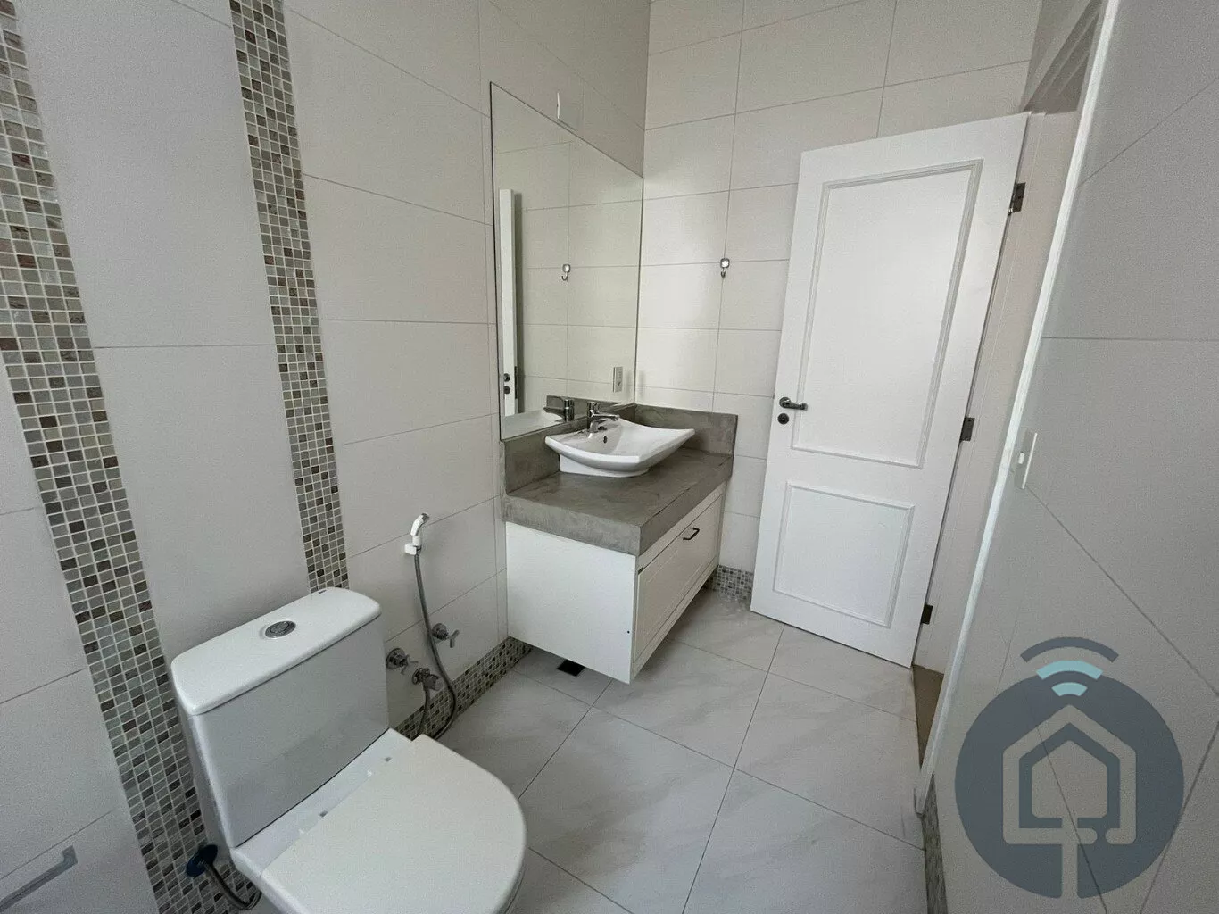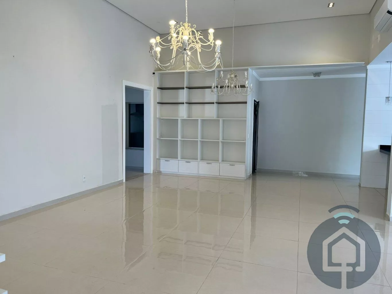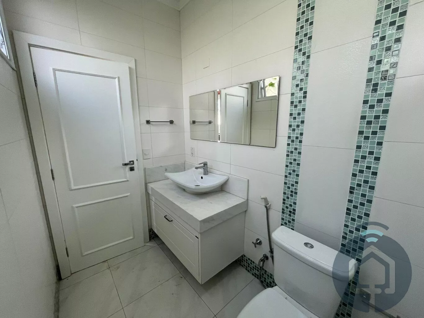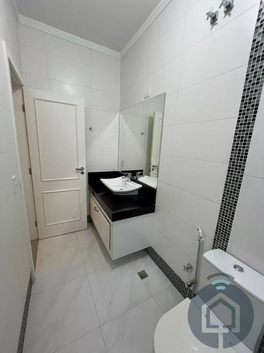 Todos os banheiros possuem acabamentos de alto padrão, com box Blindex, bancadas em mármore, metais em inox, lavatórios Eternit e vasos sanitários Roca com caixa acoplada. A sala é ampla e integrada em dois ambientes, equipada com painel planejado e dois aparelhos de ar-condicionado, ideal para momentos de lazer e convivência. O lavabo, discreto e elegante, complementa a área social com charme.
