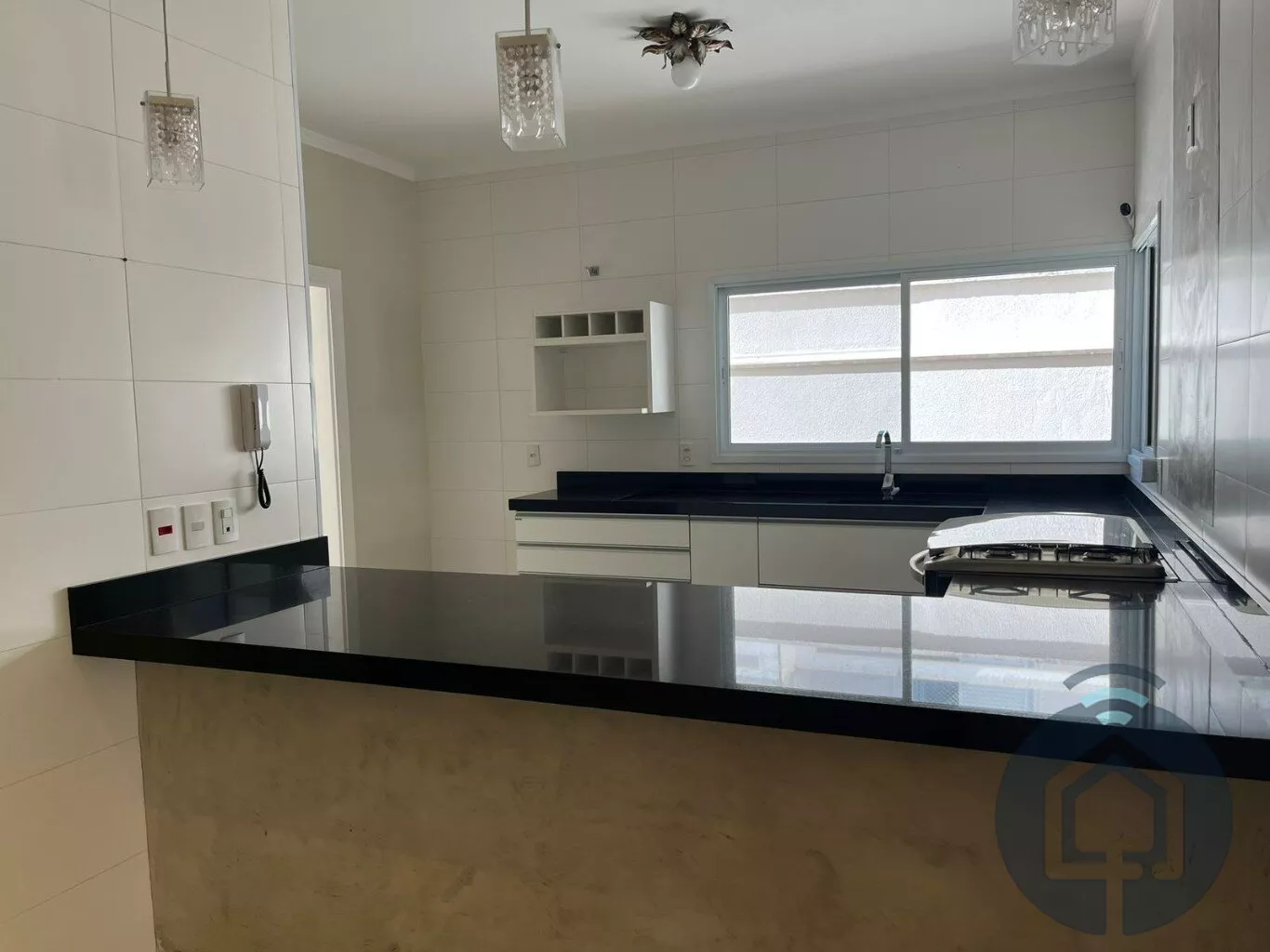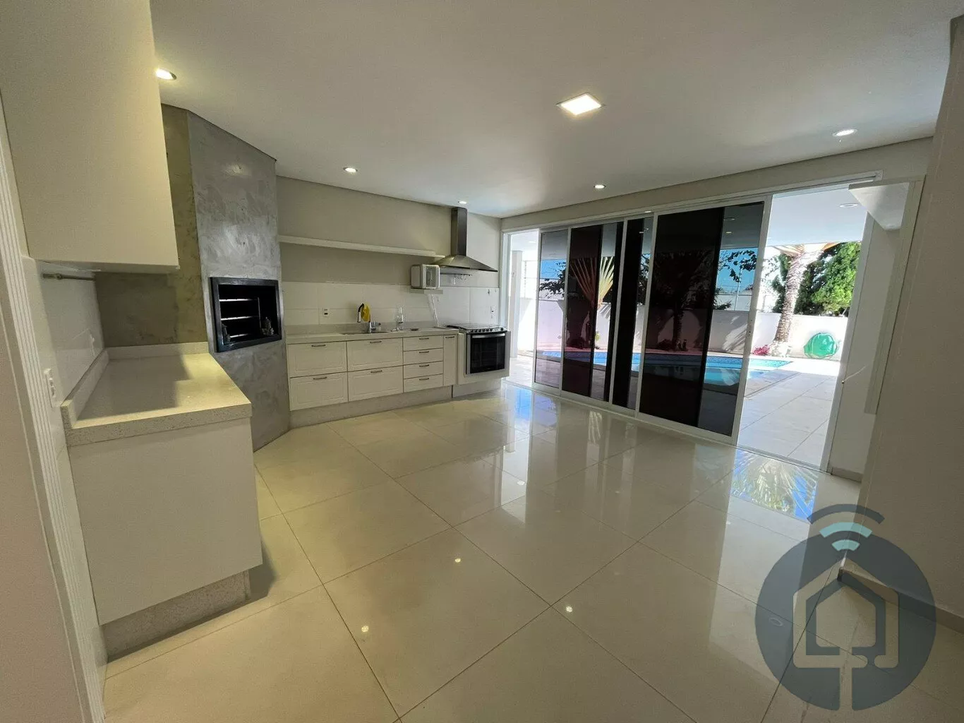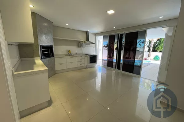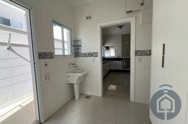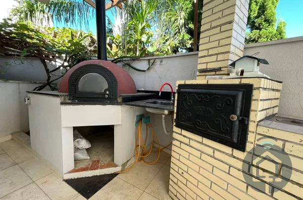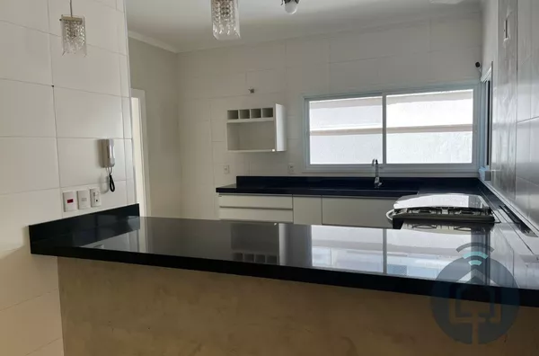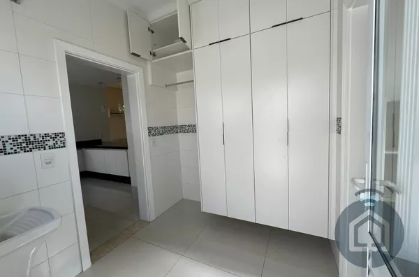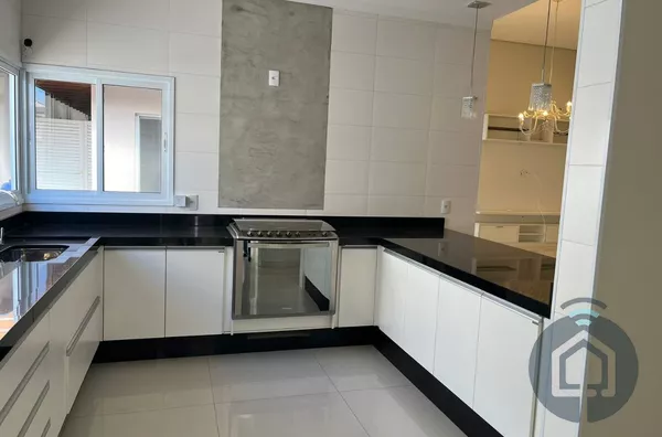 A cozinha interna segue o conceito americano, com balcão em granito e fogão embutido Electrolux de cinco bocas, além de contar com armários funcionais e bem distribuídos. A lavanderia também é equipada com armários embutidos, garantindo praticidade no dia a dia, e a despensa conta com prateleiras em mármore, oferecendo ótimo espaço de armazenamento. O imóvel ainda possui um escritório com armário planejado, que pode ser facilmente revertido em um dormitório extra, atendendo diferentes necessidades da família.