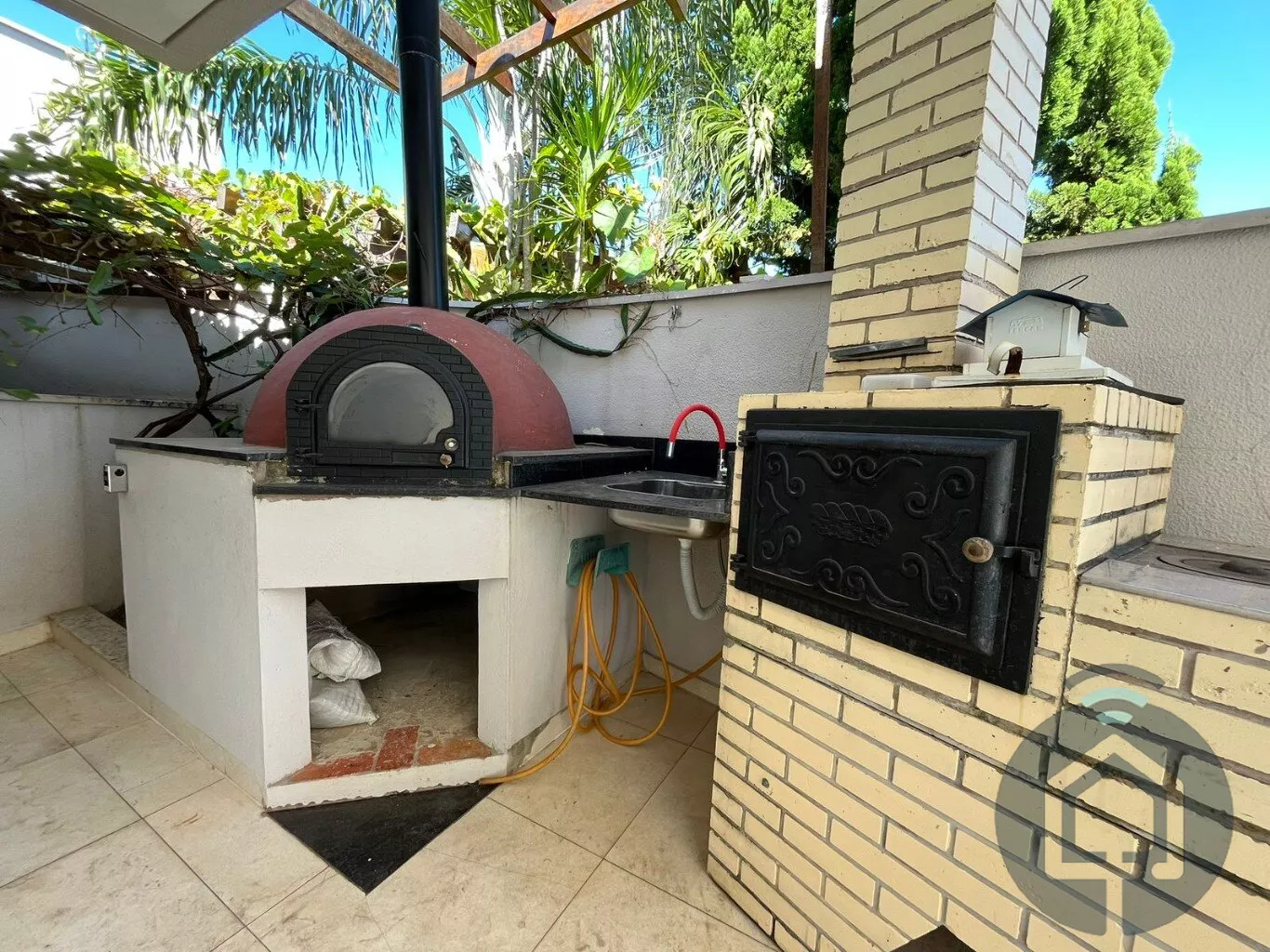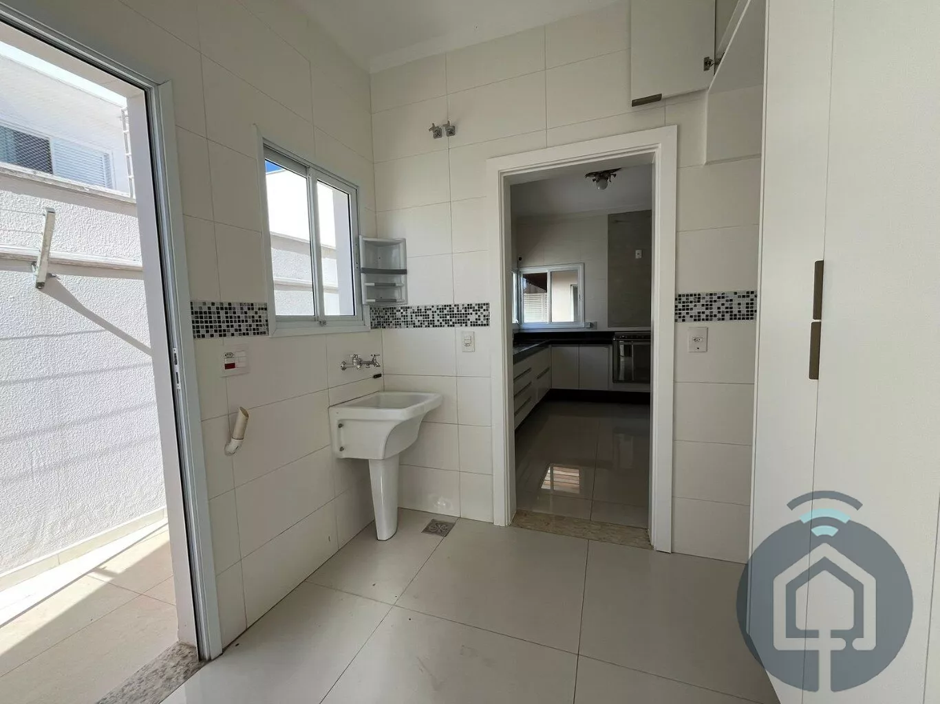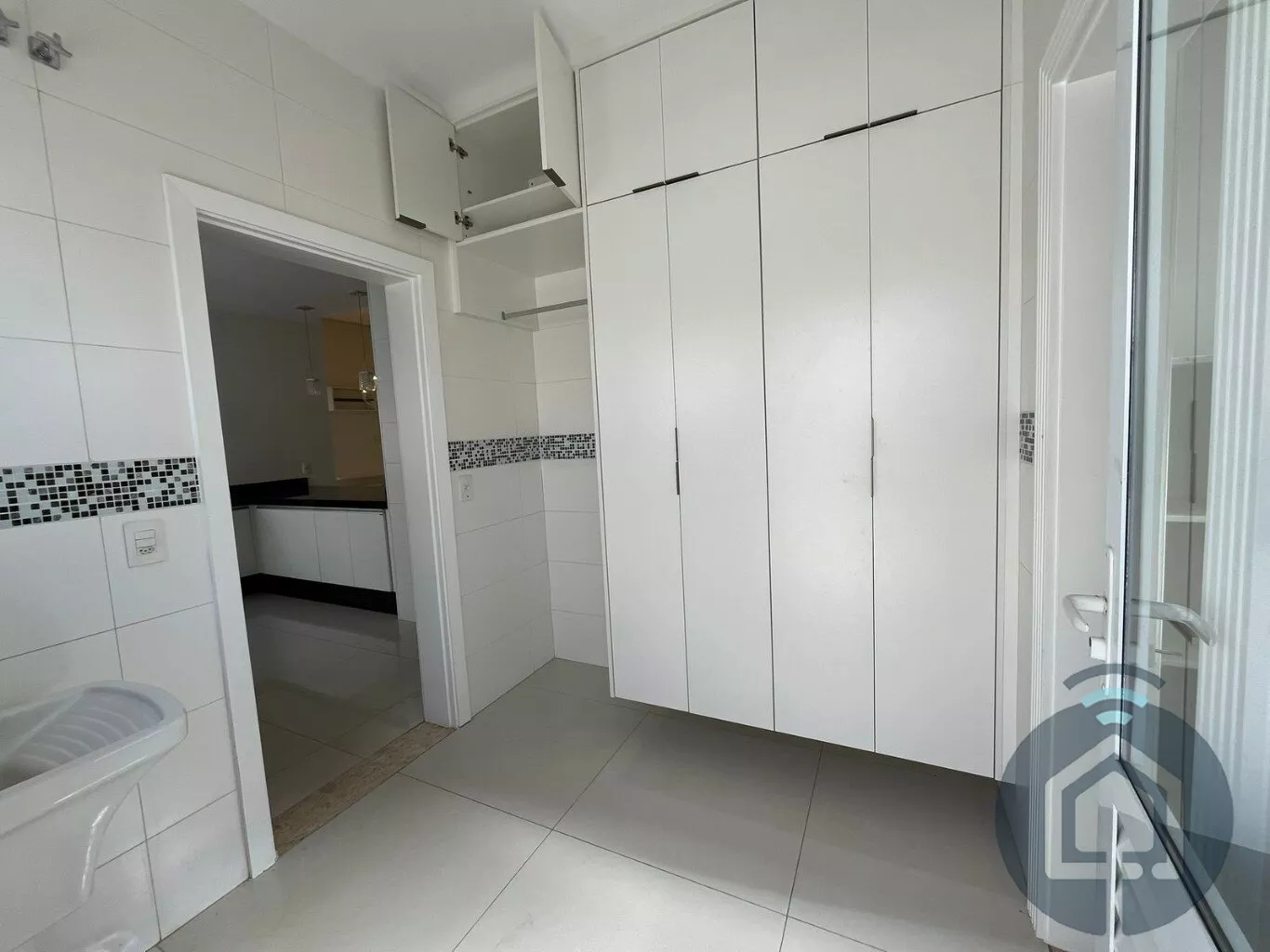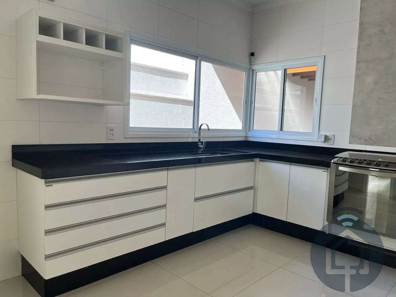 A cozinha interna segue o conceito americano, com balcão em granito e fogão embutido Electrolux de cinco bocas, além de contar com armários funcionais e bem distribuídos. A lavanderia também é equipada com armários embutidos, garantindo praticidade no dia a dia, e a despensa conta com prateleiras em mármore, oferecendo ótimo espaço de armazenamento. O imóvel ainda possui um escritório com armário planejado, que pode ser facilmente revertido em um dormitório extra, atendendo diferentes necessidades da família.