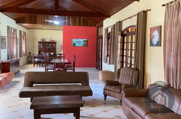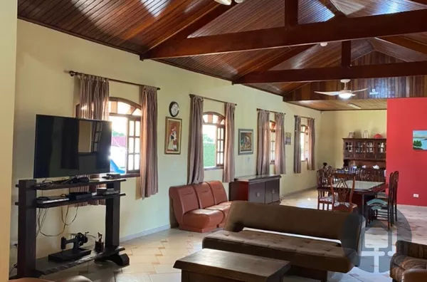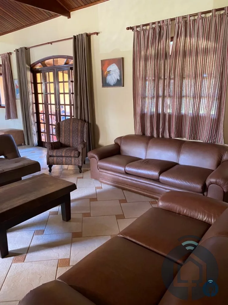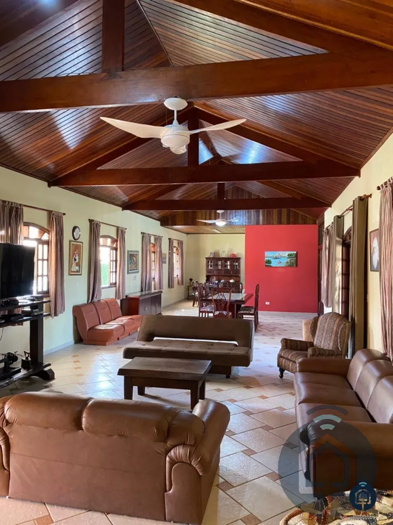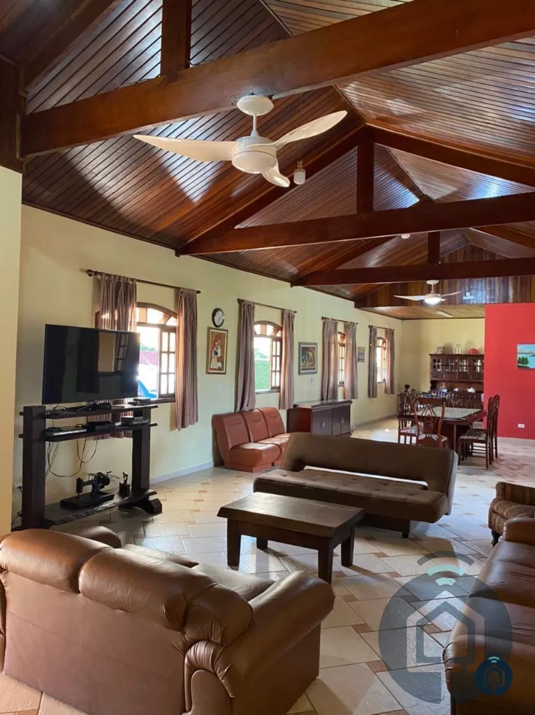 Excelente casa de campo, localizada em condomínio de alto padrão no interior de São Paulo. Casa principal possui aproximadamente 700 m² de área construída, totalmente térrea e conta com 5 dormitórios, sendo 3 suítes, sala de estar, living com lareira, lavabo, sala de jantar, copa e cozinha. Área de lazer completa com área gourmet com churrasqueira, forno de pizza e fogão a lenha, banheiro, piscina salinizada com iluminação em led, sauna seca, campo de futebol, cachoeira, extensa área verde, horta, pomar e galinheiro. O imóvel conta ainda com uma casa de caseiro, com 2 dormitórios, 1 banheiro social, sala de estar, cozinha e área de serviço.