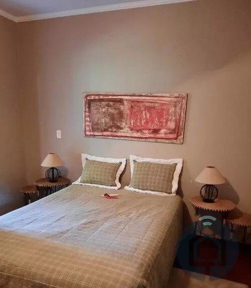 A casa é equipada com três suítes e um quarto estilo chalé, todos com ventiladores e roupas de cama, travesseiros e edredons higienizados. A cozinha completa conta com fogão, geladeira, micro-ondas, e todos os utensílios necessários. A lavanderia possui máquina de lavar para sua conveniência. Desfrute de momentos agradáveis na sala de jantar, sala de leitura, sala de lareira e sala de TV com móveis confortáveis.