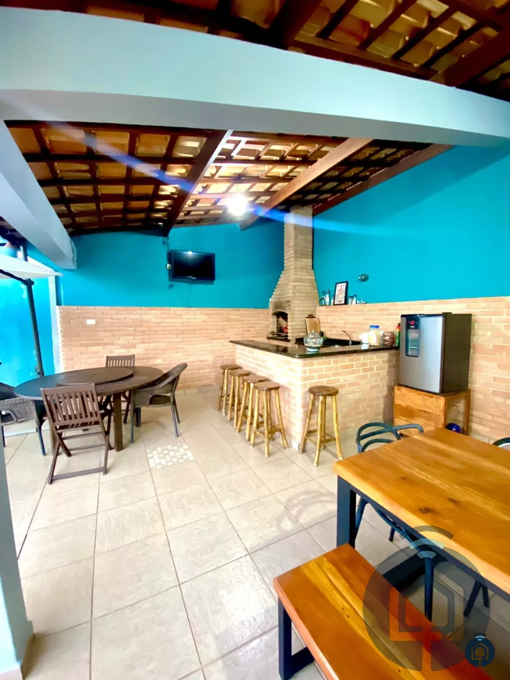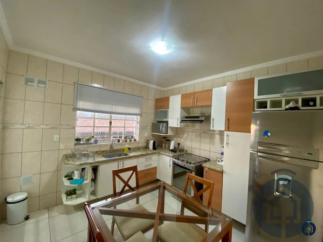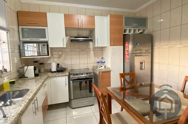 A sala de estar é aconchegante e ideal para momentos de convivência, enquanto a cozinha planejada atende às necessidades de quem gosta de cozinhar com praticidade e charme. A lavanderia coberta oferece comodidade, mantendo a área de serviço sempre organizada.