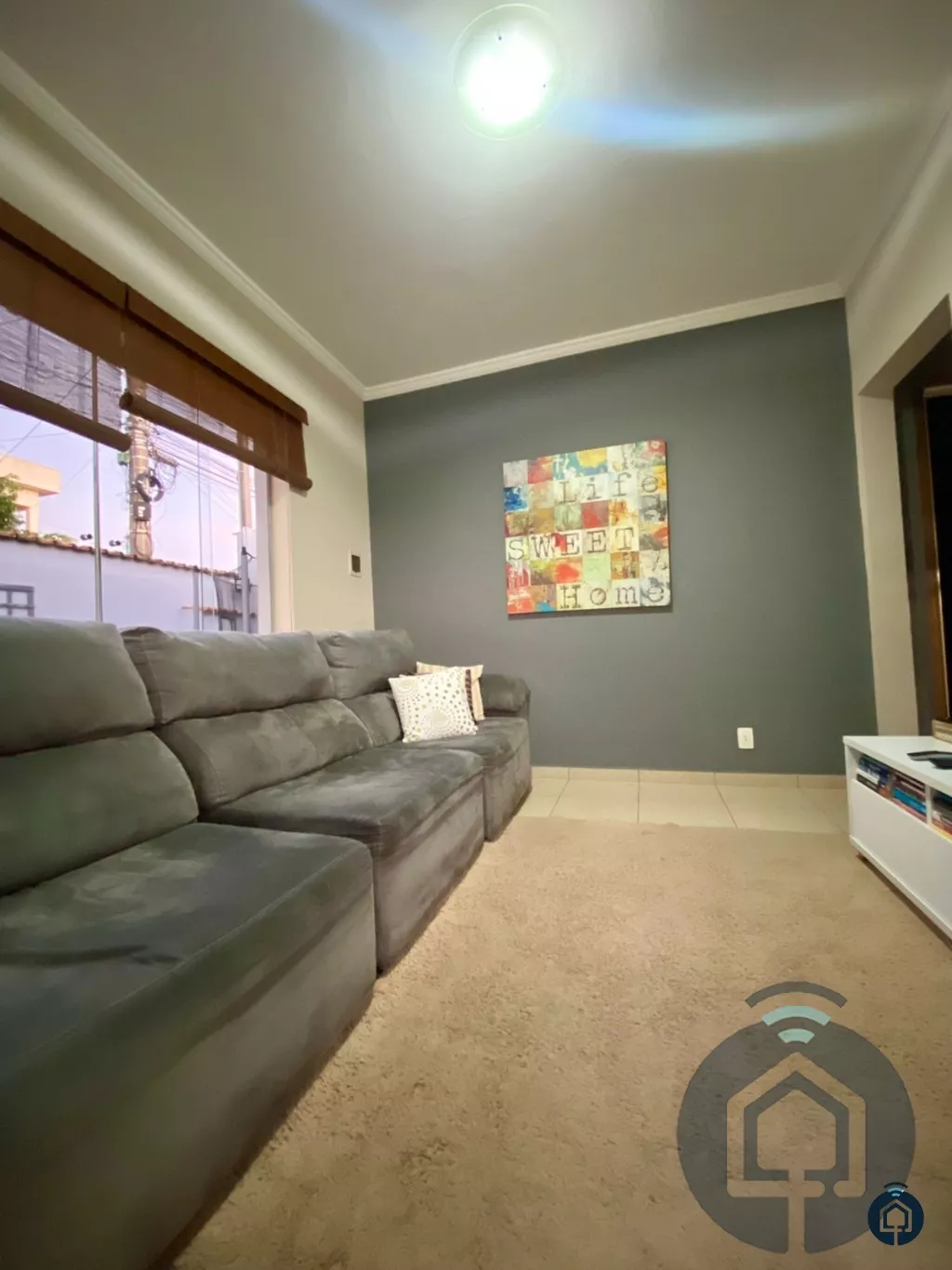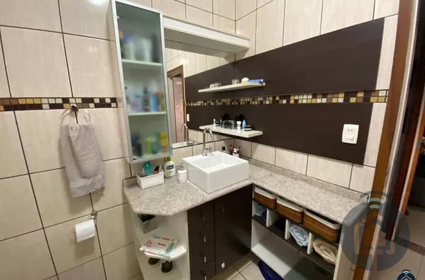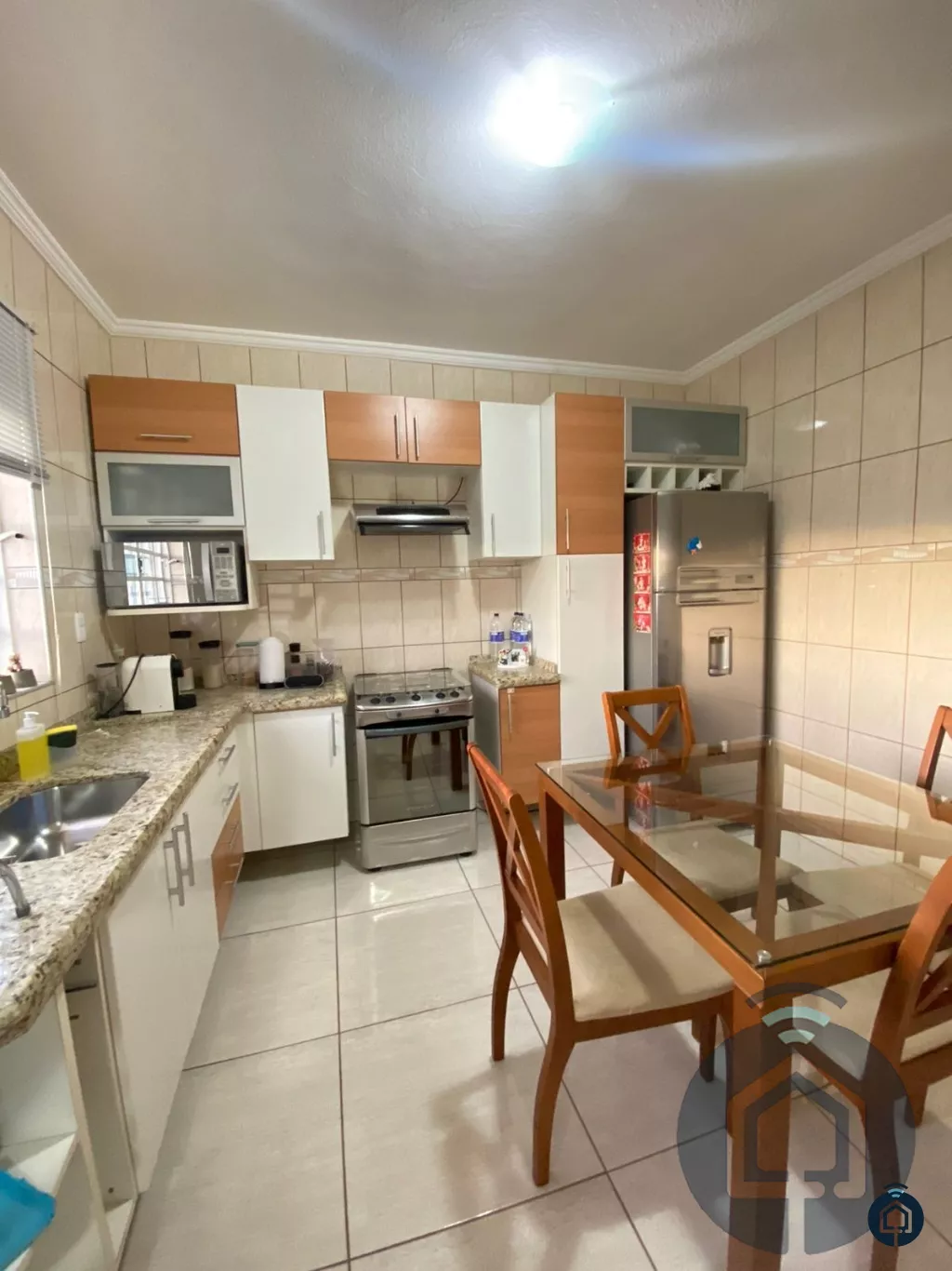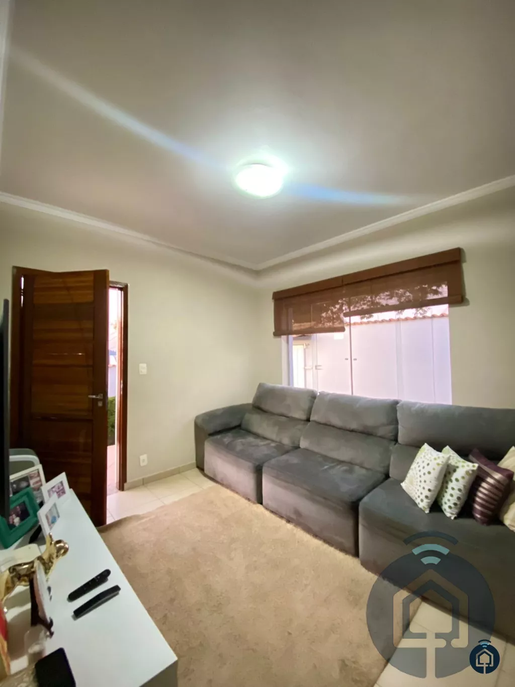 A sala de estar é aconchegante e ideal para momentos de convivência, enquanto a cozinha planejada atende às necessidades de quem gosta de cozinhar com praticidade e charme. A lavanderia coberta oferece comodidade, mantendo a área de serviço sempre organizada.