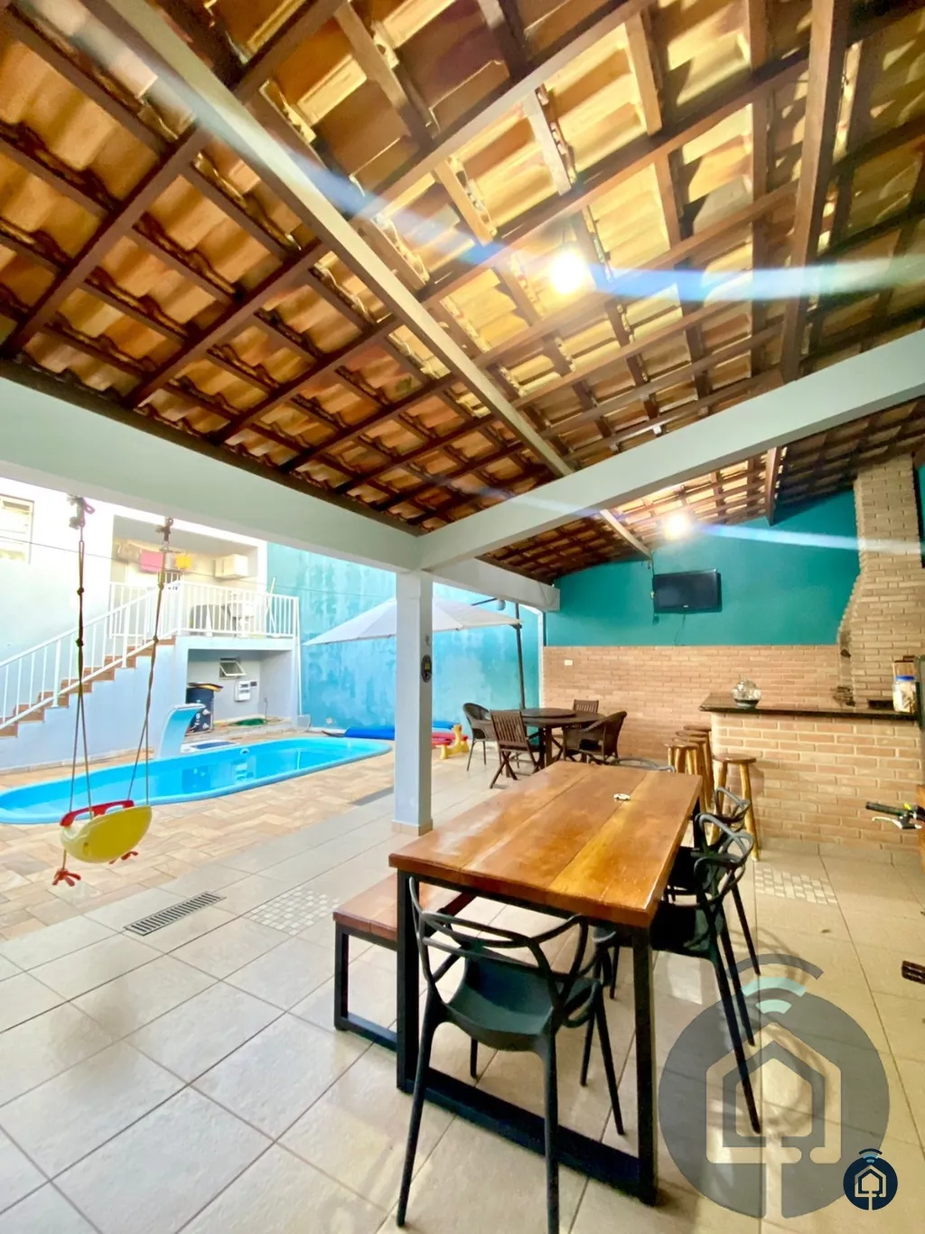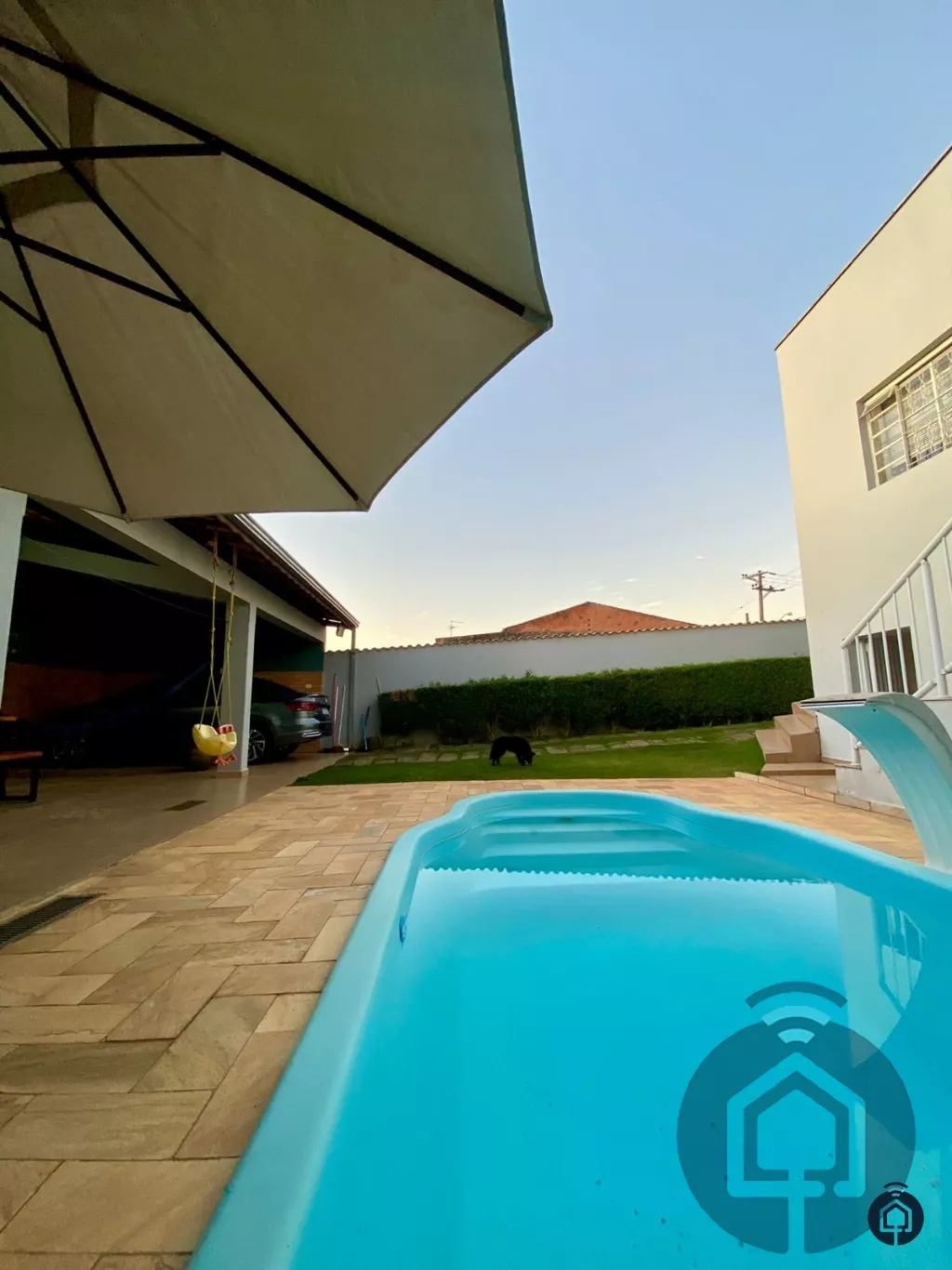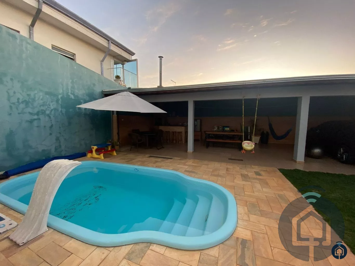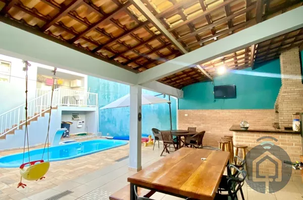 Para momentos de lazer, a casa conta com uma área gourmet ampla, equipada com churrasqueira e armários planejados, além de uma linda piscina com sistema de aquecimento elétrico e cascata, para aproveitar o verão em qualquer época do ano. O quintal é grande, com uma área gramada que proporciona um espaço perfeito para crianças brincarem ou para quem ama a natureza.