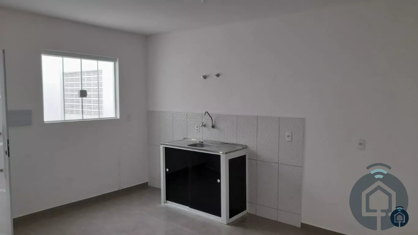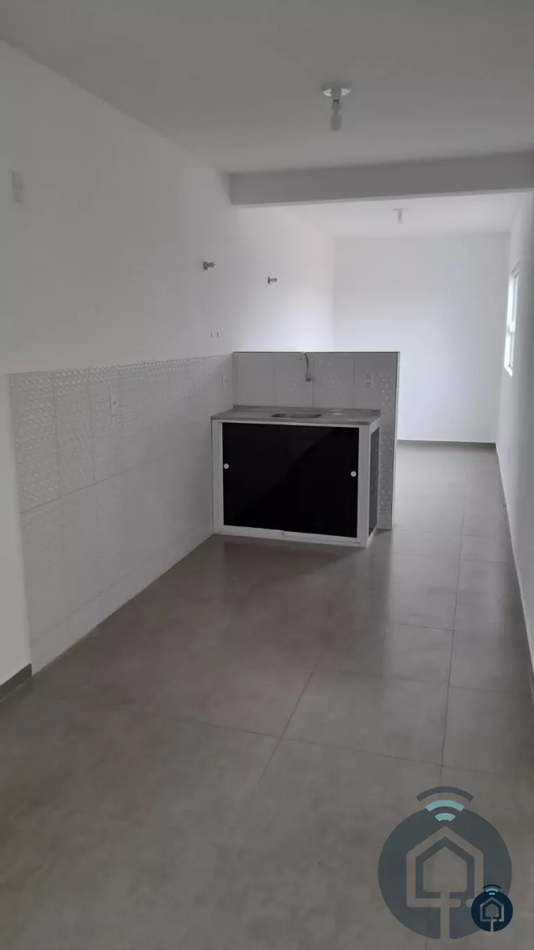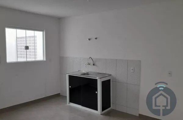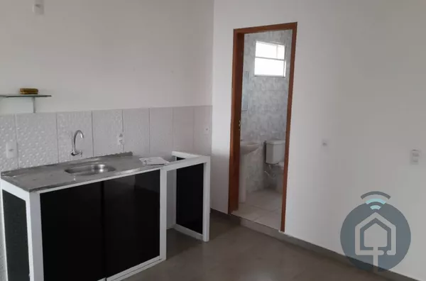 Dois apartamentos com aproximadamente 50m², 1 dormitório, banheiro social, sala de estar com cozinha integrada e área de serviço.