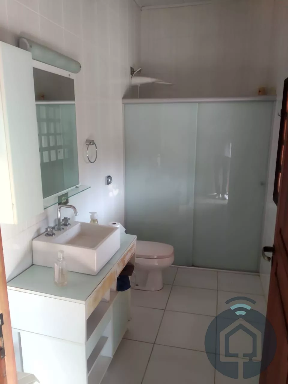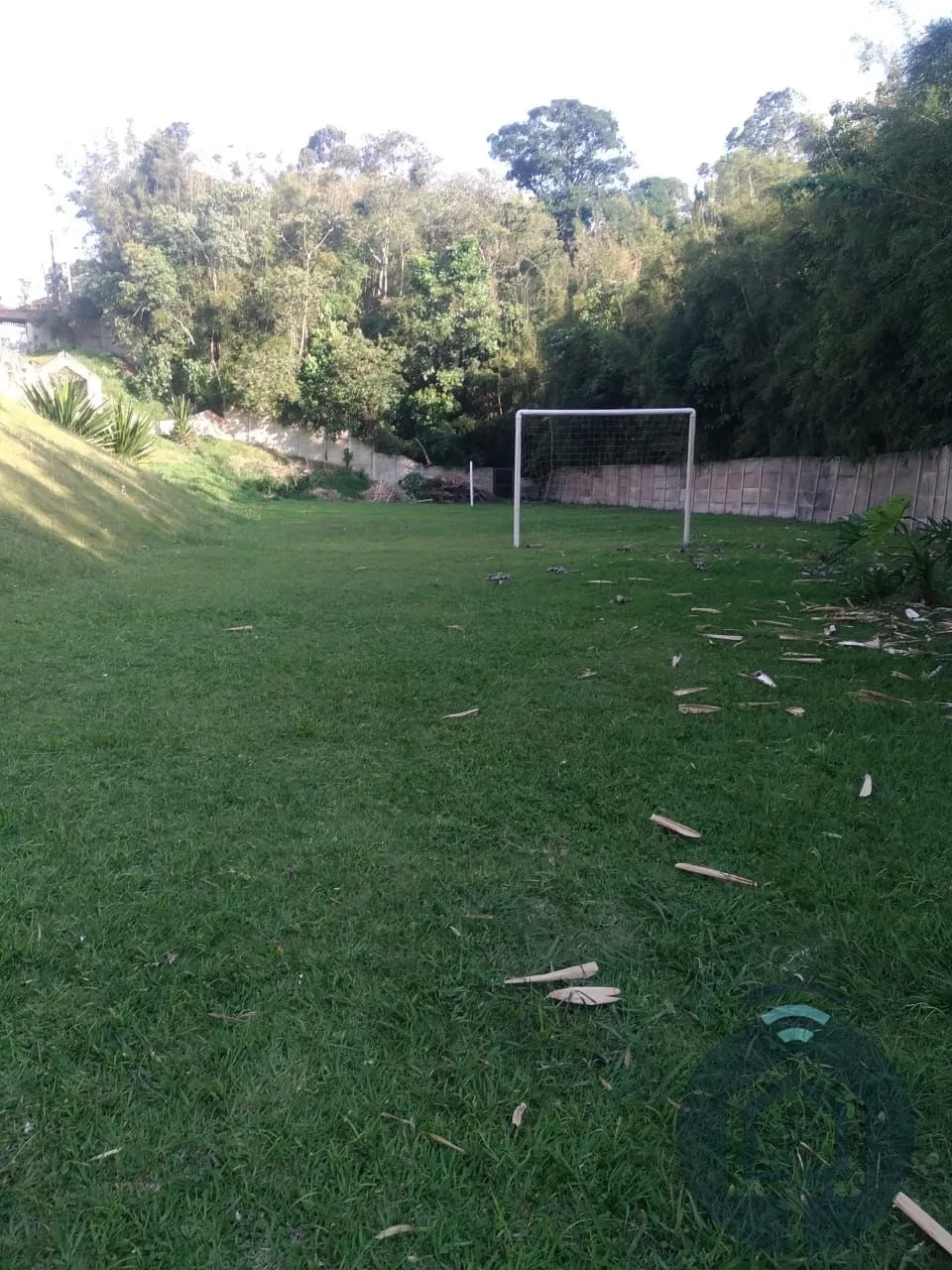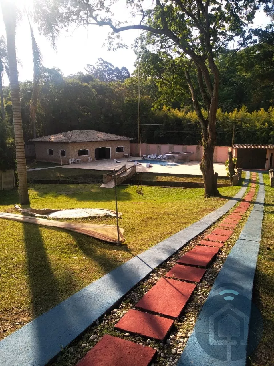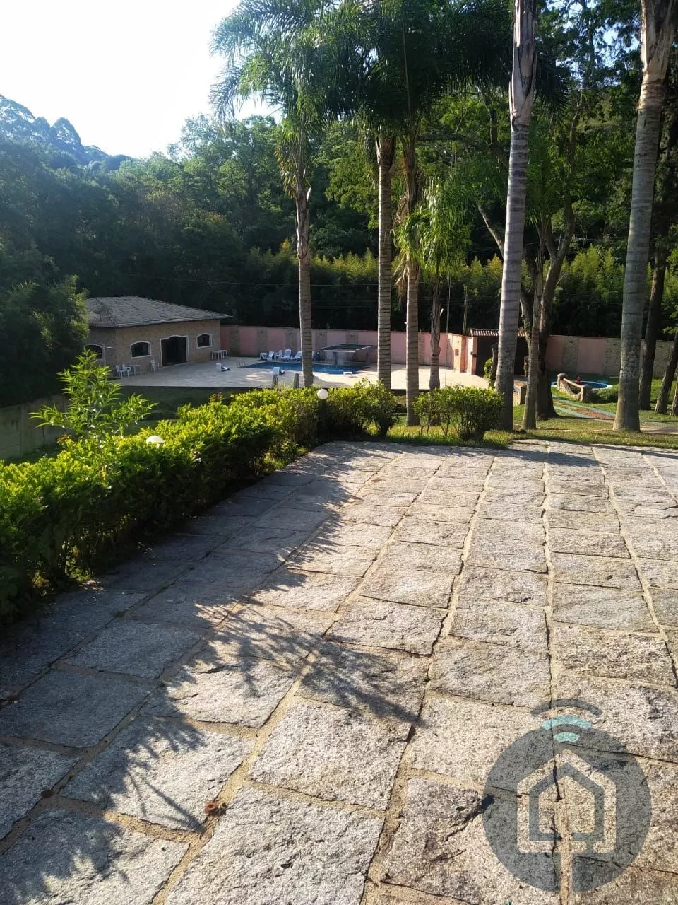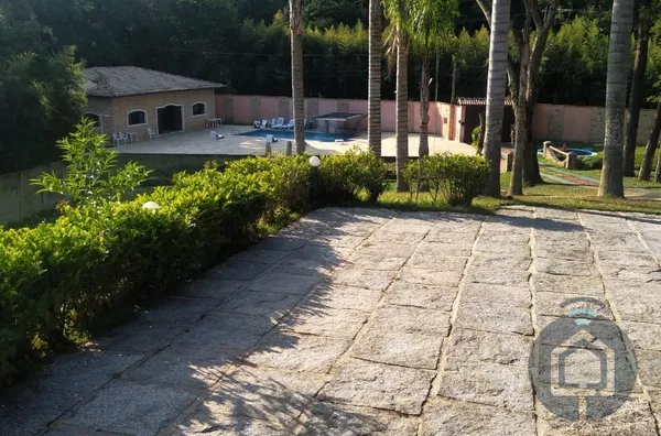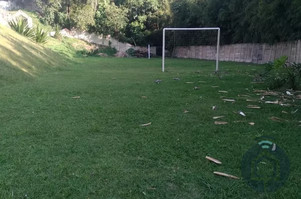 Área de lazer completa: salão de festas com 150 m², mobiliado com armários embutidos, fogão 5 bocas, churrasqueira e forno a lenha, piscina com 70 m² aquecida, ilumina e com cascata, bar seco, campo de futebol, dois lagos com peixes e cocheira para 3 cavalos.