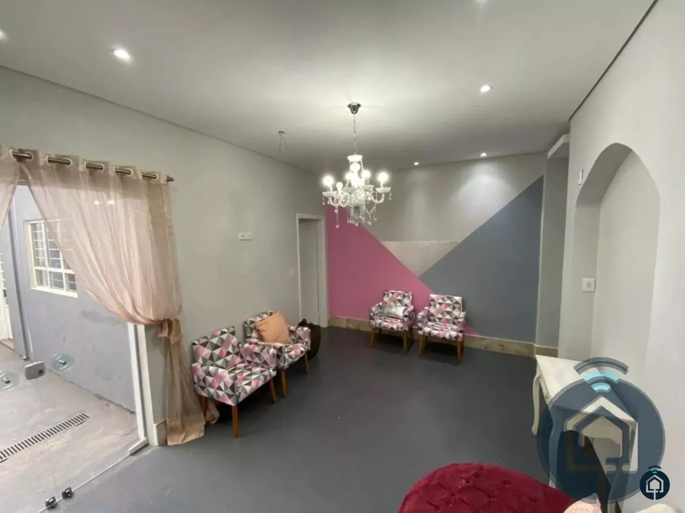 Área construída de 230 m², sendo distribuídos em 1 sala de 40 m² com mezanino de 10 m² e banheiro, 4 salas individuais, 2 banheiros, espaço para recepção, cozinha e quintal.