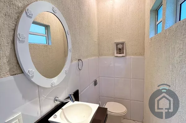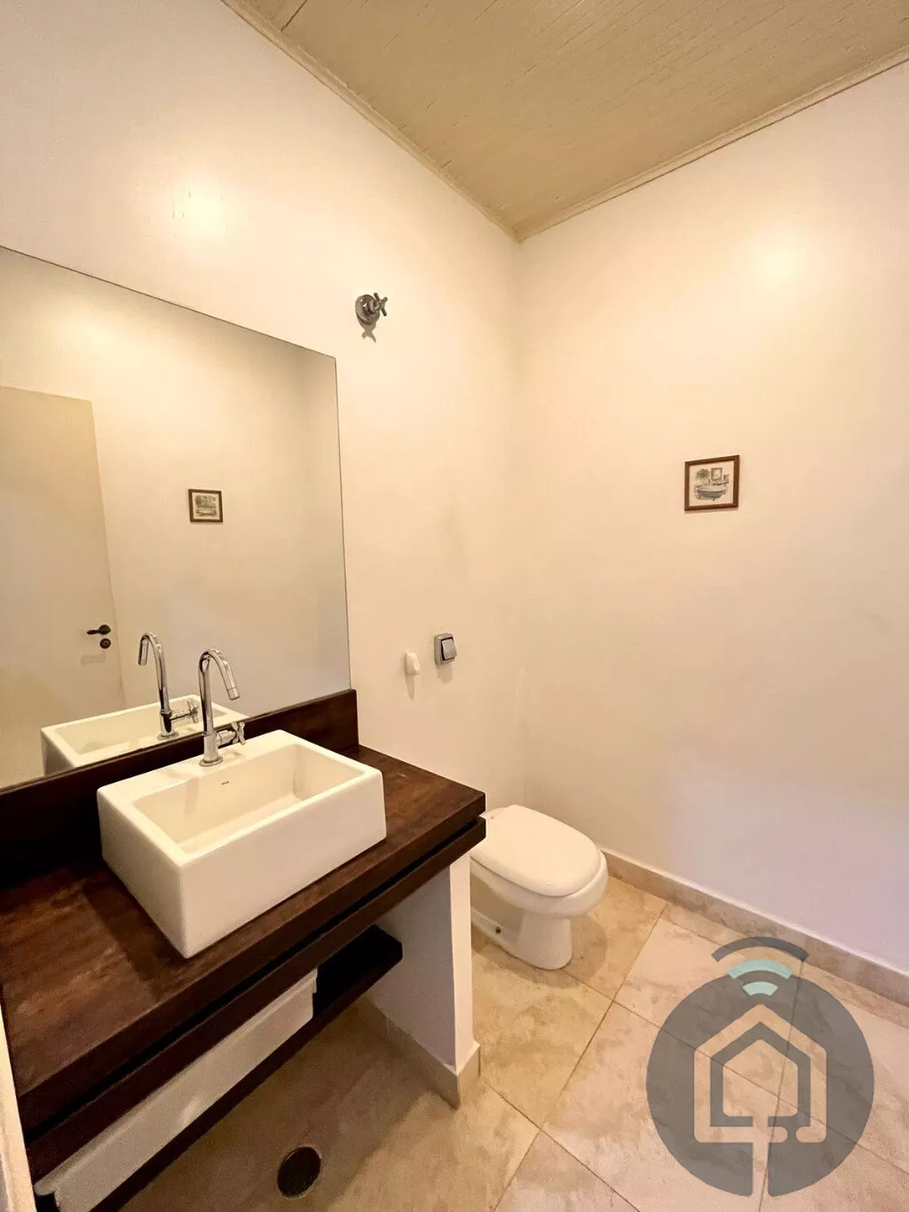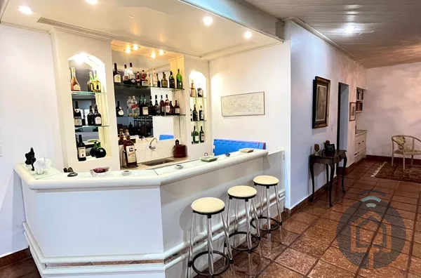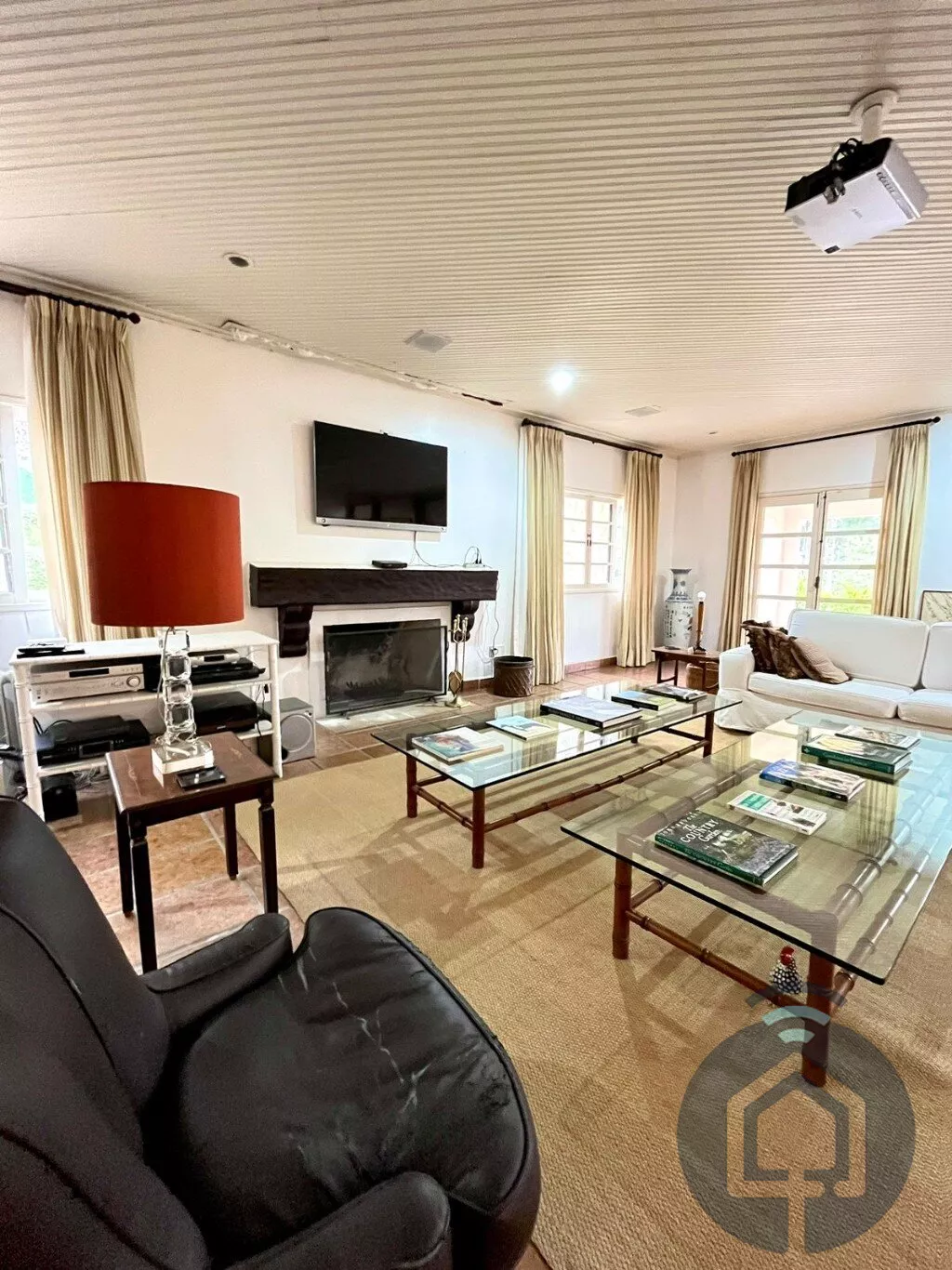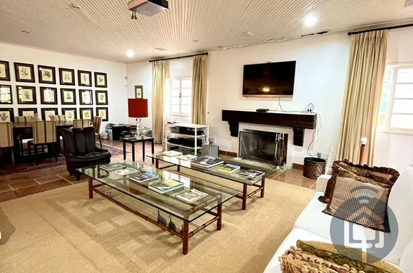 No coração da casa, um amplo living se desdobra em quatro cenários distintos, cada um, um convite para compartilhar momentos preciosos. Uma lareira, proporciona uma atmosfera acolhedora, enquanto um bar charmoso convida a desfrutar de conversas descontraídas em outro. As janelas se abrem para revelar uma varanda ampla, um portal para a serenidade exterior.