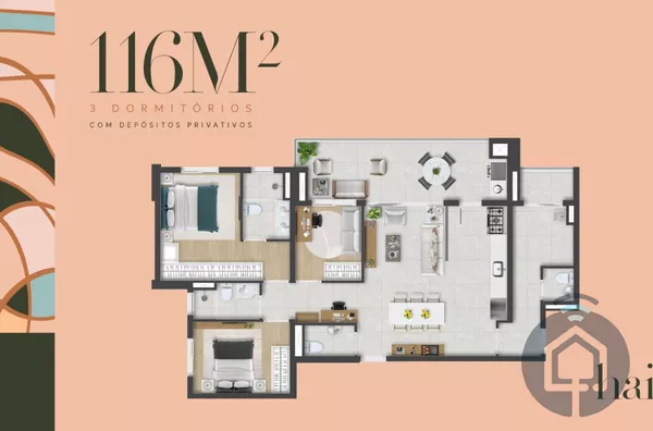 O Haia Boa Vista foi cuidadosamente projetado para proporcionar a sensação de viver em uma casa nas alturas, mantendo uma conexão harmoniosa entre a vida urbana e a natureza. Cada plano de apartamento, com design fluído, combina integração de espaços com respeito às funções específicas de cada ambiente. O resultado é um ambiente acolhedor, onde você pode relaxar após longos dias com uma sensação de paz e conforto, graças aos inteligentes layouts dos apartamentos de 116m² e 151m².