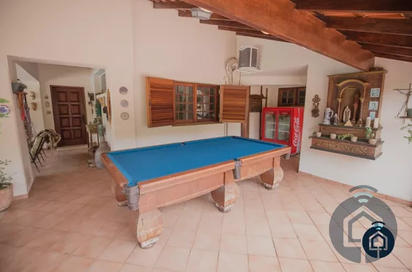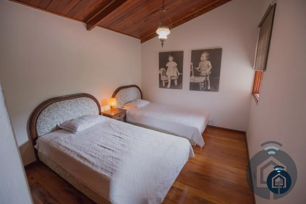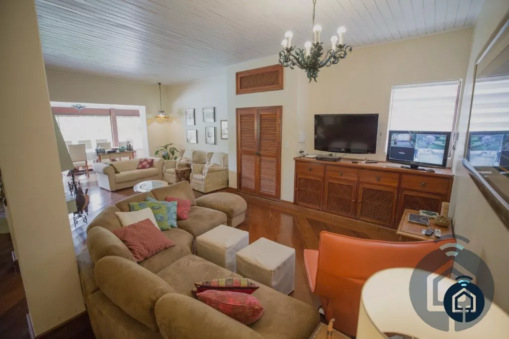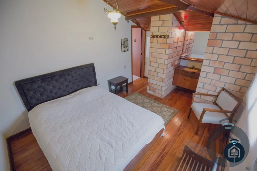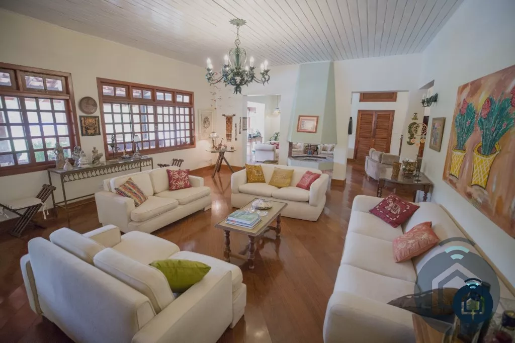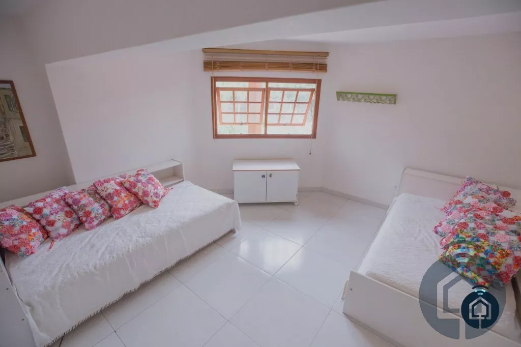 Lindíssimo sítio com 2 casas, sendo a casa principal com 5 dormitórios, sendo 2 suítes, 3 banheiros sociais, sala de estar ampla com lareira, varanda, saleta, 2 lavabos, sala de jantar, cozinha, lavanderia, área externa com churrasqueira, ateliê e garagem. A casa de hóspedes possui 5 dormitórios, 3 banheiros sociais, sala de estar com lareira, varanda, cozinha, área externa com churrasqueira e garagem. Área de lazer com piscina, quadra de tênis, campo de bocha, lago e um maravilhoso jardim, dispõem também de um pomar e horta. O sítio possui 3 quartos de guardar ferramentas/ depósito e também 2 casas de caseiro com 2 quartos, 1 banheiro social, sala de estar e cozinha. Localizada a apenas uma hora da capital paulista, São Roque é refúgio de paulistanos em busca de sossego, conhecida pelos seus excelentes vinhos e pontos turísticos.