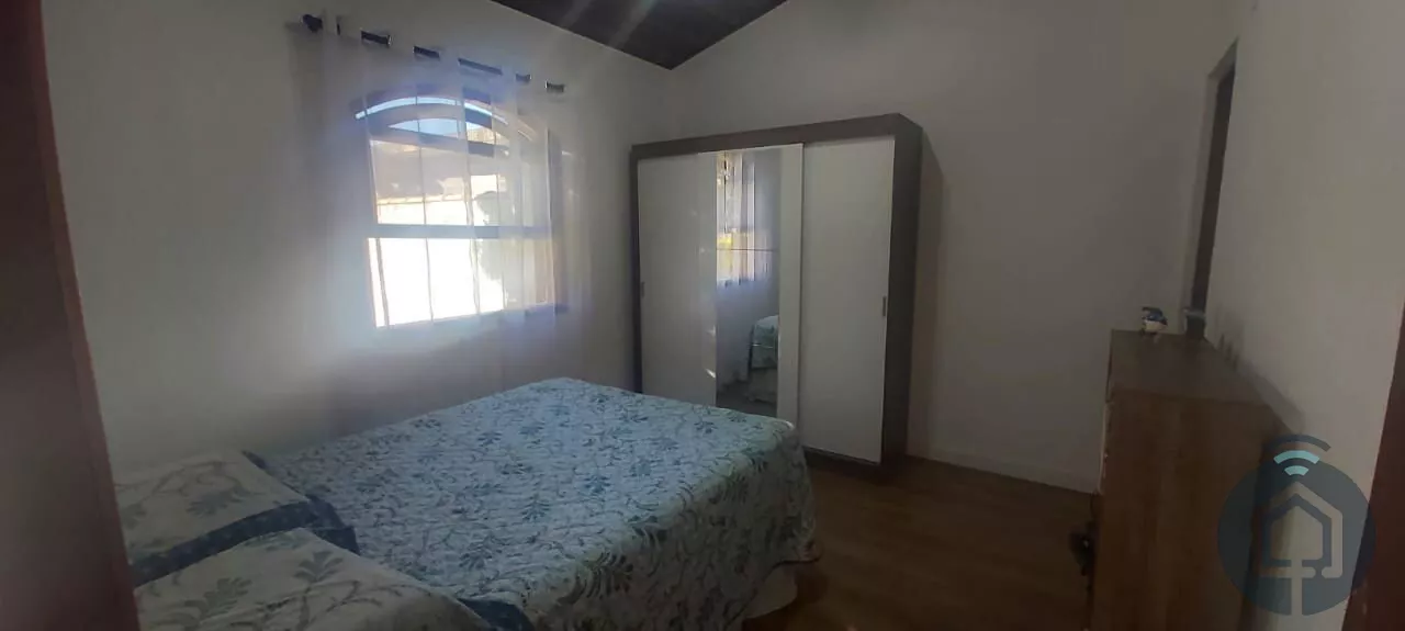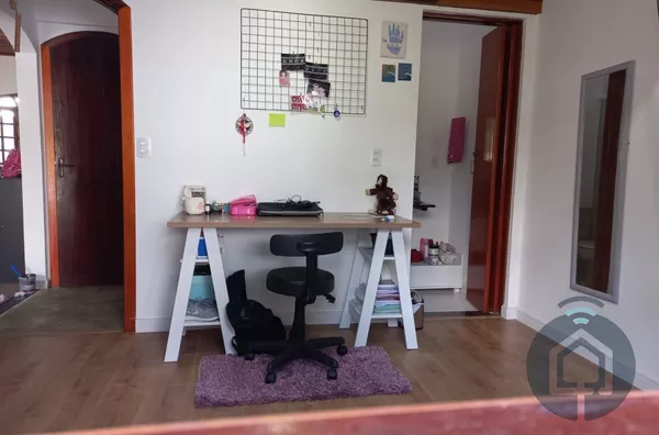 O piso da cozinha é de porcelanato, garantindo durabilidade e beleza, enquanto o restante da casa é revestido com piso laminado, proporcionando conforto e um toque acolhedor.