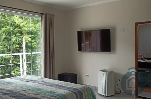 No andar superior, você encontrará uma suíte espaçosa com uma charmosa varanda, ideal para momentos de relaxamento. Além disso, há um quarto simples, um banheiro social e uma sala de TV aconchegante para assistir seus filmes e séries favoritos. A área gourmet, com churrasqueira e mais um banheiro, é perfeita para celebrar bons momentos com amigos e familiares.