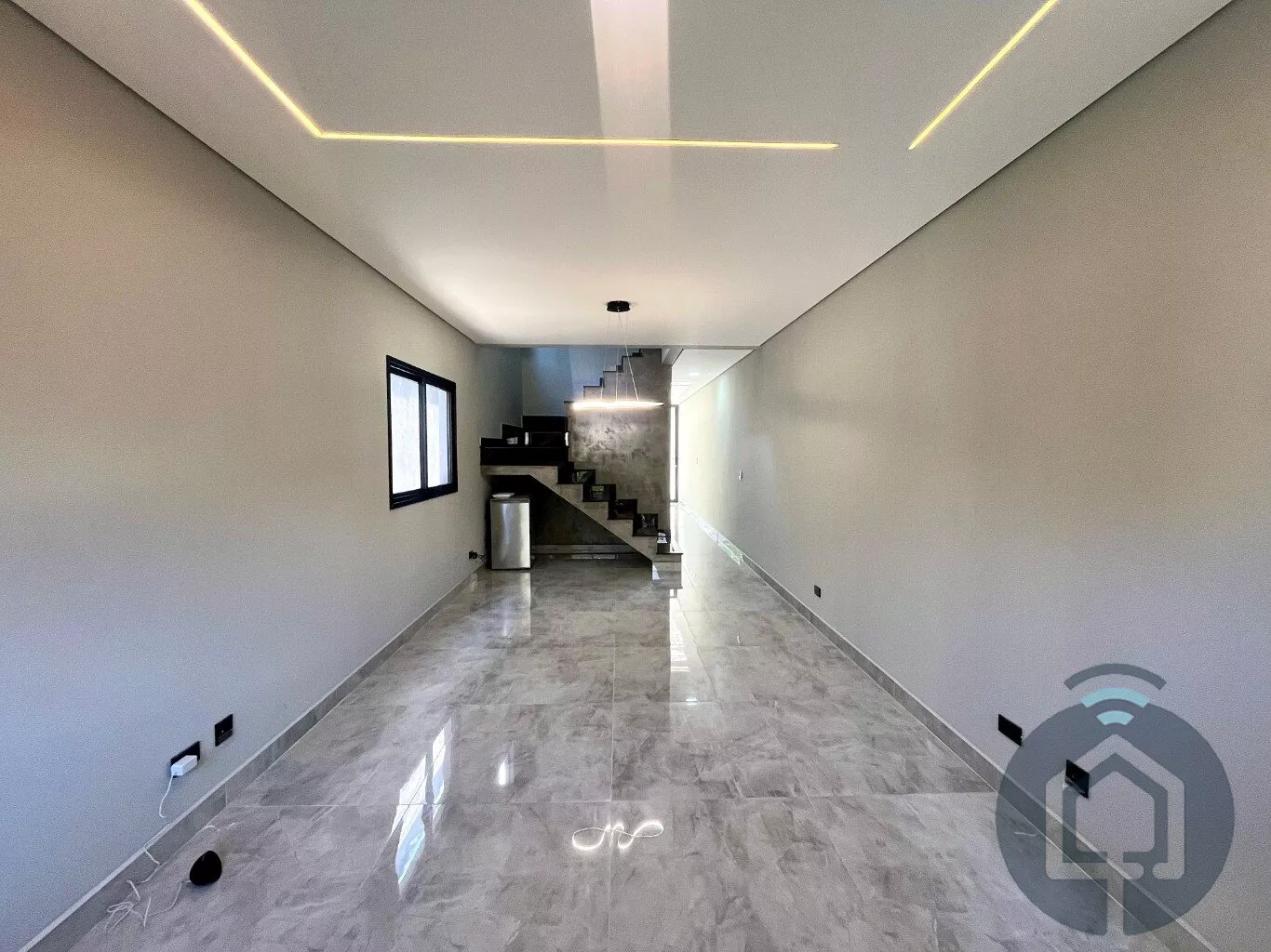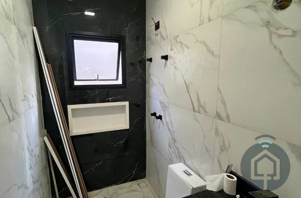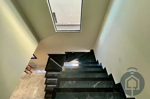 A garagem comporta até 2 carros e conta com portão automático, oferecendo mais segurança e comodidade. Além disso, o sobrado é equipado com tecnologia moderna, incluindo preparação para ar condicionado nos dormitórios, isolamento acústico para maior conforto e um sistema automatizado para janelas e iluminação, trazendo mais praticidade e eficiência para sua rotina.