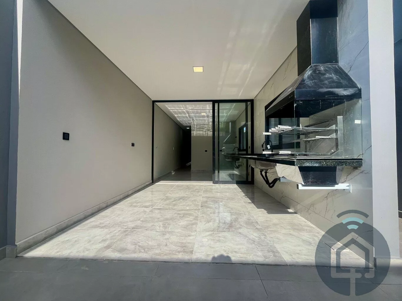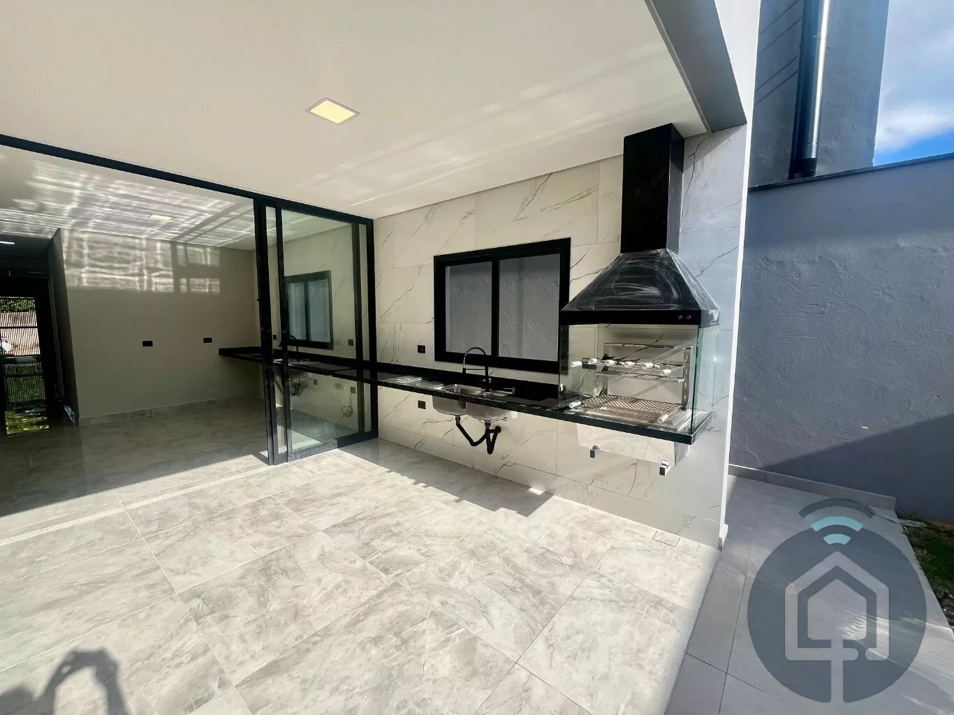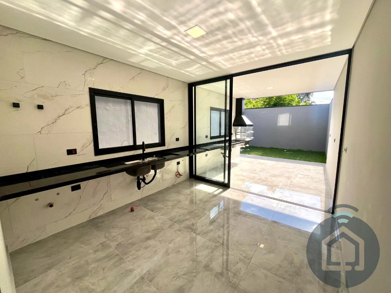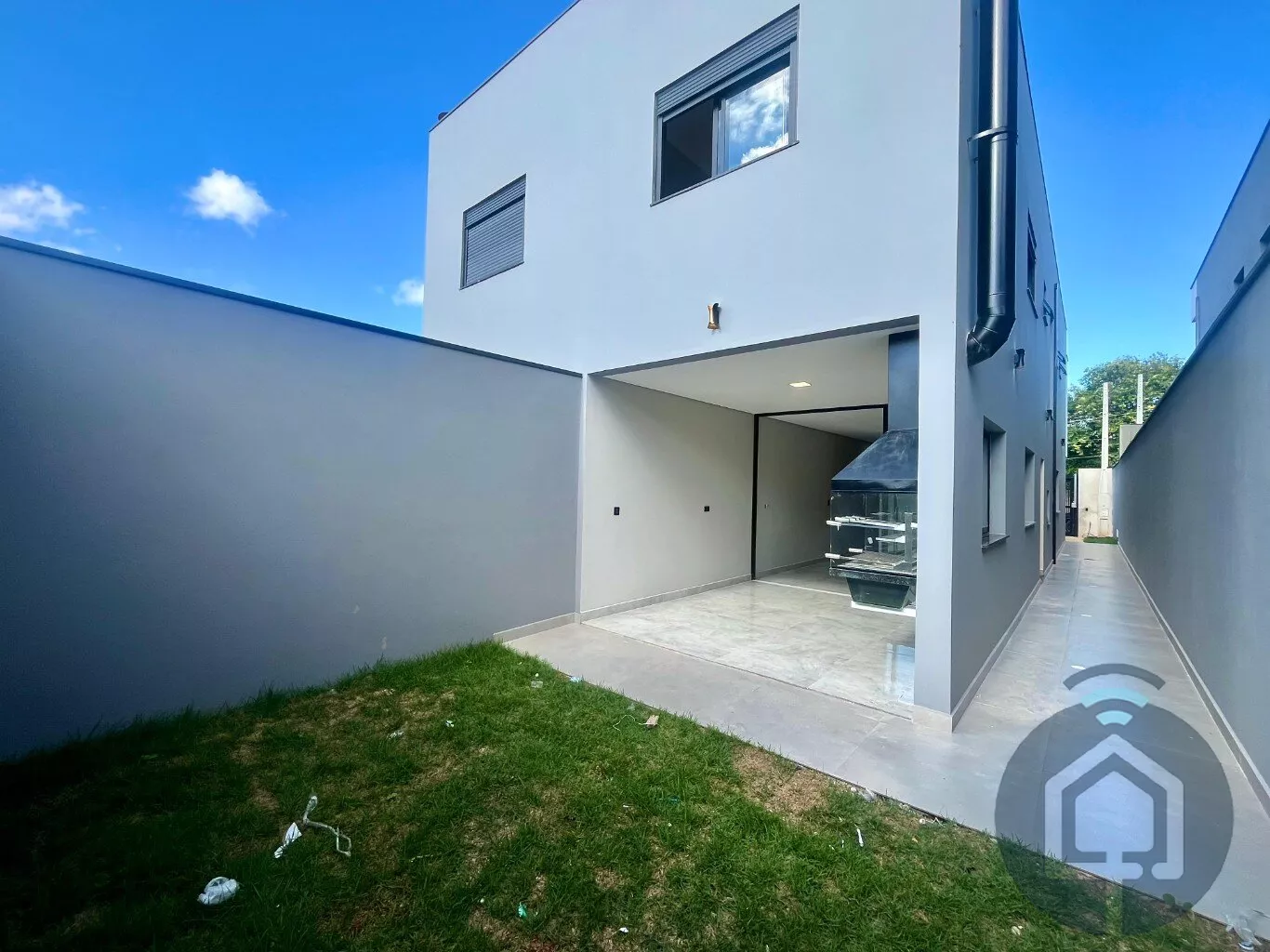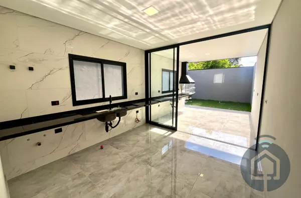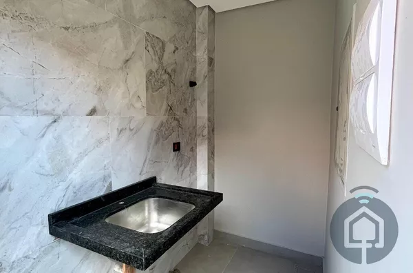 A sala de estar é um espaço acolhedor, perfeito para relaxar ou receber visitas. Já a cozinha, moderna e funcional, se conecta à área gourmet com churrasqueira, criando o ambiente ideal para reunir amigos e familiares em dias especiais. O lavabo e o quintal completam esse espaço pensado para a convivência e a praticidade do dia a dia.