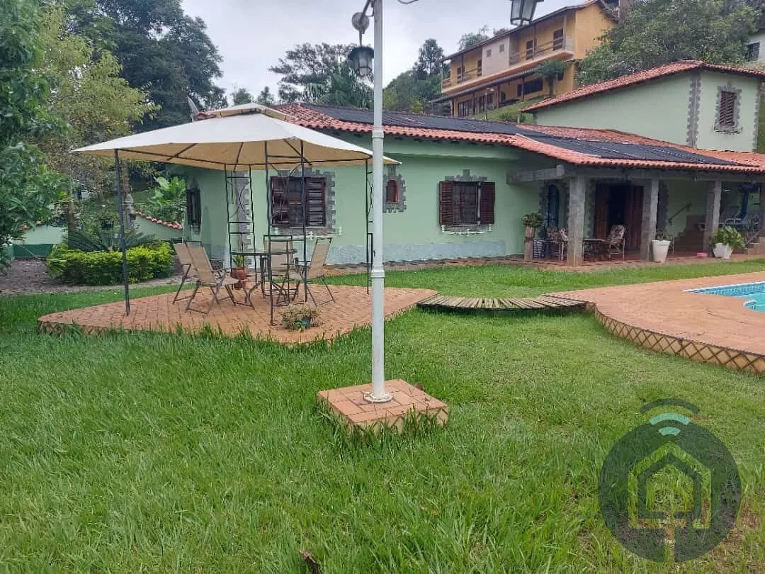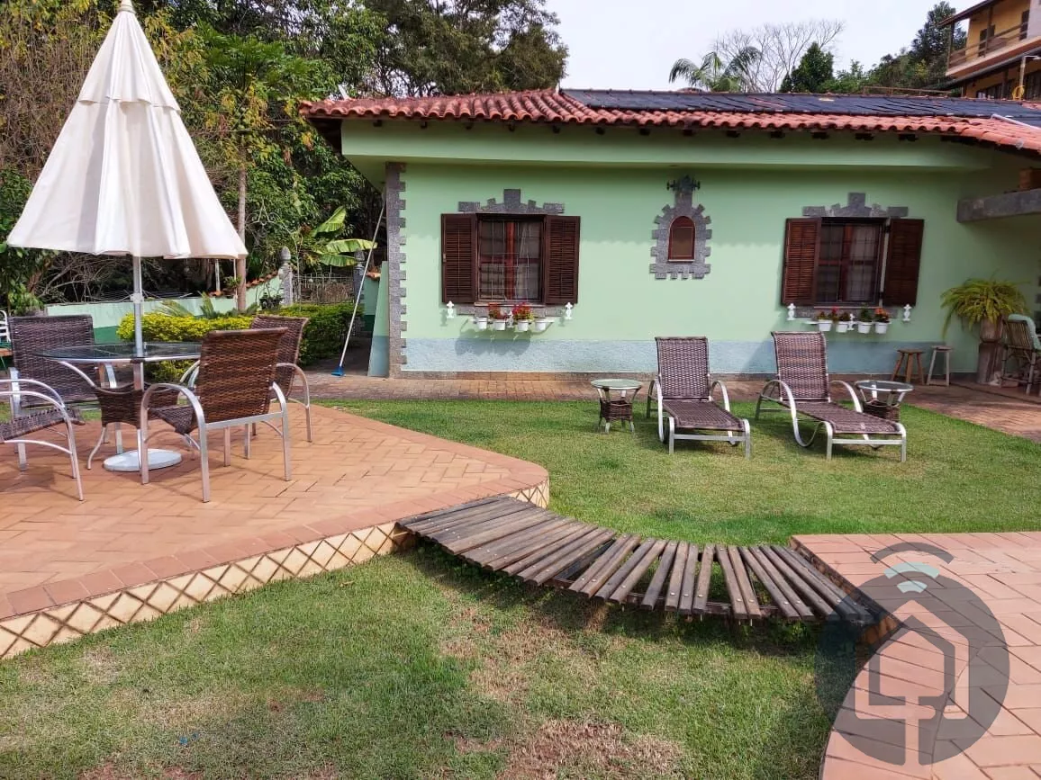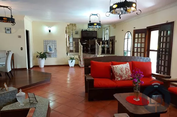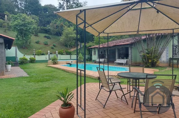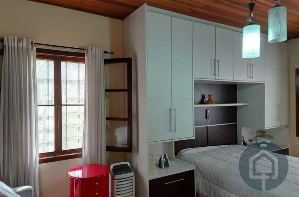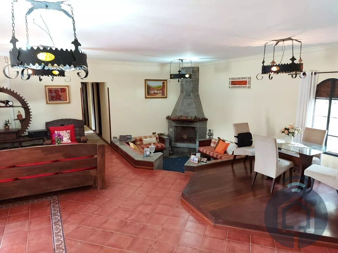 Totalmente mobiliada e equipada, a chácara conta com 7 quartos, sendo 2 suítes, e acomoda até 20 pessoas confortavelmente. São 6 banheiros, garantindo praticidade e privacidade para todos. O coração da casa é uma sala ampla, dividida em 4 ambientes aconchegantes, incluindo uma sala de lareira, onde você pode se aquecer e curtir momentos tranquilos.