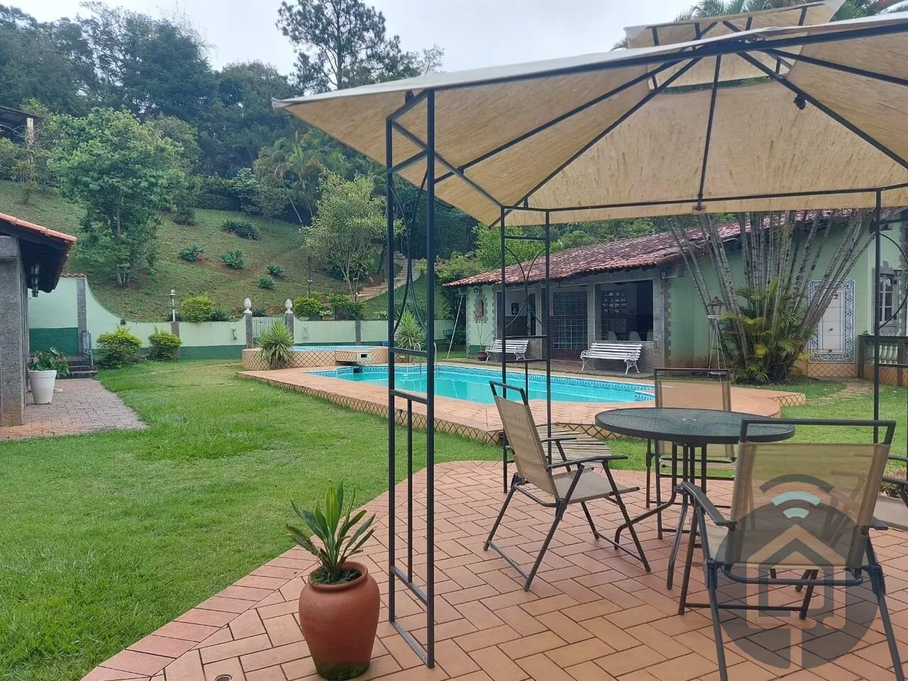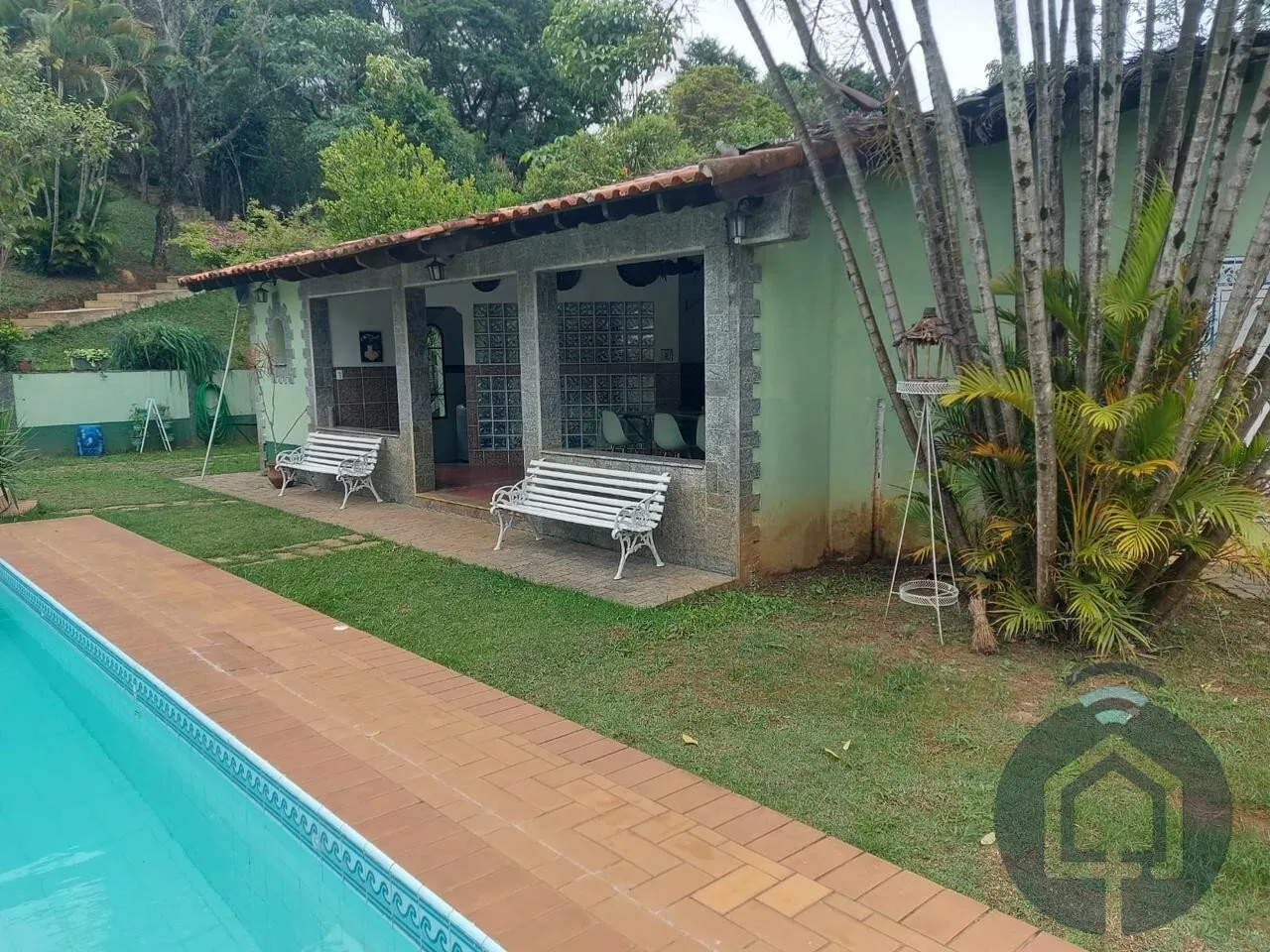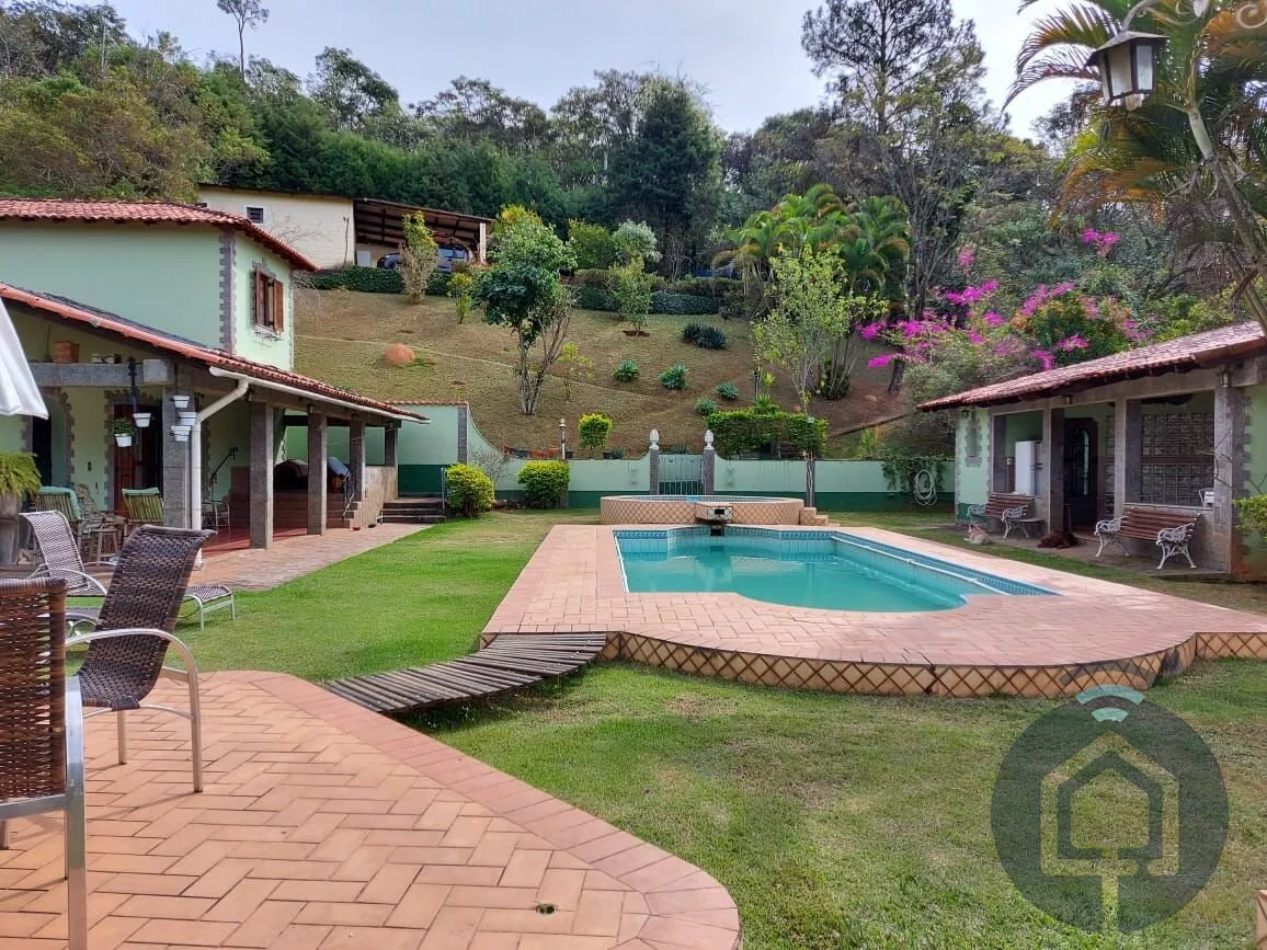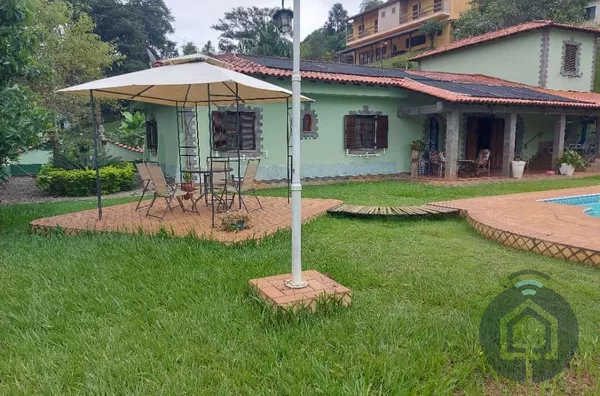Totalmente mobiliada e equipada, a chácara conta com 7 quartos, sendo 2 suítes, e acomoda até 20 pessoas confortavelmente. São 6 banheiros, garantindo praticidade e privacidade para todos. O coração da casa é uma sala ampla, dividida em 4 ambientes aconchegantes, incluindo uma sala de lareira, onde você pode se aquecer e curtir momentos tranquilos.
