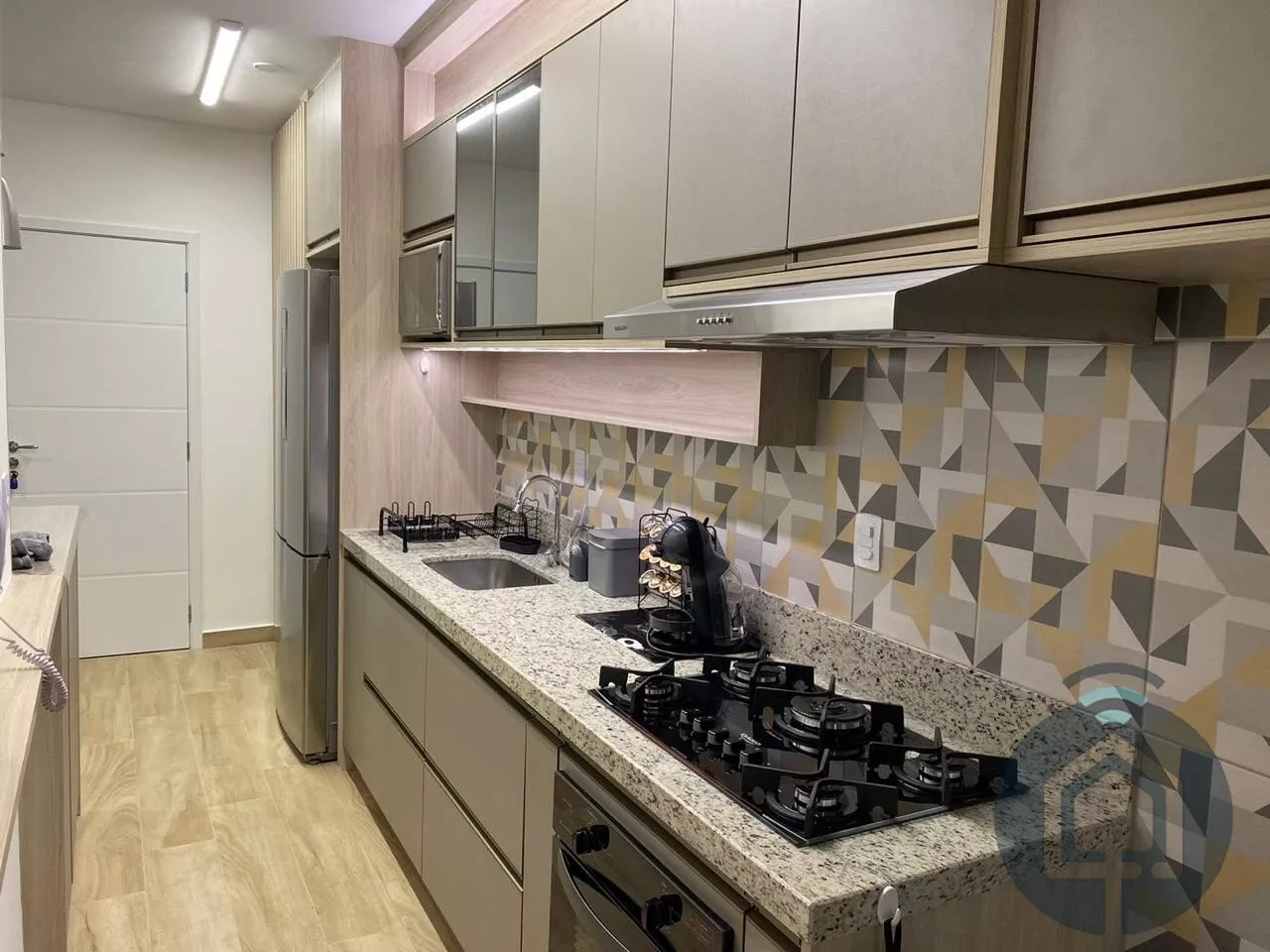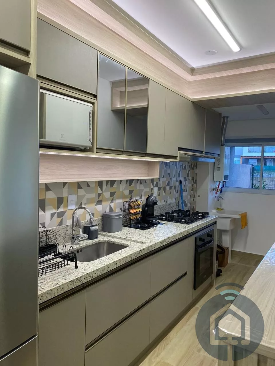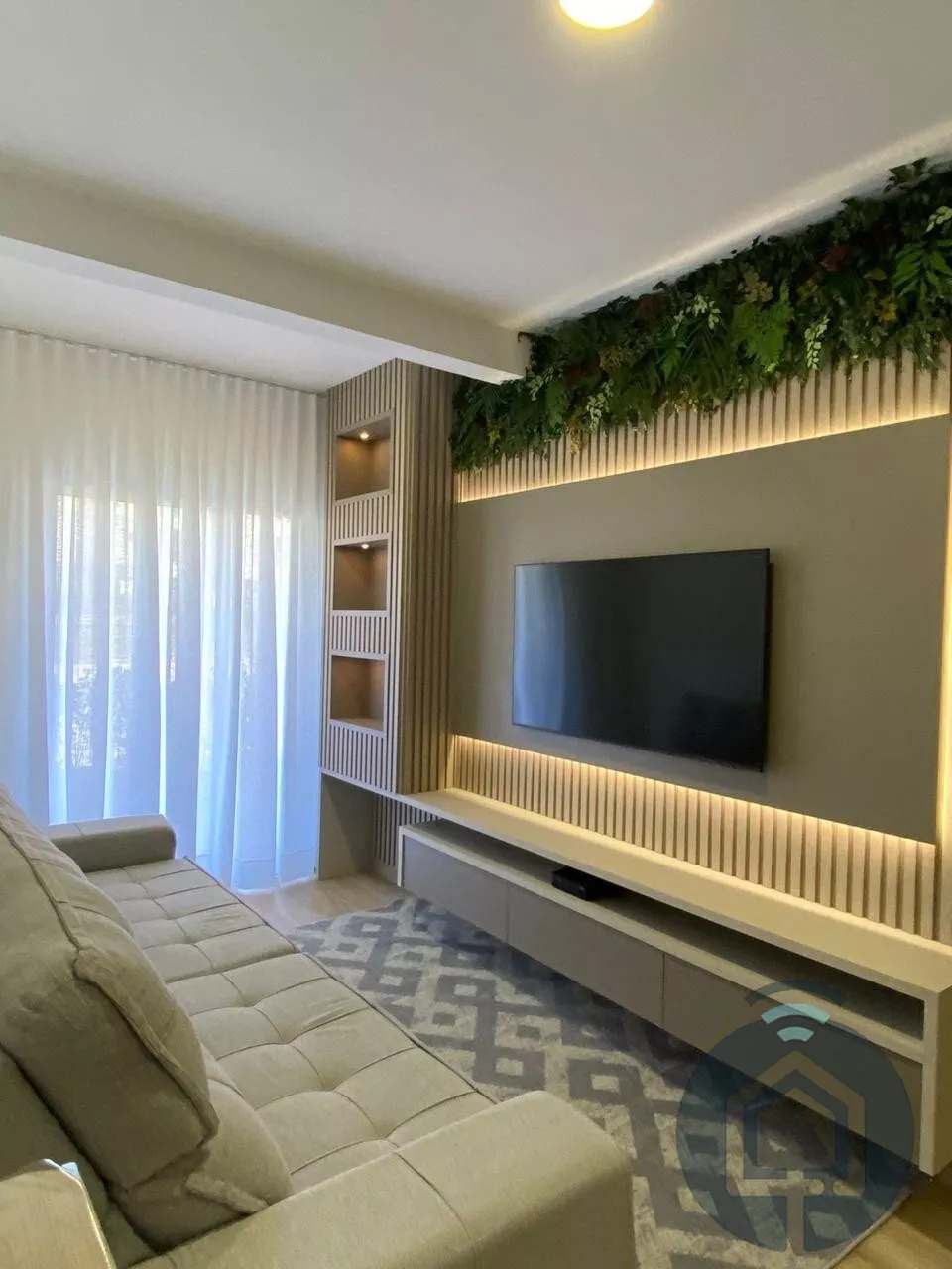 Ao entrar, você encontra uma sala de estar acolhedora, planejada com um painel iluminado que adiciona charme e sofisticação. Integrada à sala de jantar, essa área conecta-se harmoniosamente à cozinha, que já vem equipada com cooktop e espaço otimizado para a lavanderia, completa com máquina de lavar. São dois dormitórios confortáveis, sendo um deles uma suíte e banheiros com acabamentos de alta qualidade.