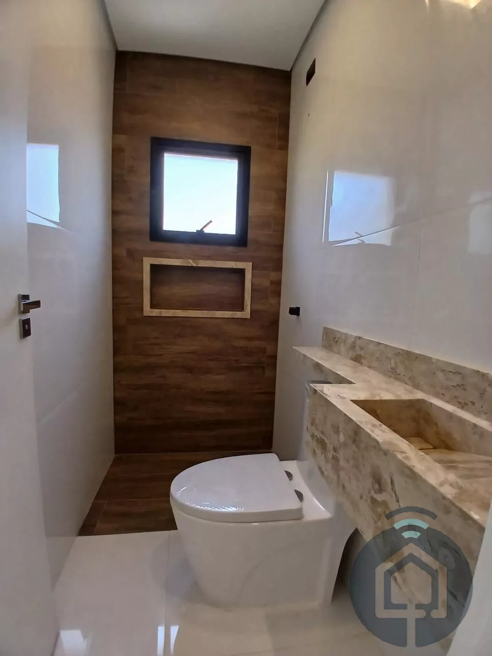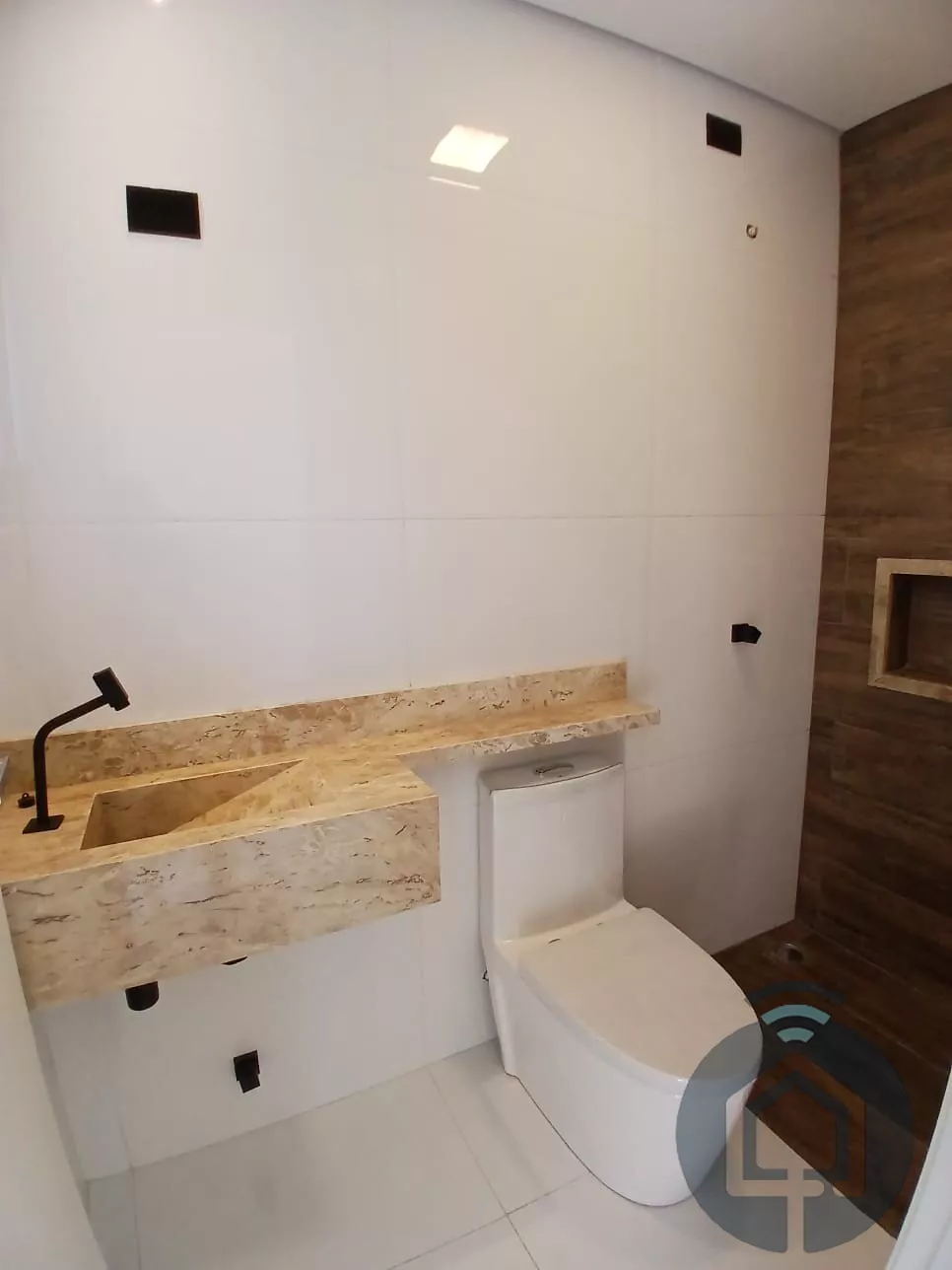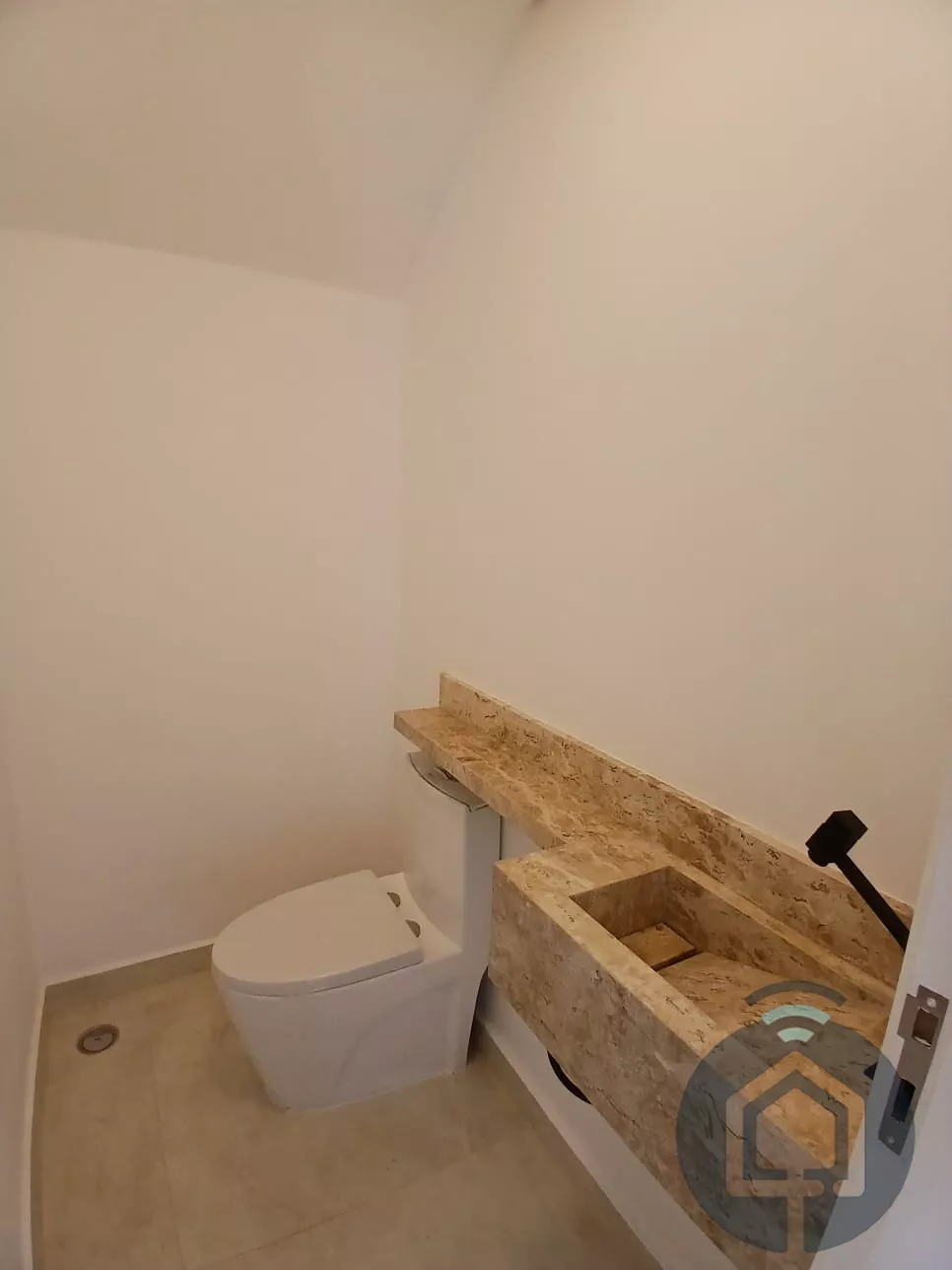 Acabamento Premium: Cada detalhe da casa foi pensado para oferecer qualidade e sofisticação, com pisos em porcelanato 83x83, banheiros e lavabo com cubas esculpidas em mármore Travertino e esquadrias de alumínio anodizado preto, que combinam perfeitamente com o estilo contemporâneo do imóvel.