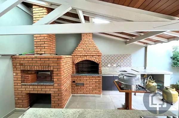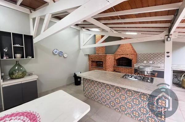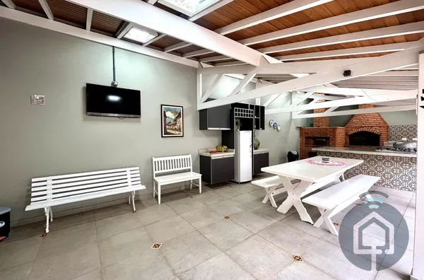 No pavimento térreo, a garagem acomoda até três veículos, sendo duas vagas cobertas e com portão automatizado. O espaço oferece um cômodo adicional, perfeito para armazenamento ou até para se tornar um escritório charmoso e funcional, com acesso direto à área gourmet. E que área gourmet! Com churrasqueira, forno a lenha e um jardim aconchegante, é o lugar ideal para encontros e momentos especiais, com total privacidade e praticidade.