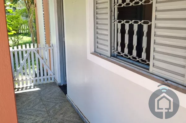 A casa é aconchegante, com um quarto, sala, banheiro e cozinha integrados, além de uma varanda charmosa que convida a relaxar ao ar livre. Ao lado, há um quarto com banheiro privativo localizado abaixo de um deck, e outro quarto com banheiro, que fica próximo à área gourmet.