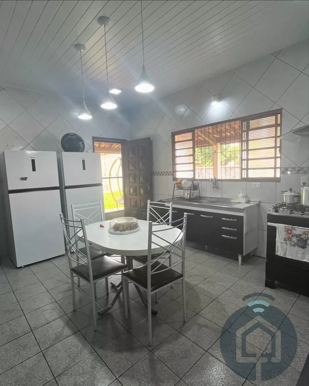 Com 1500 m² de terreno totalmente plano, gramado e cercado, essa chácara conta com uma área construída de 246m². A casa é ampla e confortável, com 3 quartos, sendo uma suíte, e a possibilidade de se transformar em um imóvel de 4 quartos, graças a um cômodo externo que atualmente serve como despensa, mas pode ser convertido em dormitório.