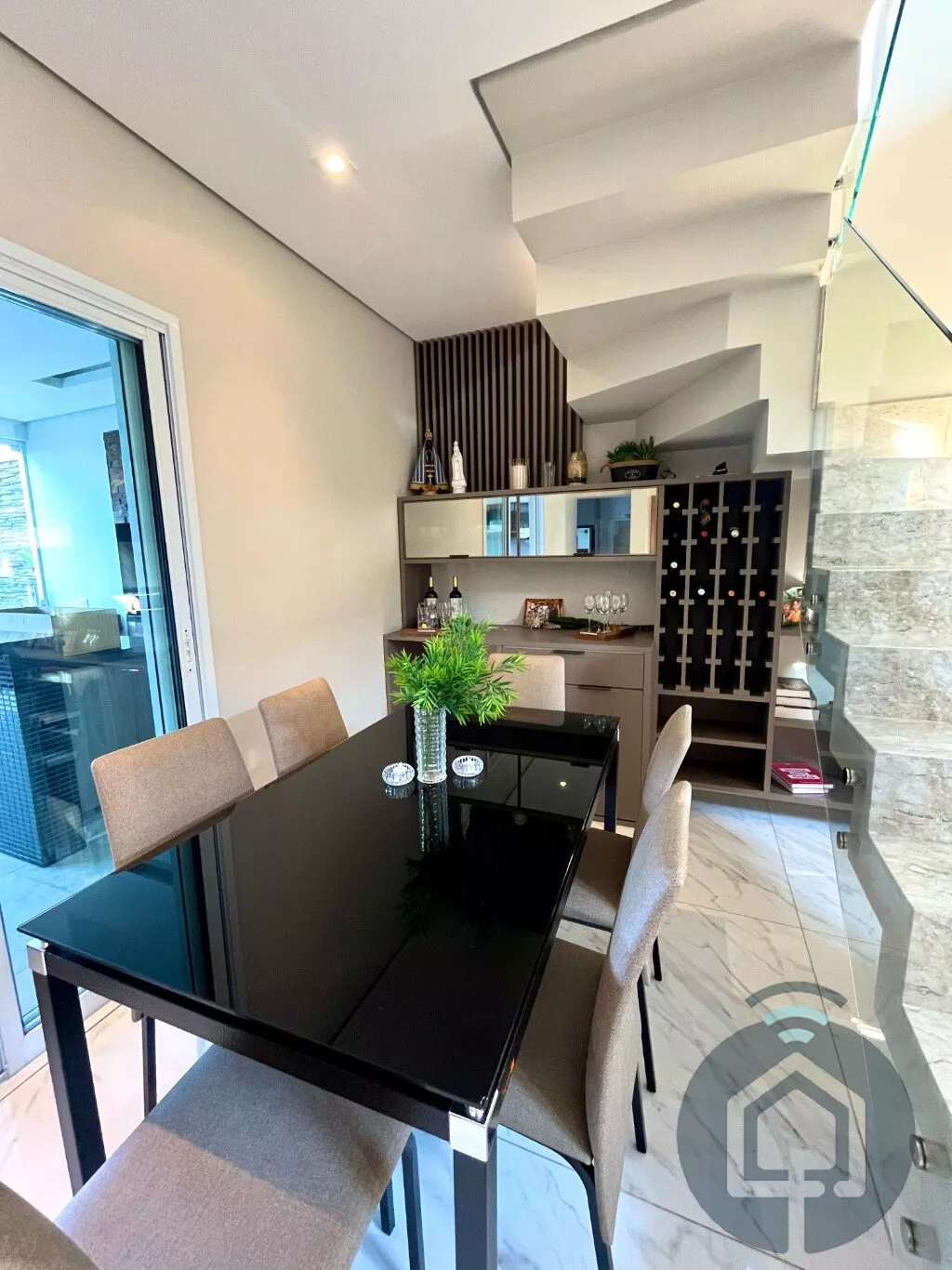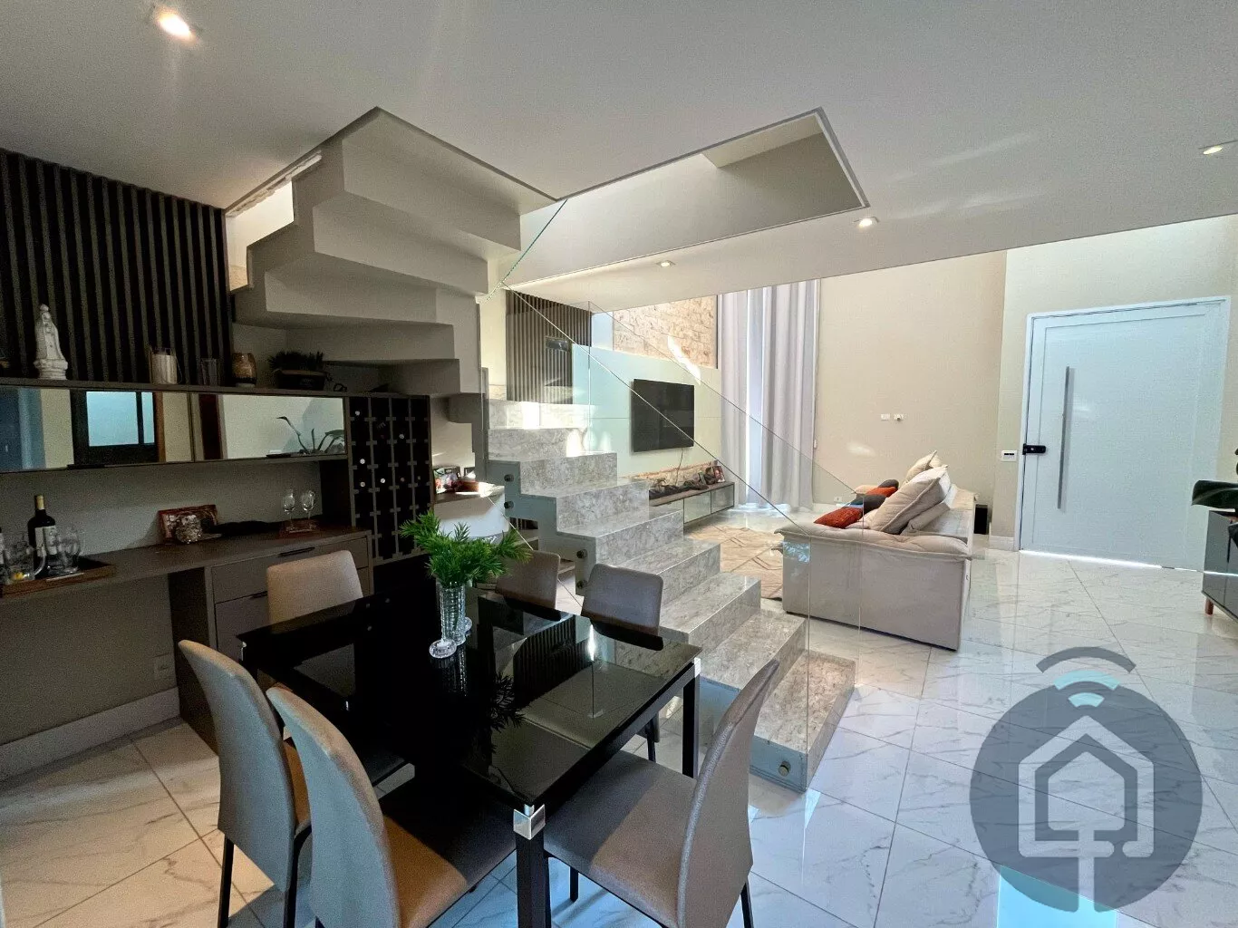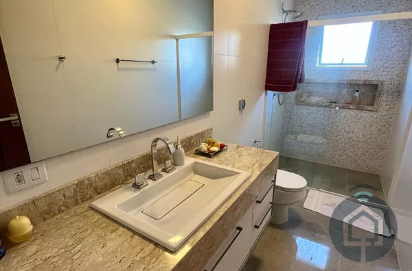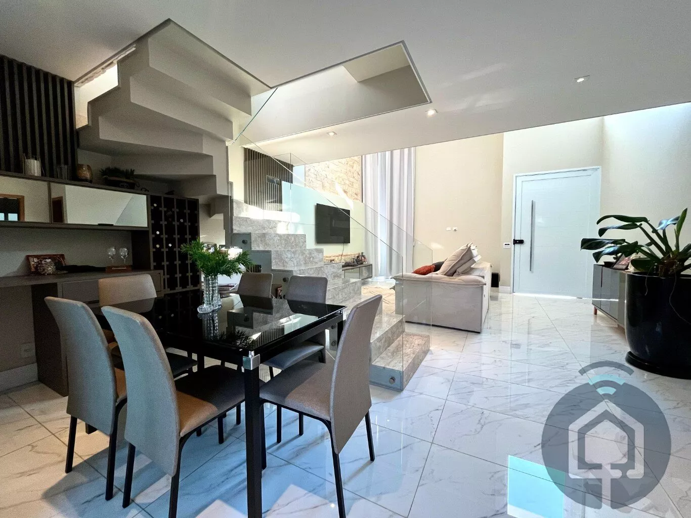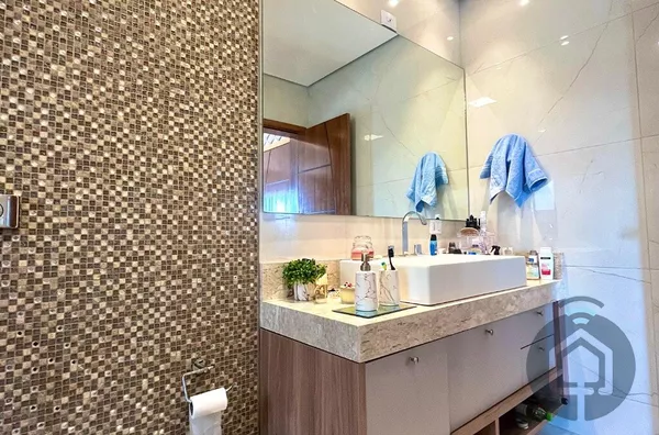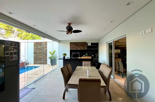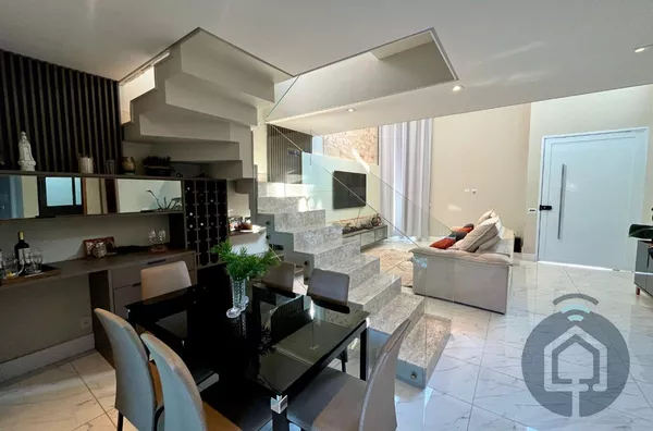 Esta casa em condomínio fechado de alto padrão é a combinação perfeita de elegância, conforto e funcionalidade. Ao entrar, você será recebido por uma sala de estar ampla, com pé-direito alto e uma linda parede de pedra, que traz sofisticação ao ambiente. Integrado à sala de estar, há uma adega planejada e um espaço aconchegante para a sala de jantar. Para maior praticidade, um lavabo está disponível para atender as visitas.