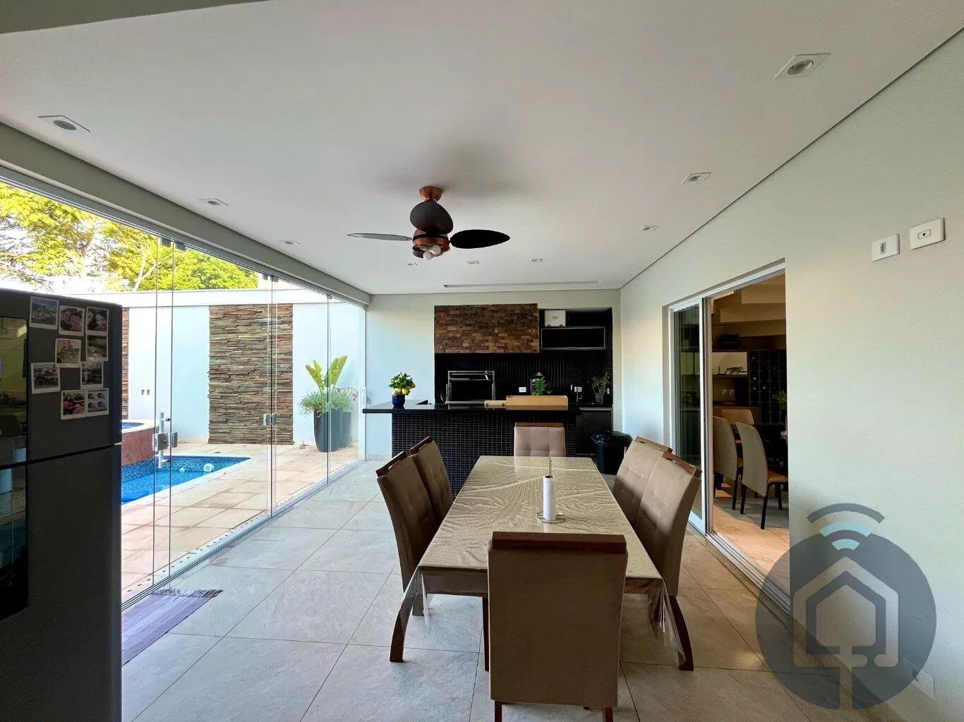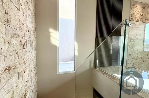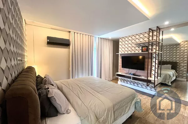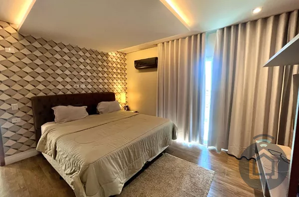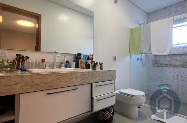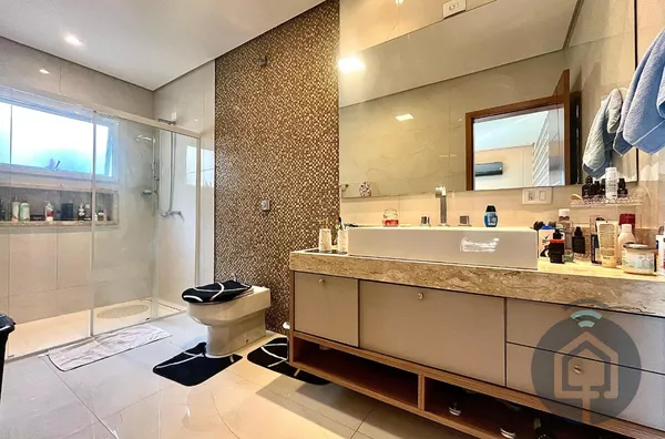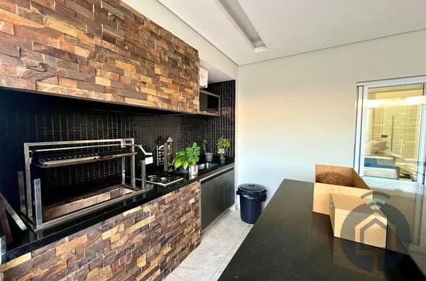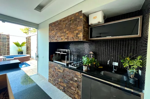 A área gourmet é um verdadeiro convite para momentos especiais. Coberta e totalmente integrada à sala de jantar e à cozinha, ela conta com churrasqueira, cooktop e fechamento em vidro, permitindo a conexão perfeita com o quintal. O espaço externo oferece uma piscina aquecida e um ofurô, proporcionando lazer e relaxamento. Para maior comodidade, há ainda um lavabo externo exclusivo para atender essa área.