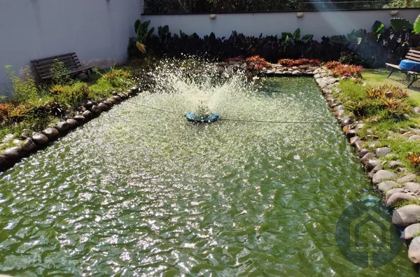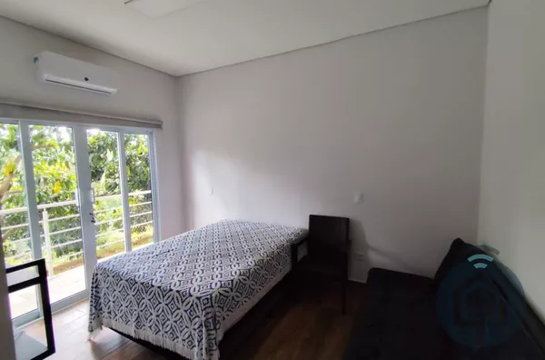 A casa principal é espaçosa e elegante, contando com 5 suítes, sendo 2 delas master, todas equipadas com ar condicionado para garantir o máximo de conforto. Além disso, há uma charmosa casa de hóspedes com 4 suítes, também climatizadas, proporcionando privacidade e conforto para os visitantes.