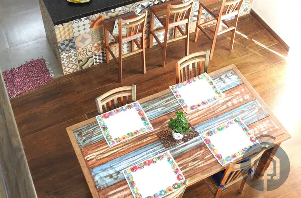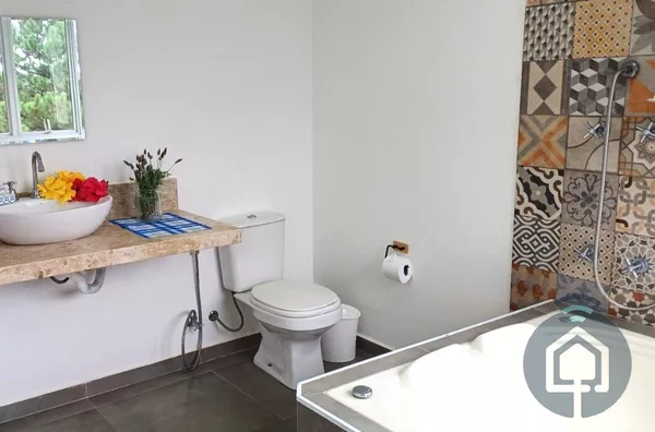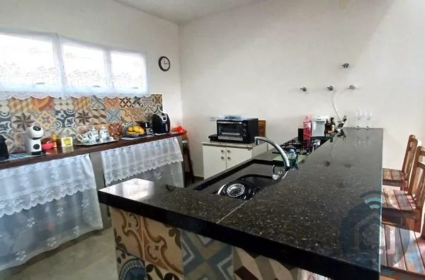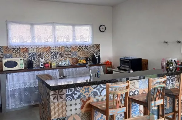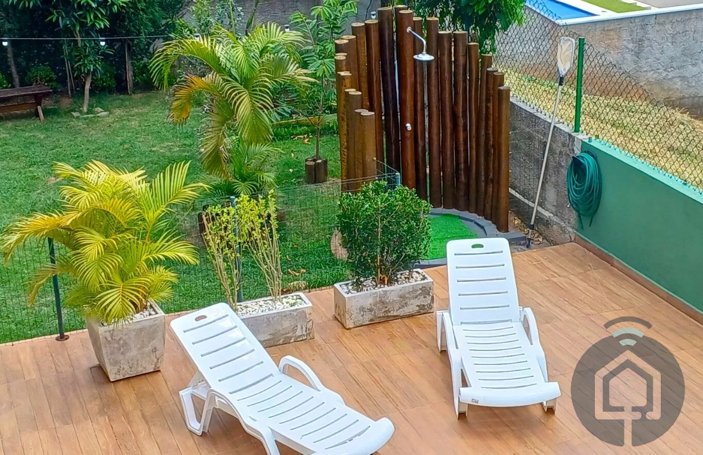 Na área externa, a casa conta com piscina, ducha em biombo de madeira, quiosque com churrasqueira e muito espaço para lazer. São 140 m² de área construída, 180 m² de área total em um terreno generoso de 527 m², com diversas árvores frutíferas como jabuticabeira, acerola, limão siciliano, amoreira, além de uma mini horta e vários pés de lavanda que deixam o ambiente ainda mais agradável.