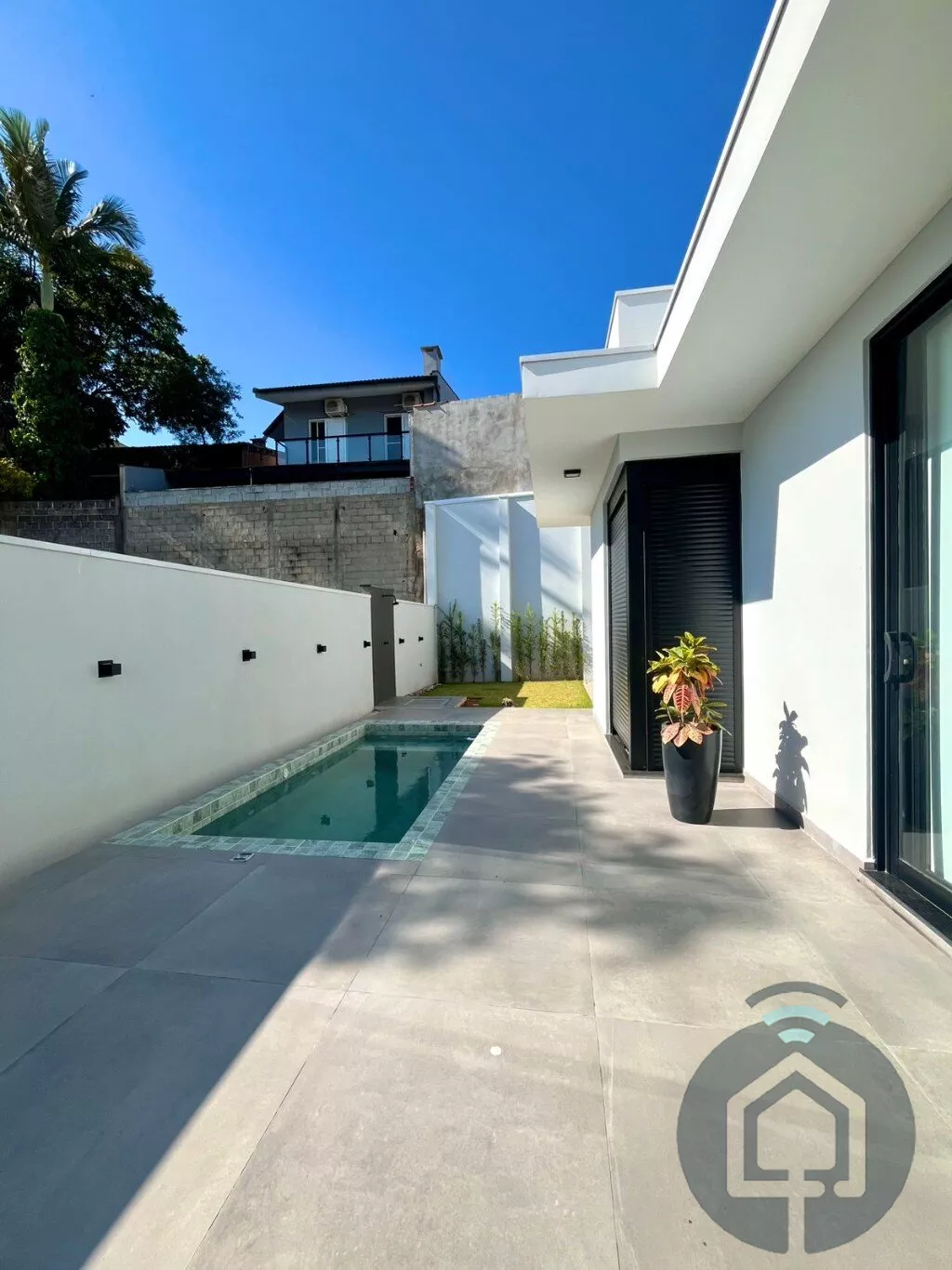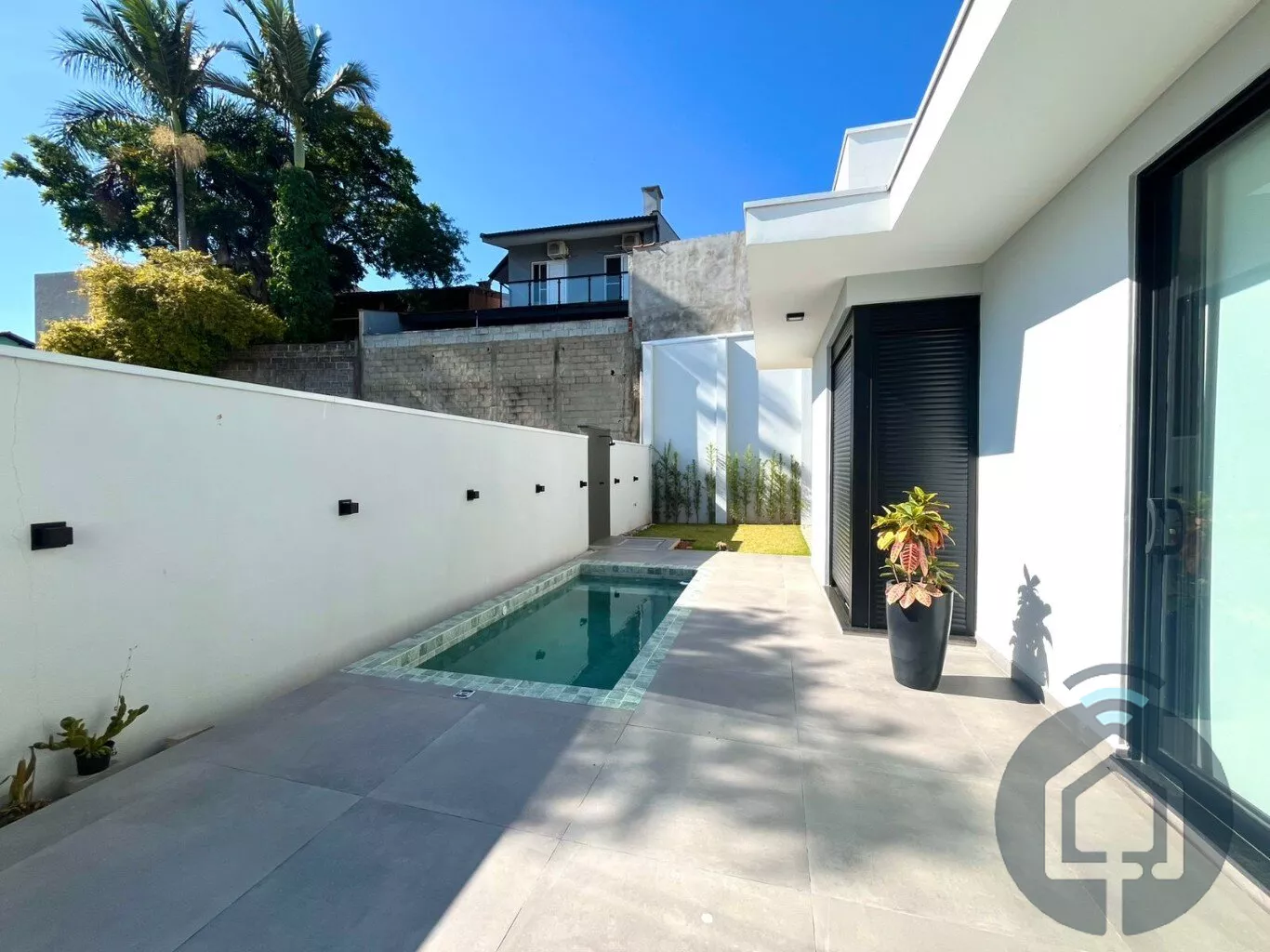 Falando em exterior, a área de lazer é um verdadeiro refúgio. A piscina revestida em pastilhas traz um toque de requinte e o quintal espaçoso oferece inúmeras possibilidades — seja para montar uma área gourmet, um jardim ou simplesmente um espaço ao ar livre para aproveitar bons momentos em família.