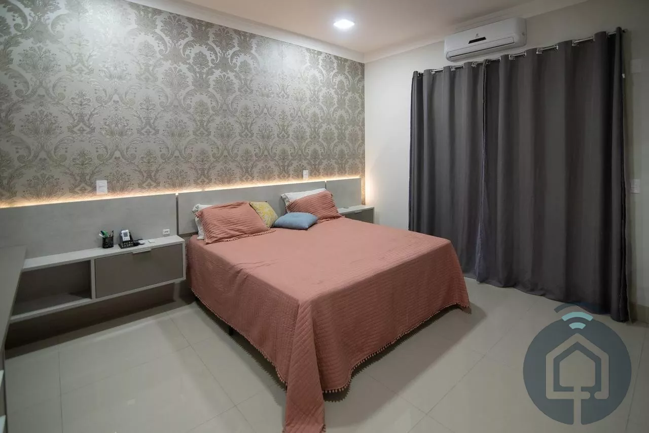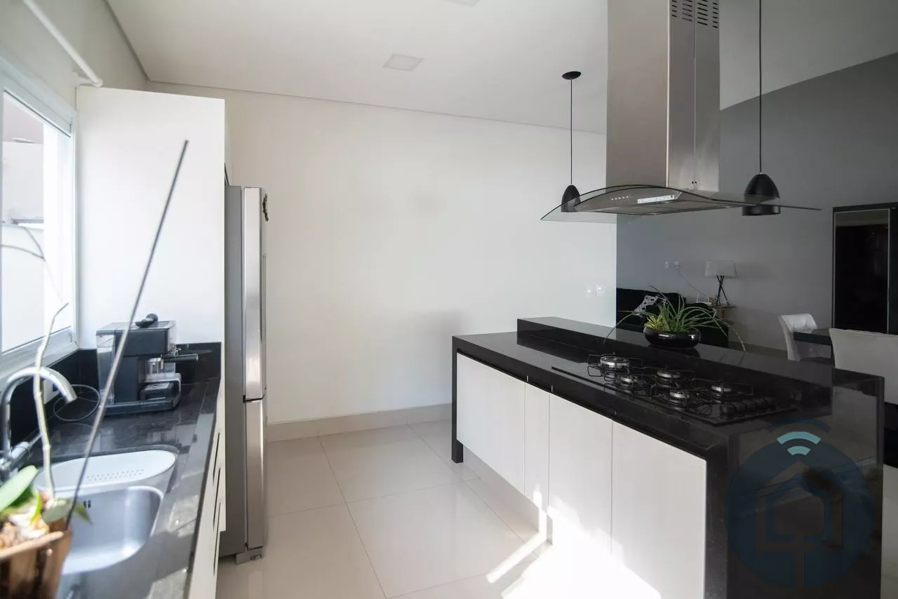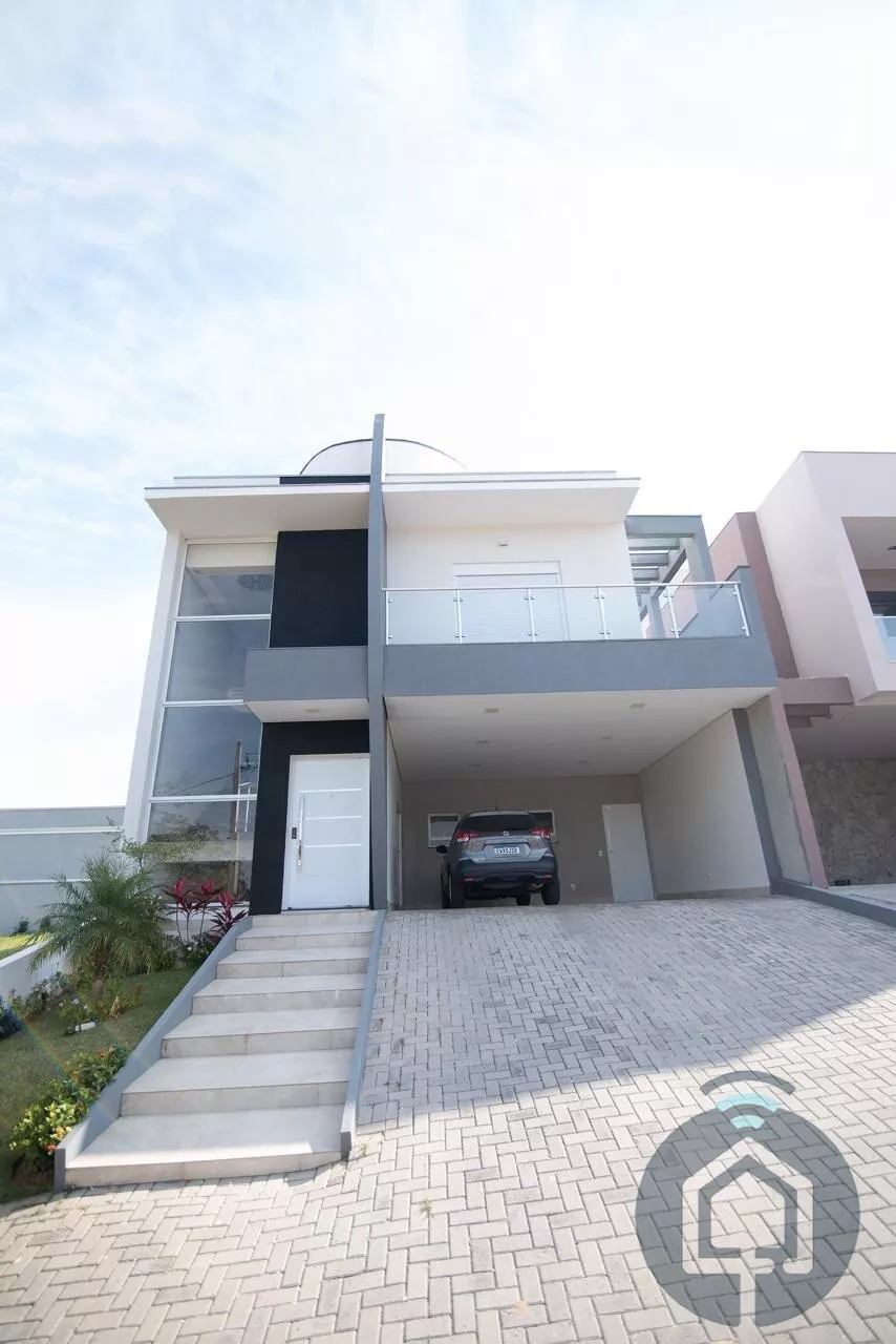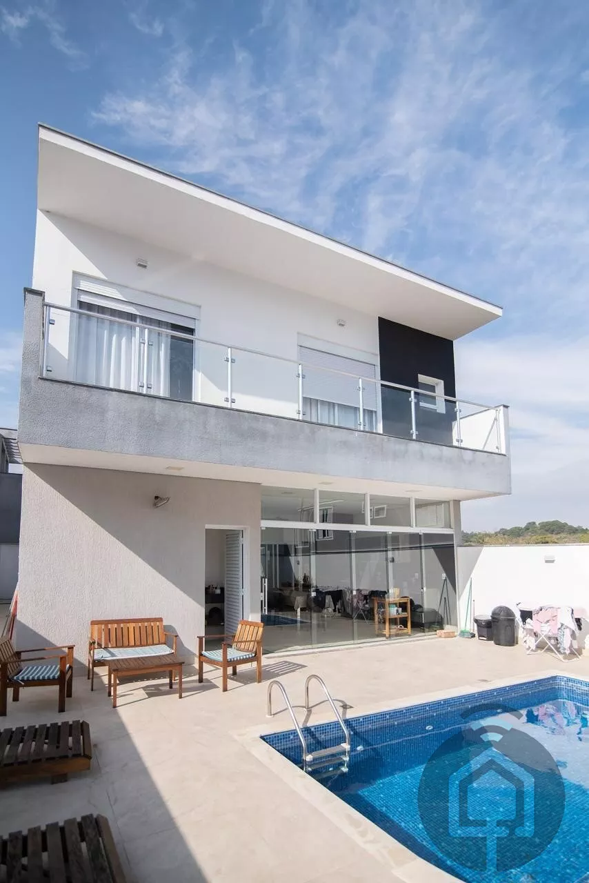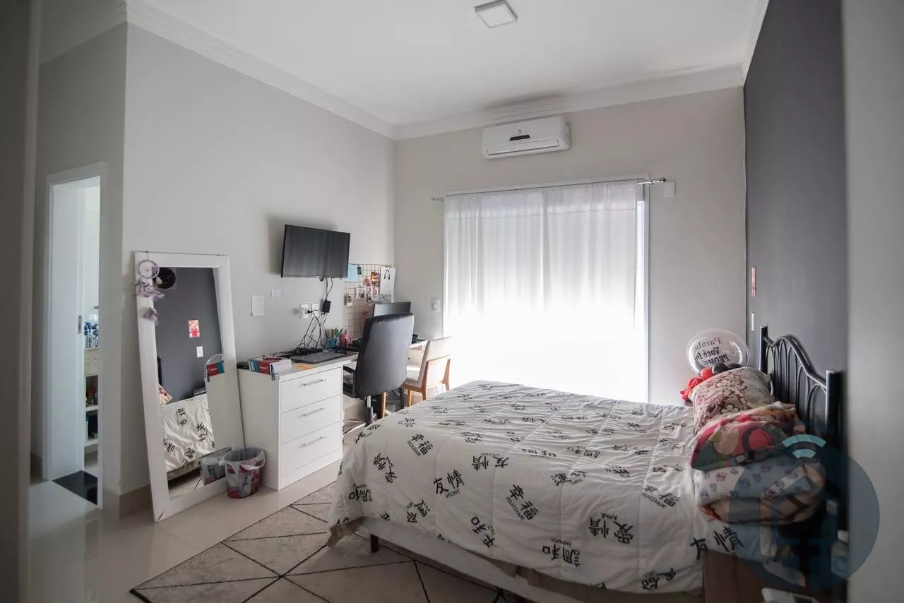 Casa moderna com 323,62 m² de área construída, possui três suítes, sendo a master com closet e hidromassagem, todas com varanda. Conta ainda com escritório, lavabo e uma ampla sala com pé direito duplo, integrando estar, jantar e TV.