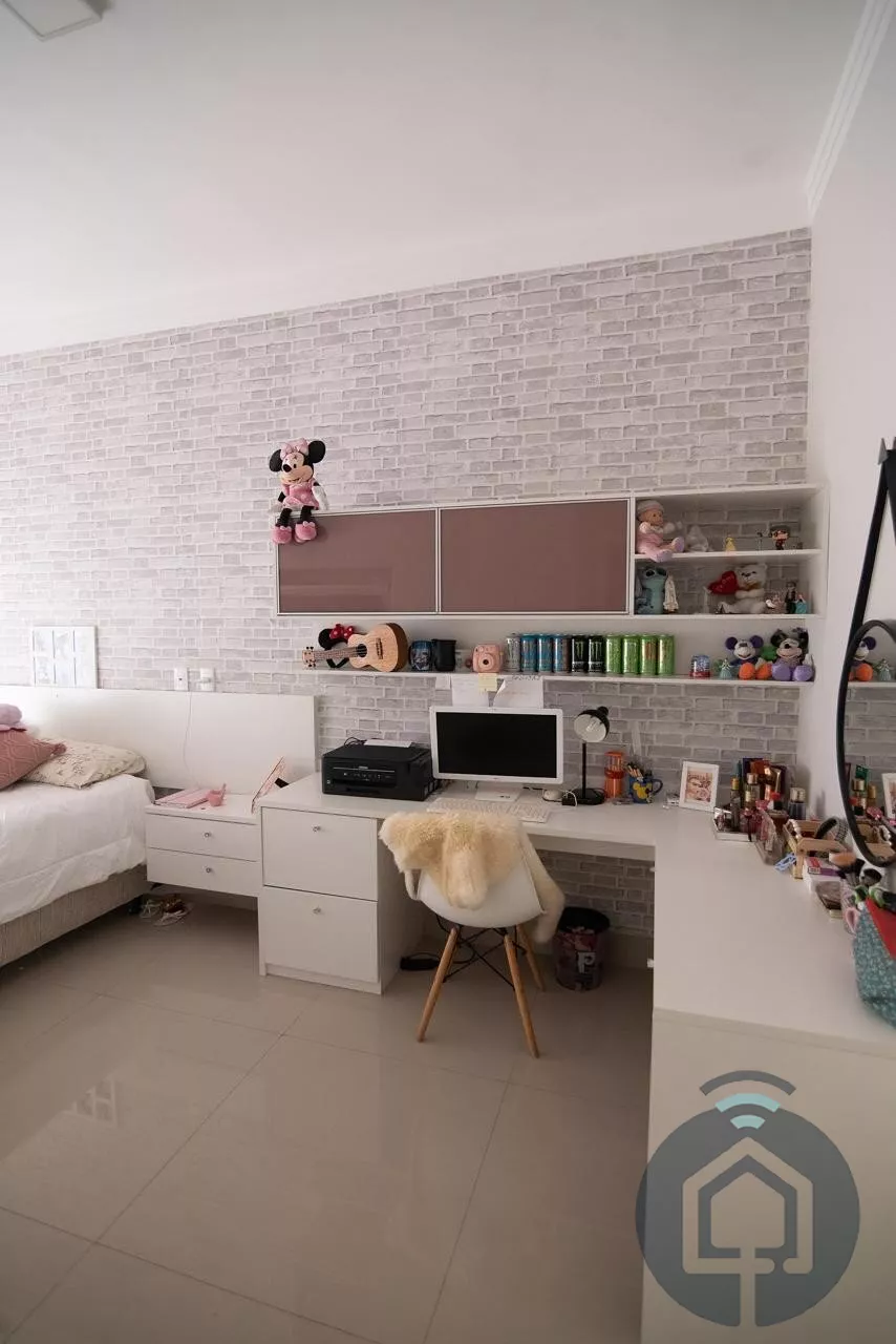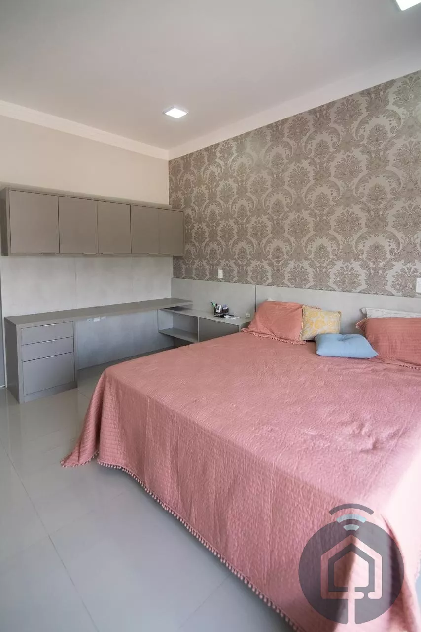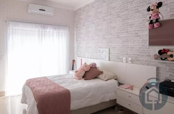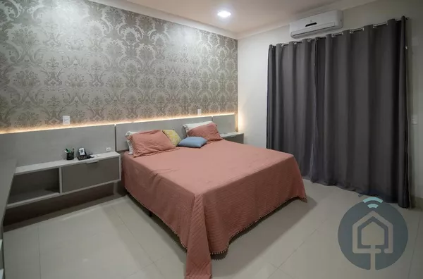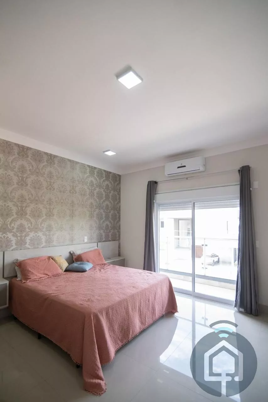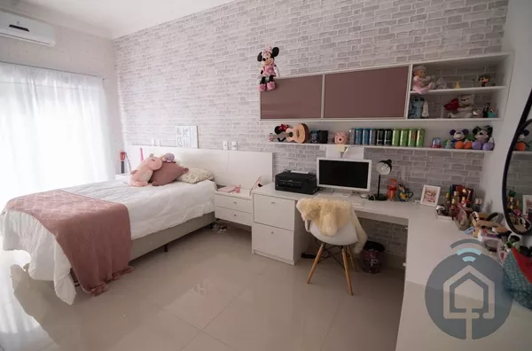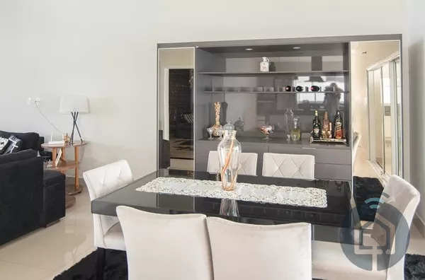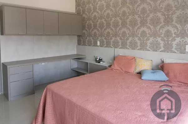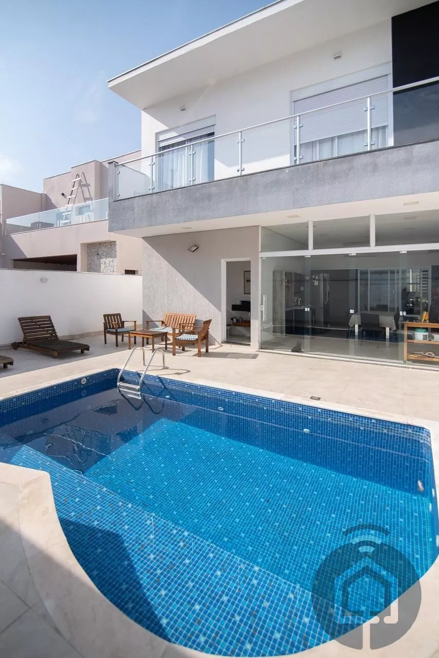 Casa moderna com 323,62 m² de área construída, possui três suítes, sendo a master com closet e hidromassagem, todas com varanda. Conta ainda com escritório, lavabo e uma ampla sala com pé direito duplo, integrando estar, jantar e TV.
