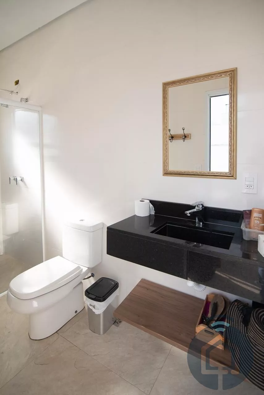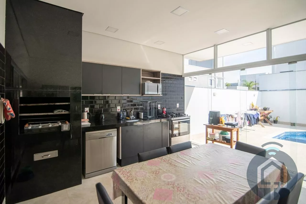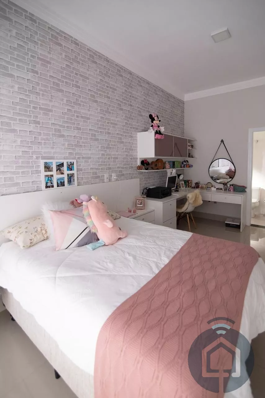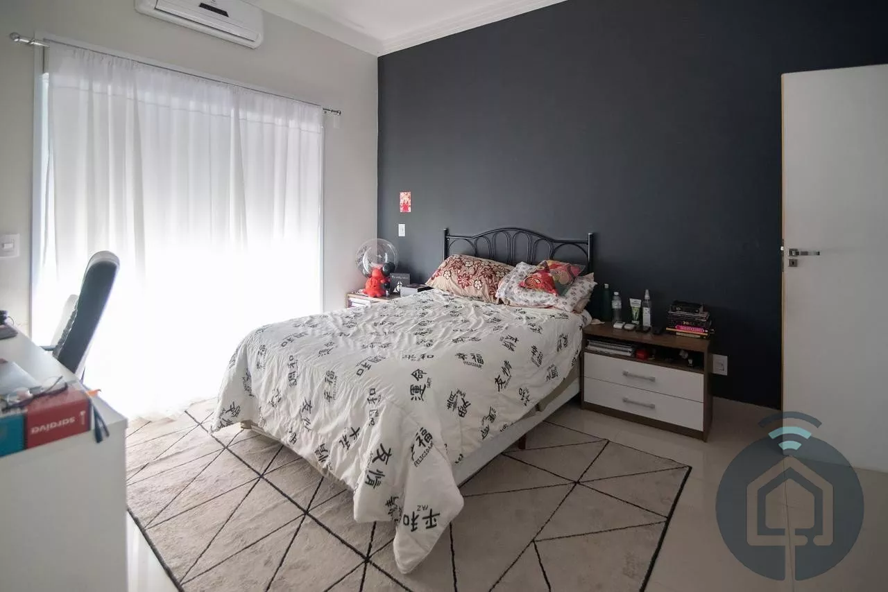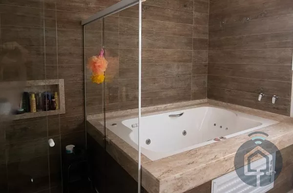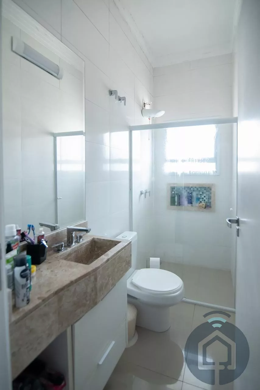 Casa moderna com 323,62 m² de área construída, possui três suítes, sendo a master com closet e hidromassagem, todas com varanda. Conta ainda com escritório, lavabo e uma ampla sala com pé direito duplo, integrando estar, jantar e TV.