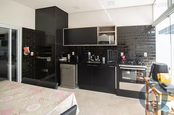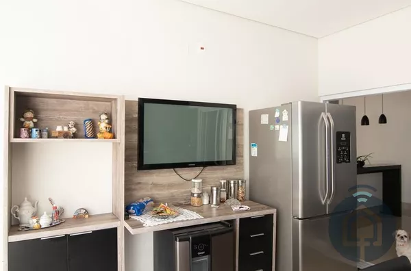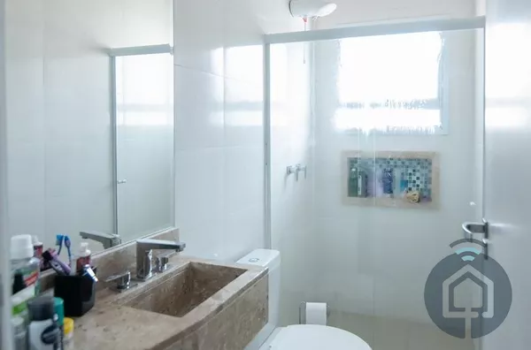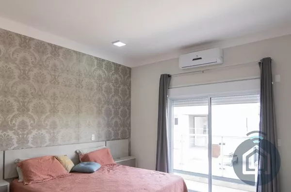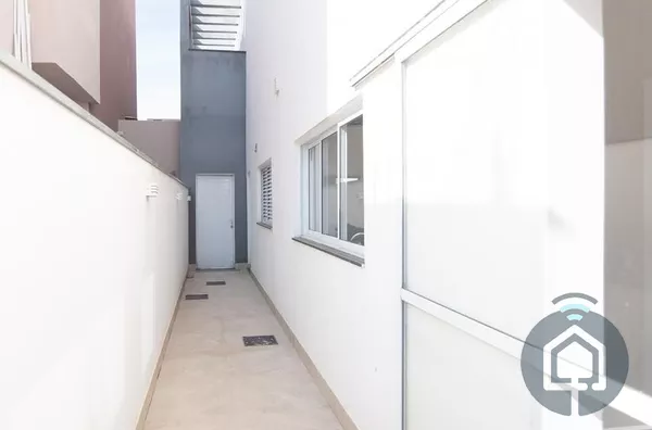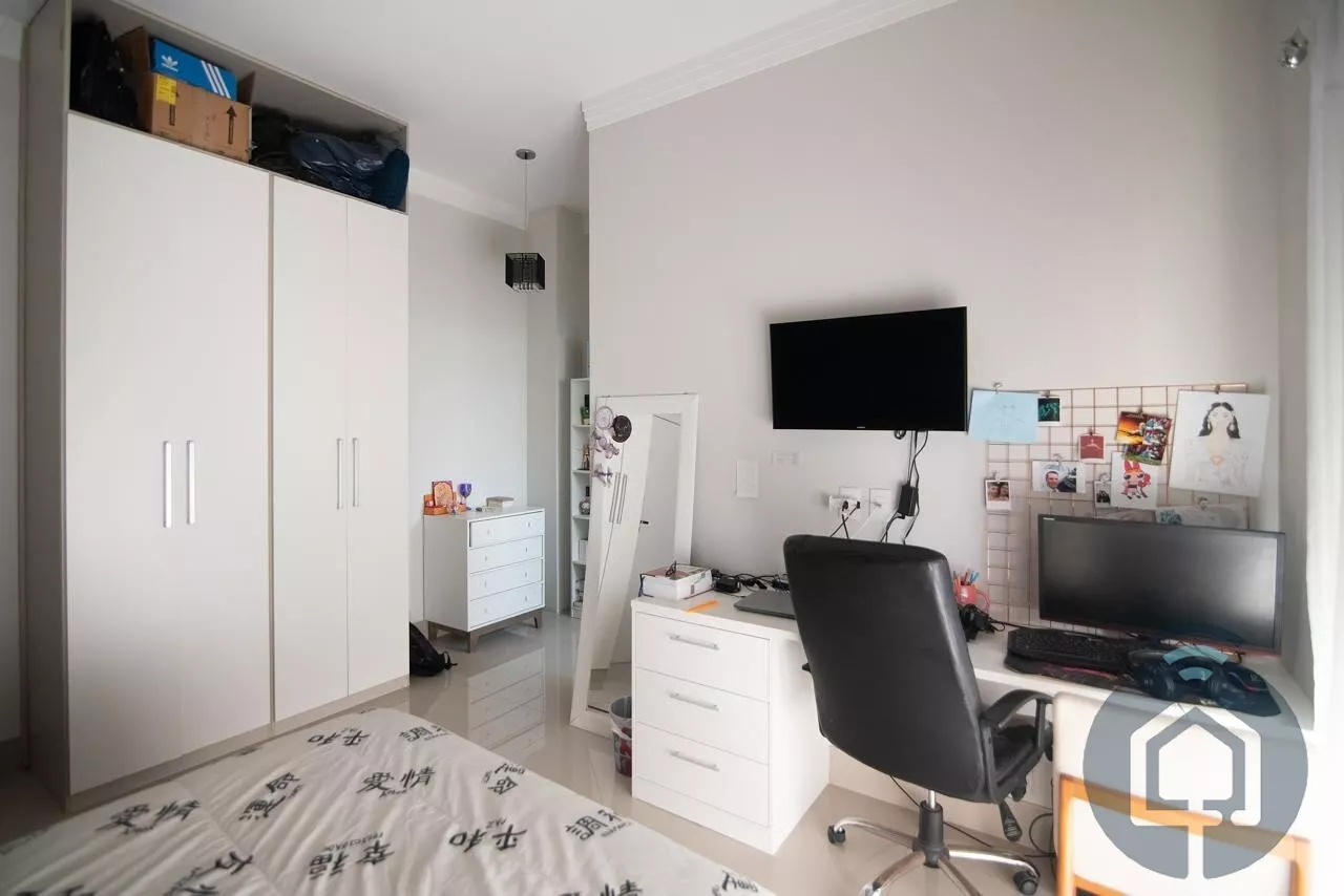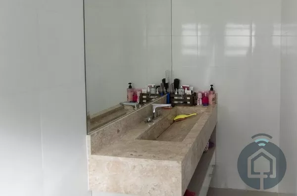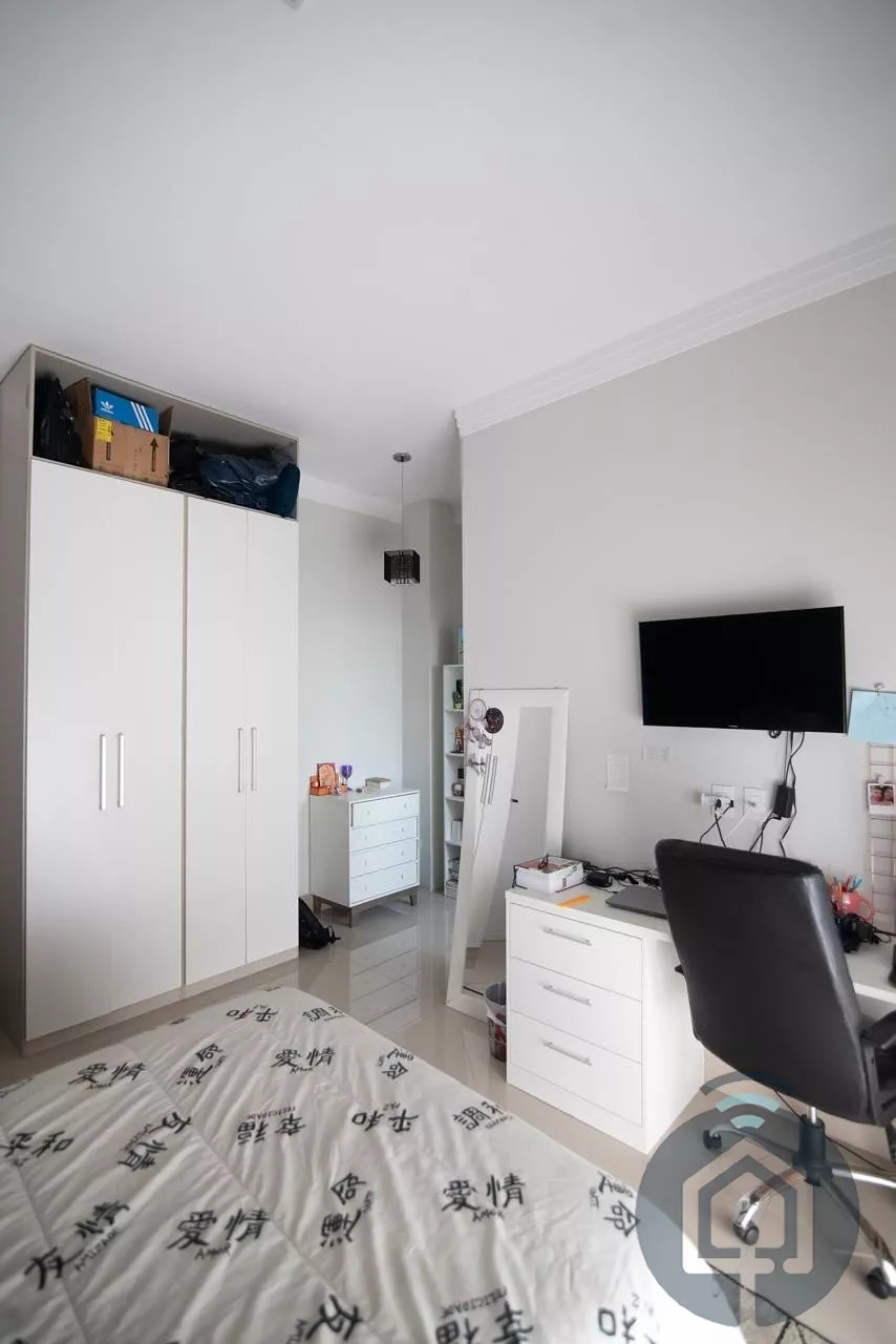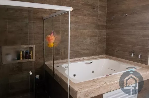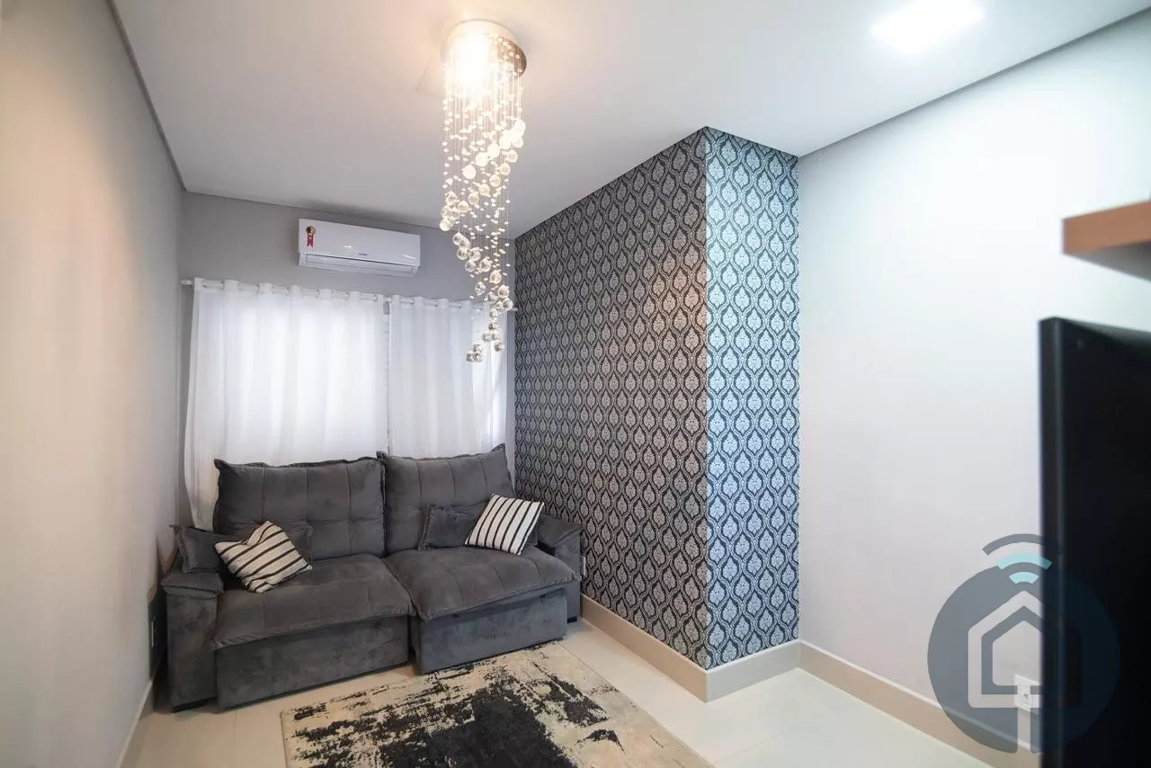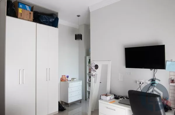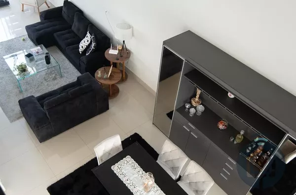 Casa moderna com 323,62 m² de área construída, possui três suítes, sendo a master com closet e hidromassagem, todas com varanda. Conta ainda com escritório, lavabo e uma ampla sala com pé direito duplo, integrando estar, jantar e TV.