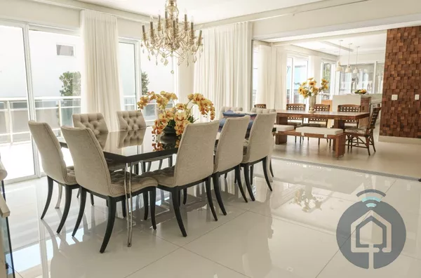 A área externa é um verdadeiro destaque à parte, com espaço gourmet completo, piscina aquecida com hidromassagem coberta, sauna, academia, solários para banhos de sol, adega e até uma barbearia privativa — um diferencial único que reforça o caráter exclusivo do imóvel. Com 11 banheiros no total, suíte para secretária, sala de apoio externa e 8 vagas de garagem (sendo 3 cobertas), cada detalhe foi cuidadosamente pensado para unir conforto e requinte em todos os ambientes.