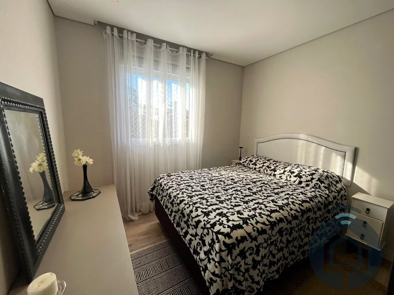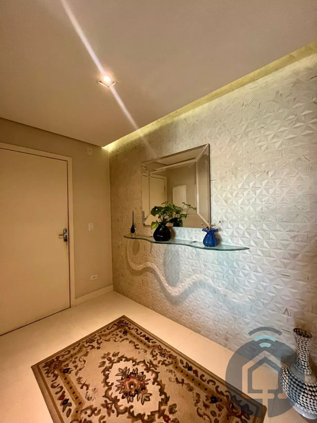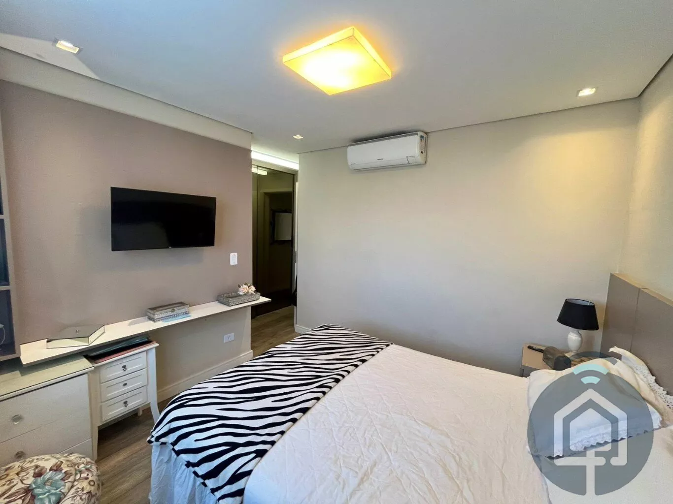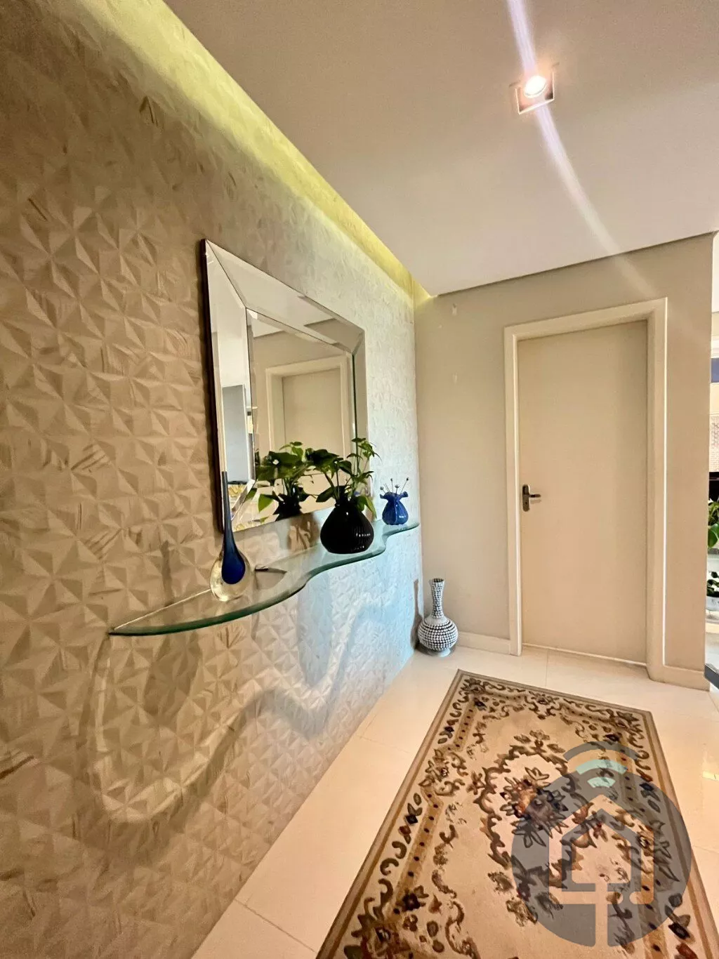 A cozinha planejada é moderna e integrada à lavanderia. Conta ainda com lavabo, ar-condicionado, aquecedor a gás, acabamento de alto padrão e 2 vagas cobertas.