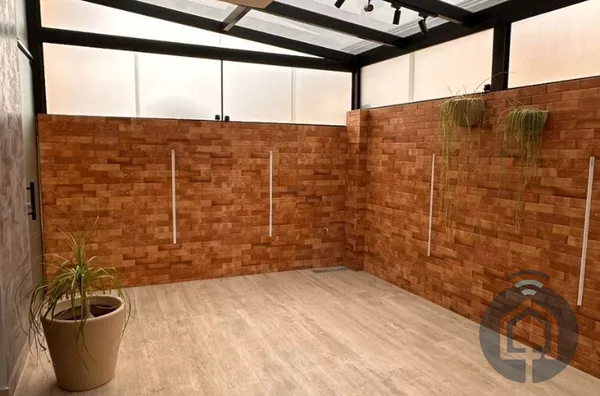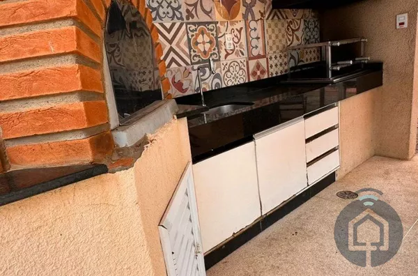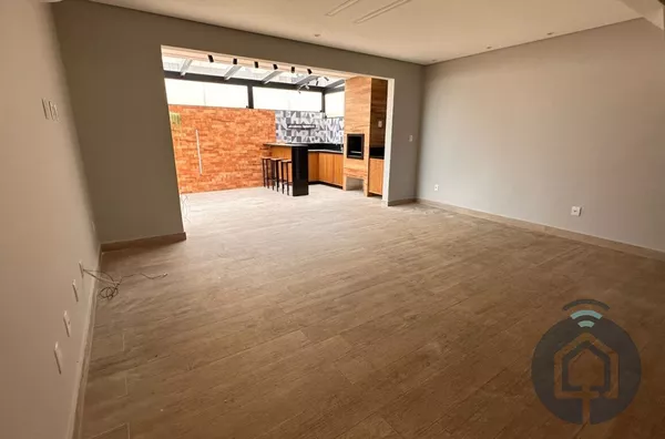 A sala integrada à cozinha cria um ambiente moderno e acolhedor, ideal para reunir a família e receber amigos. A área gourmet completa o charme do imóvel, perfeita para momentos de descontração e boas refeições ao ar livre.
