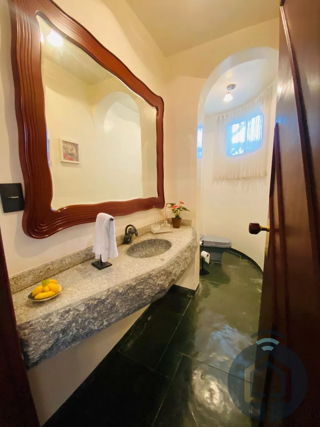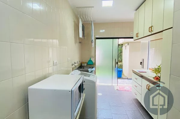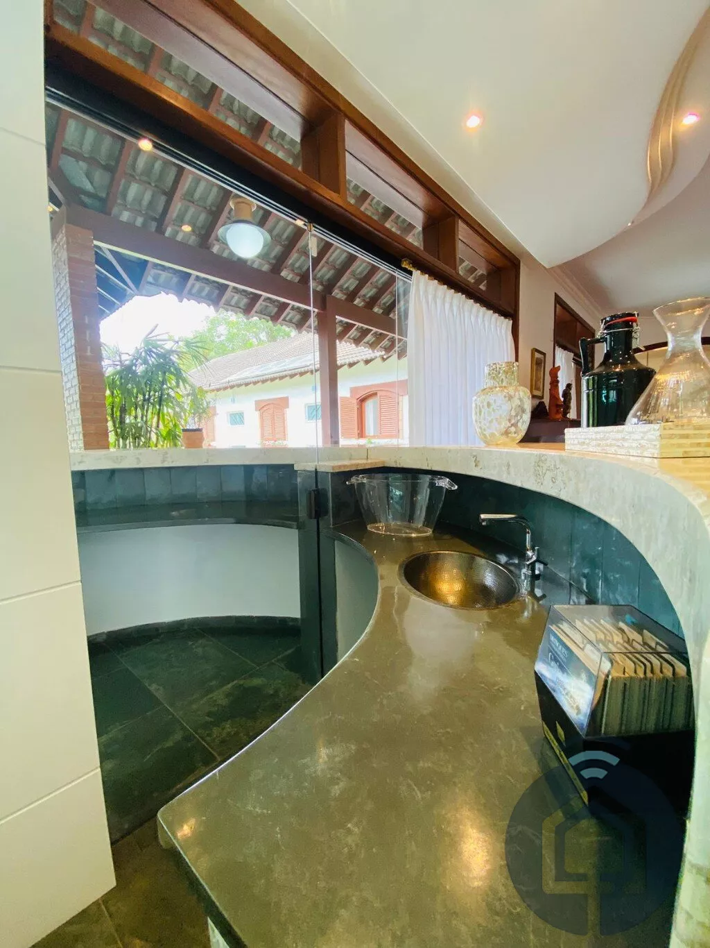 A área social é um convite ao convívio e à sofisticação, contando com sala de estar com bar, sala de TV, sala de jantar e sala de almoço, além de um escritório ideal para home office e lavabo. A cozinha planejada, repleta de armários e com despensa, alia praticidade e charme ao dia a dia. A casa ainda dispõe de lavanderia e dormitório de serviço com banheiro.