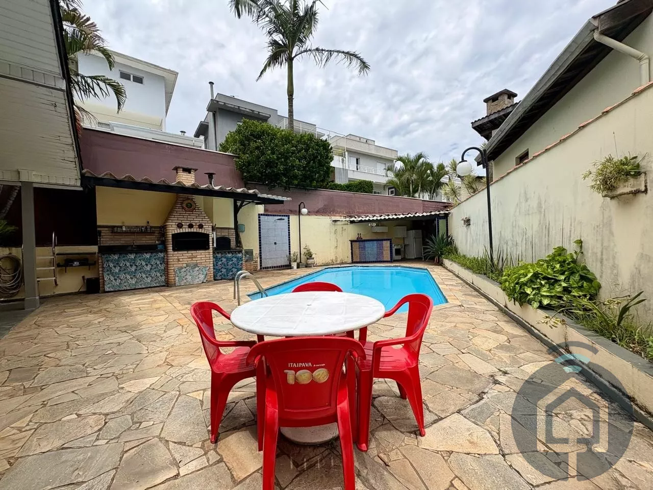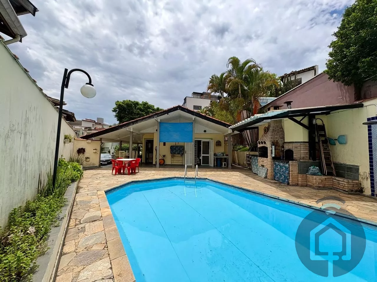 Na parte externa, o lazer é completo: piscina, churrasqueira e apoio de cozinha criam o cenário ideal para receber. O quintal com árvores frutíferas já produzindo acrescenta charme e qualidade de vida. Portão automático e garagem para três carros completam a praticidade.