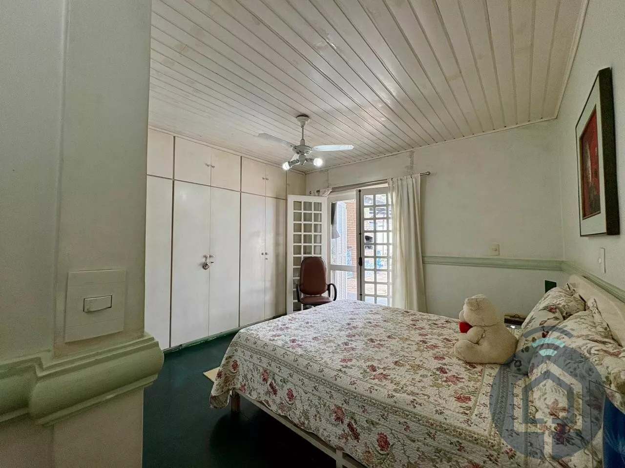 Na ala íntima, o imóvel oferece quatro quartos com armários, sendo duas suítes, além de banheiros funcionais e bem ventilados. Conta ainda com suíte de serviço independente, trazendo versatilidade de uso.