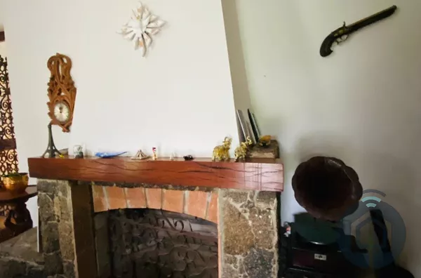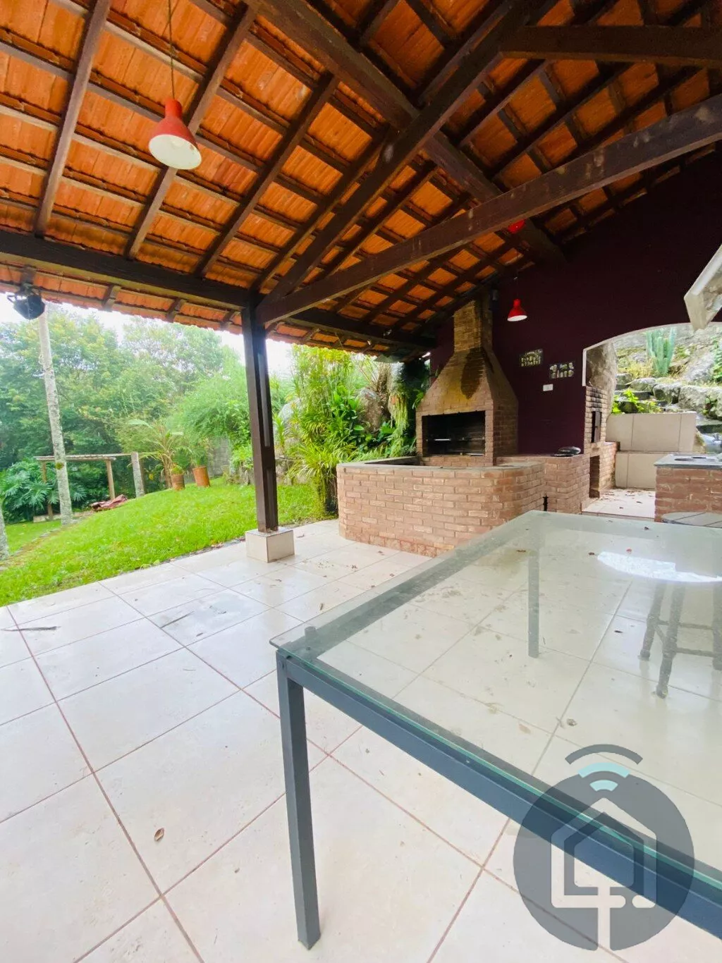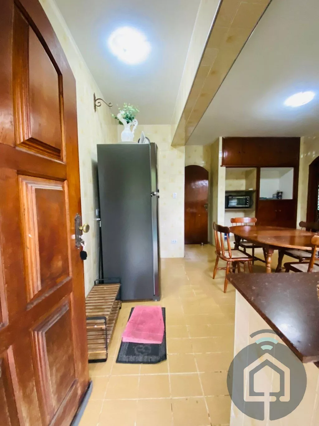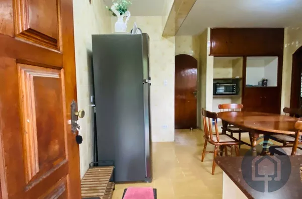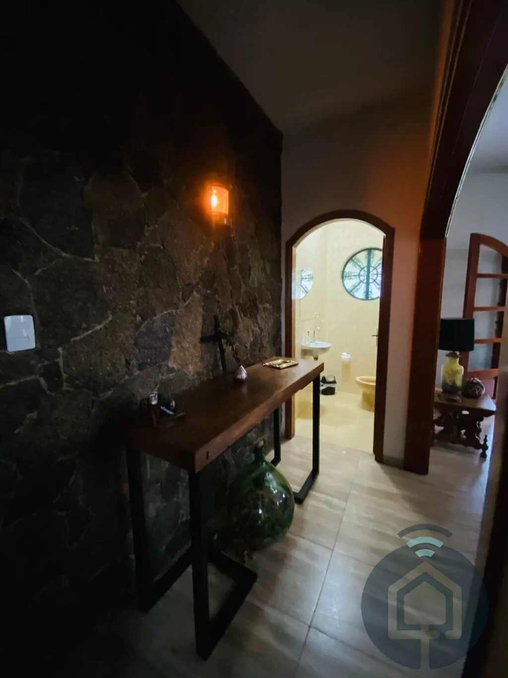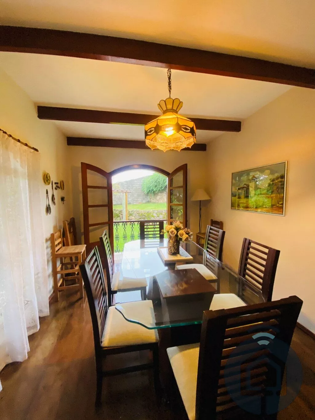 A casa principal, térrea, foi pensada para proporcionar conforto, luminosidade natural e integração com o verde ao redor. Ela conta com três dormitórios com armários embutidos, sendo uma suíte com closet, além de dois banheiros sociais e um lavabo. A área social é acolhedora e perfeita para receber, com sala de jantar, sala de estar com dois ambientes e lareira, criando um ambiente charmoso para os dias mais frios. A cozinha com armários planejados oferece praticidade no dia a dia.